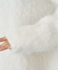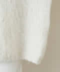 ふくらみ感と毛足が特徴のヤク混の糸とループ糸を引き揃えて起毛し、さらに毛足を出した糸を使用した編地。