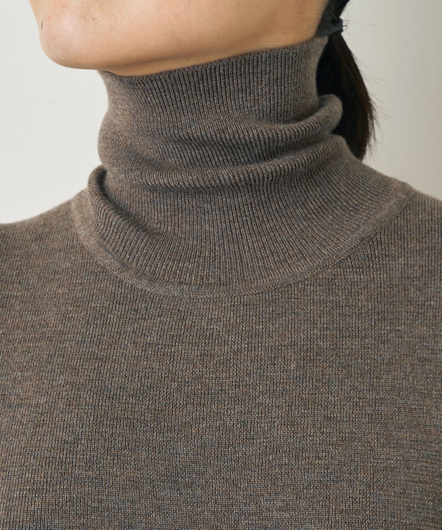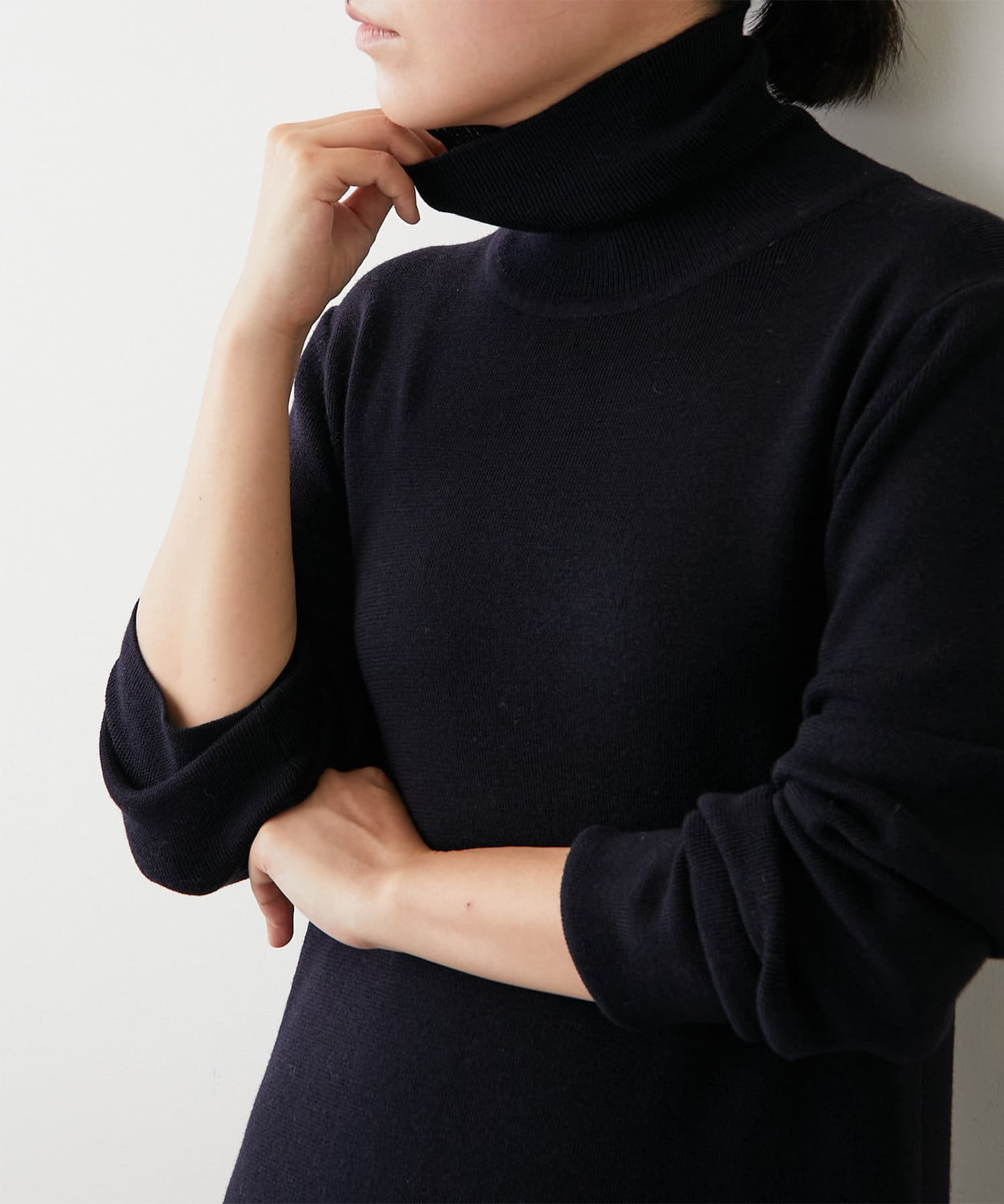 ■タートルネックが上品な印象を与えつつ、長めの袖がこなれ見えするデザイン。