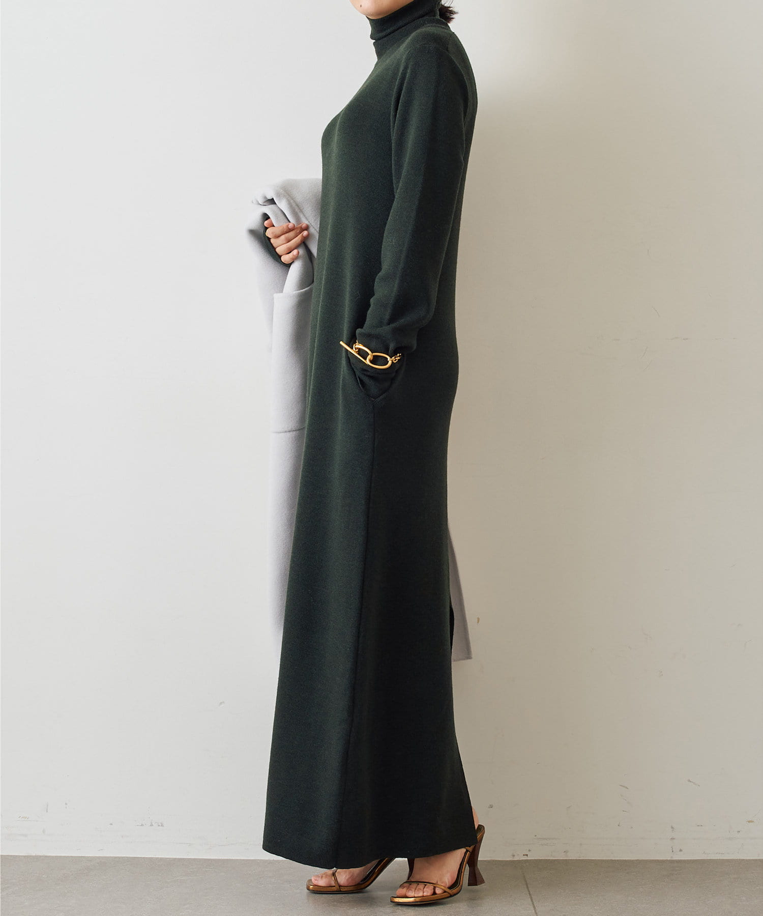 タートルネックニットワンピース