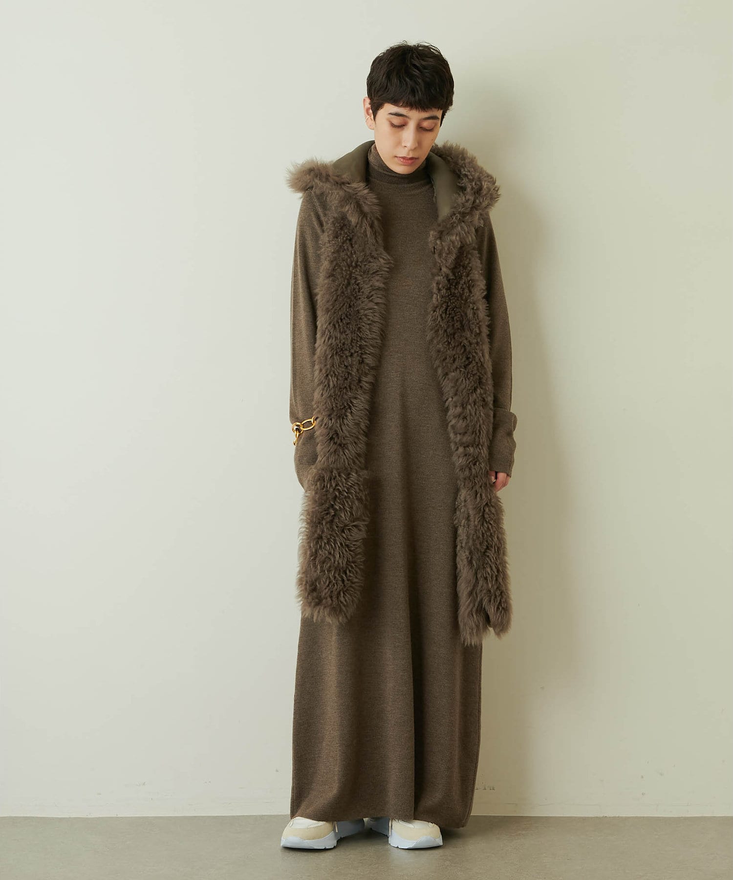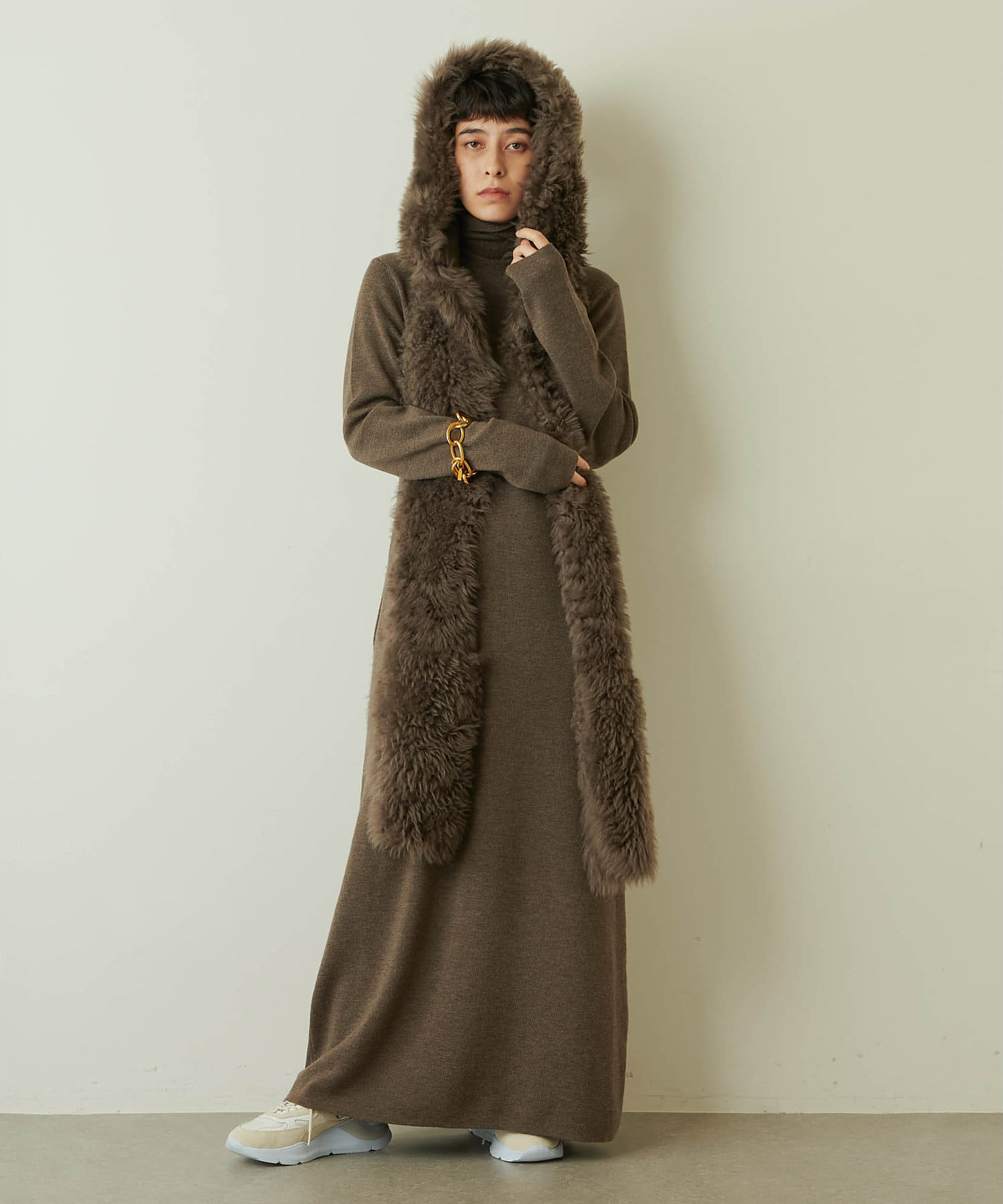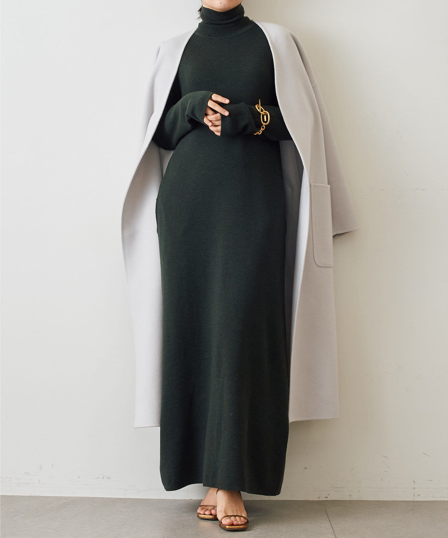 ■ハイゲージに編み上げたストレートシルエットのロングワンピース。