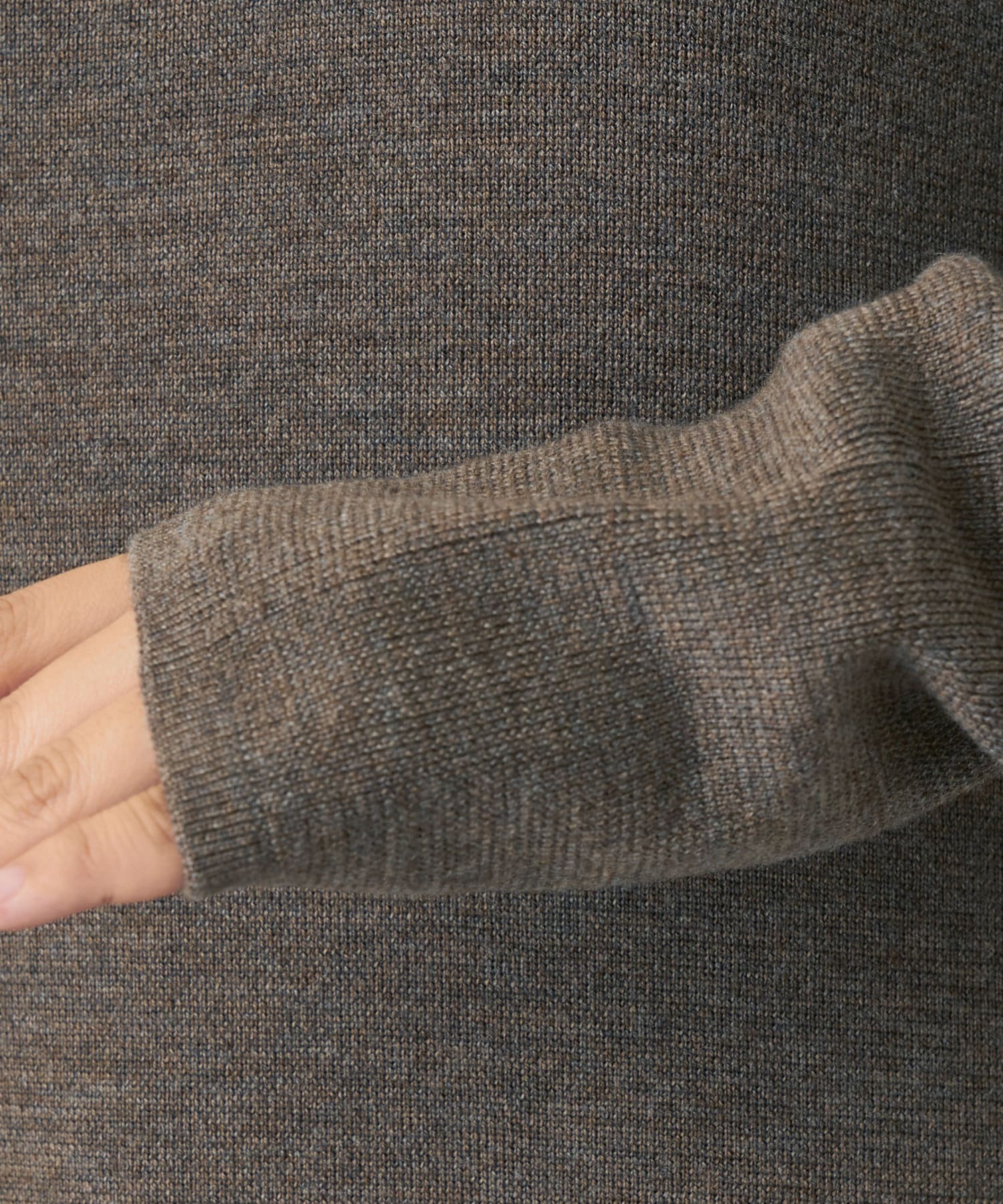 ■身体のラインを拾いすぎない、総針編みによる程よい肉感のある風合い。