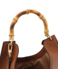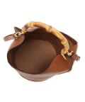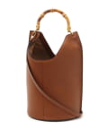 ■クラフト感覚を取り入れたバケツタイプのレザーバッグ。
