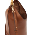 バッグのシルエットを美しく演出するハリ感のあるレザー。