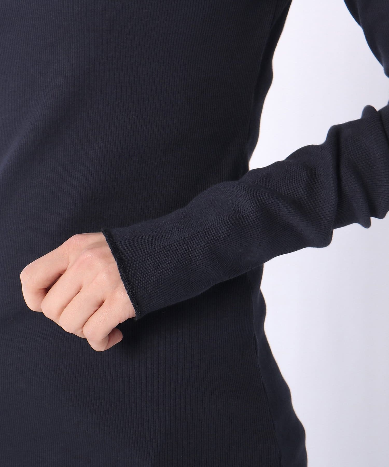 ■着こなしをスマートな印象へ導く、ボディに優しくフィットするテレコ生地。