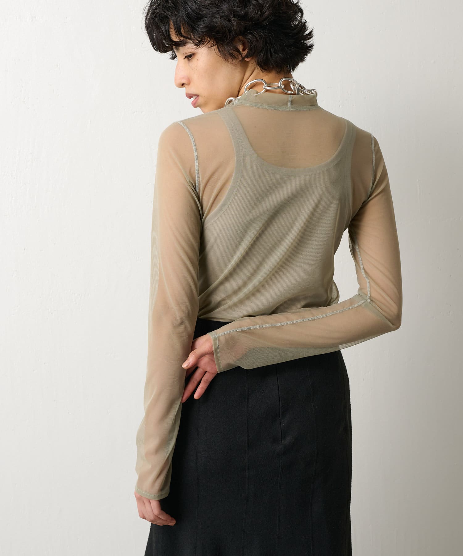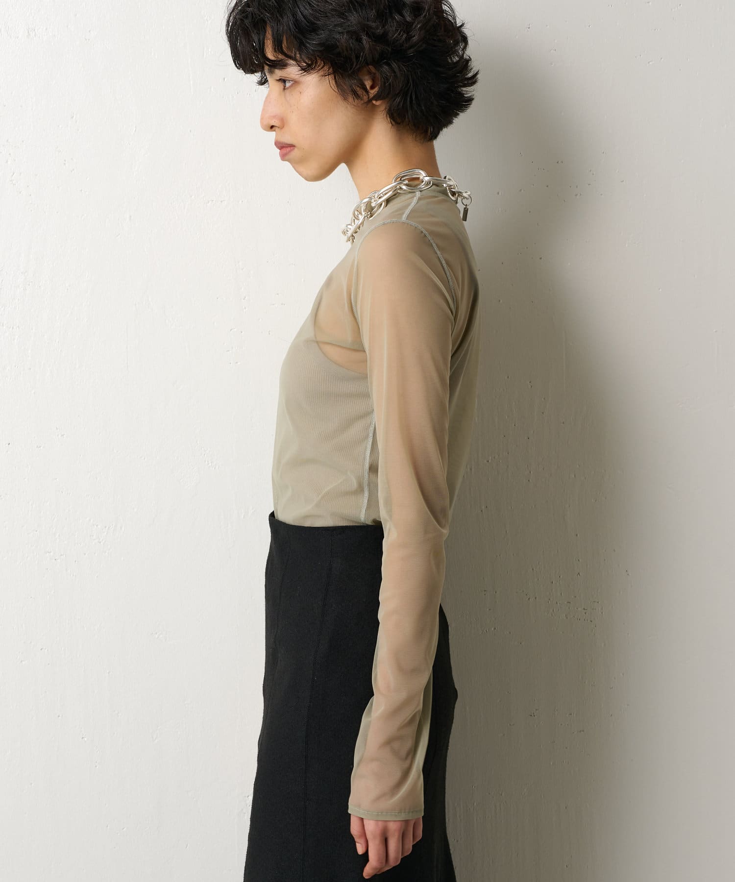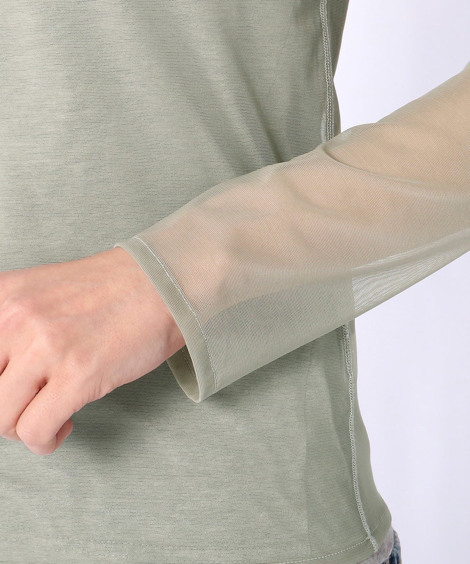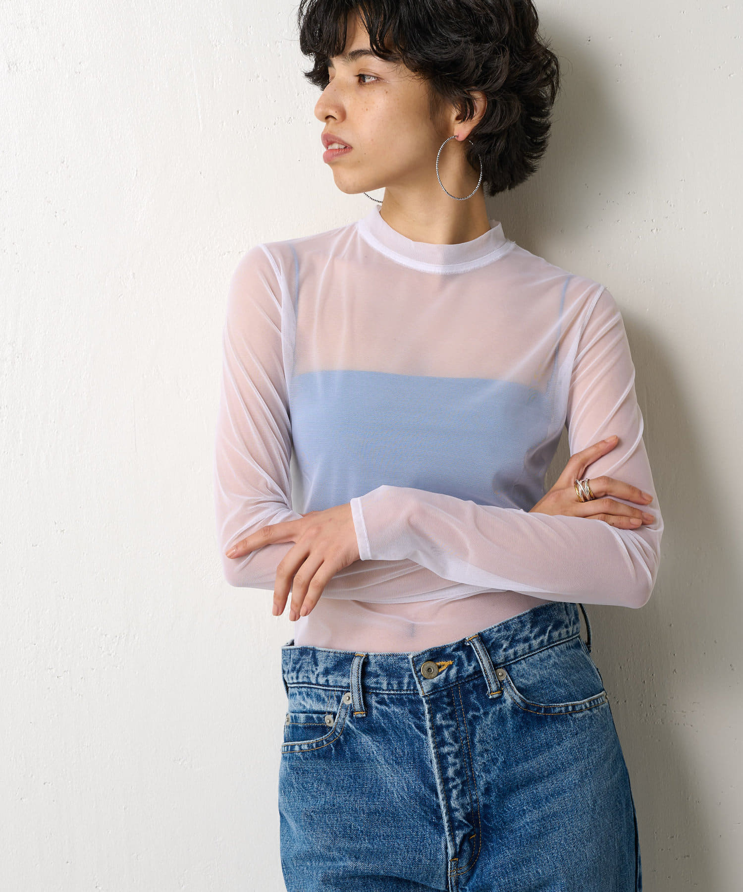 ■抜け感たっぷりのシアーな表情が印象的なトップス。
