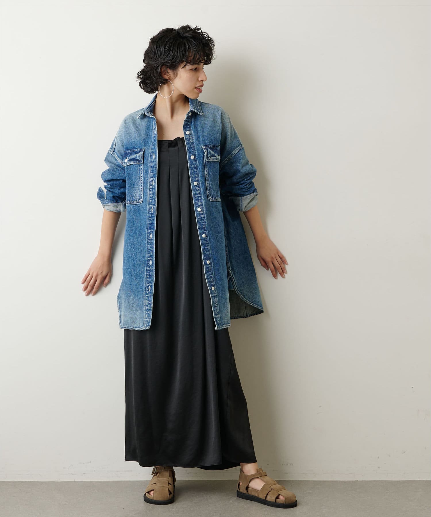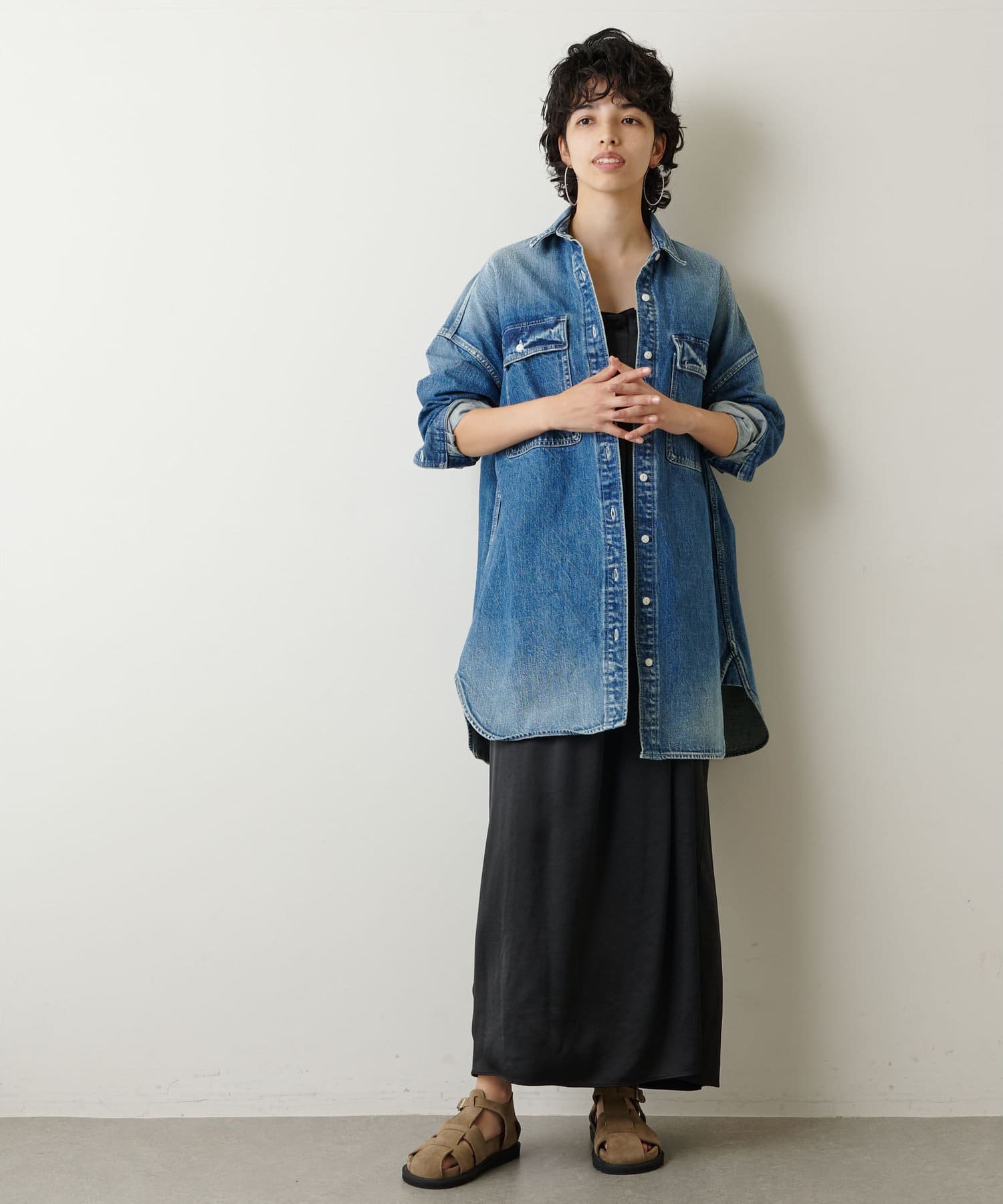 ■ヴィンテージライクなデザインがかっこいいデニムシャツワンピース。