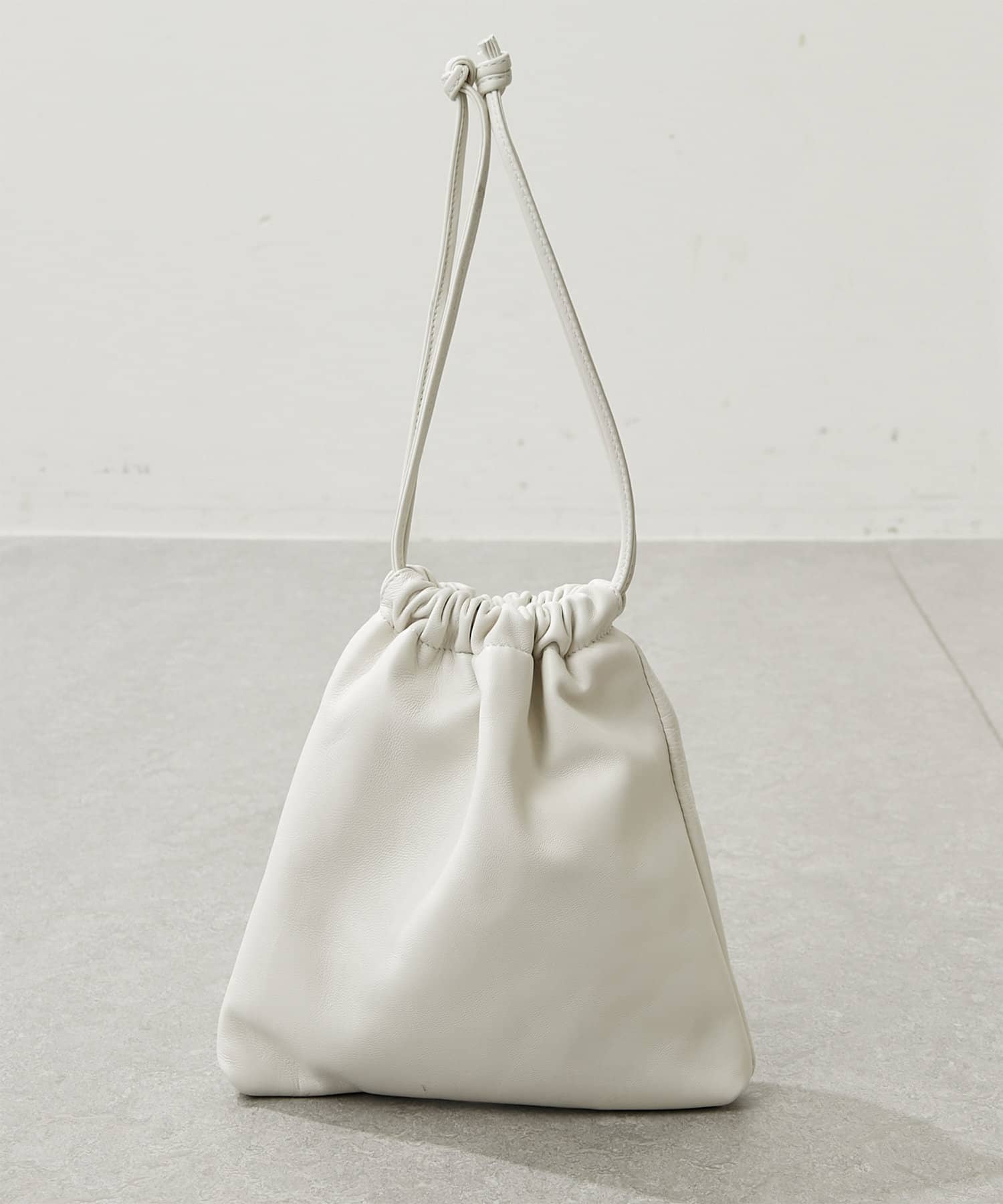 ■トレンドライクな巾着型は、ラフに持つだけで雰囲気のあるスタイリングに。