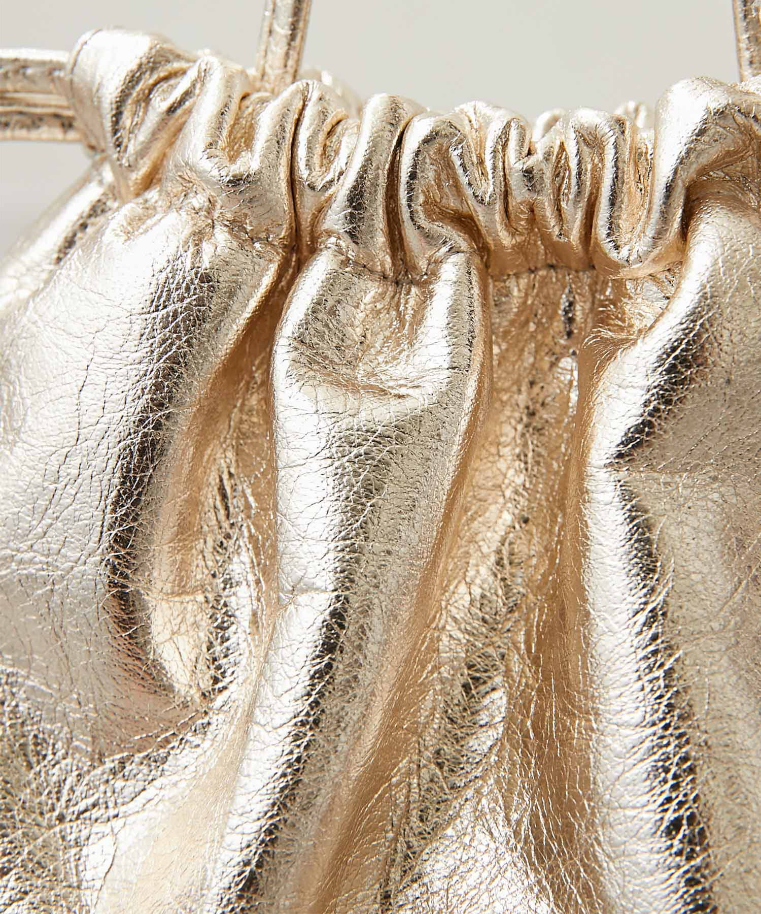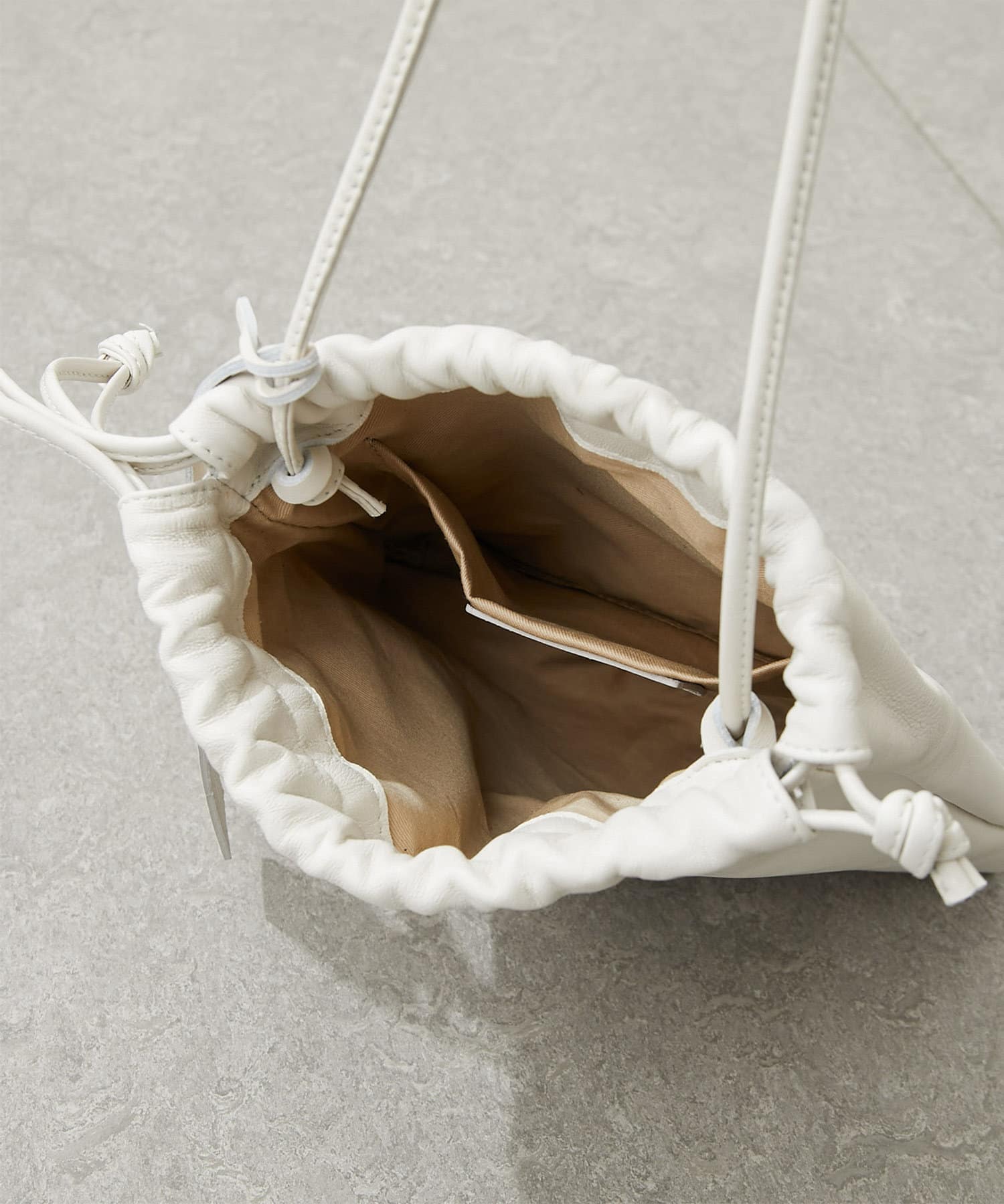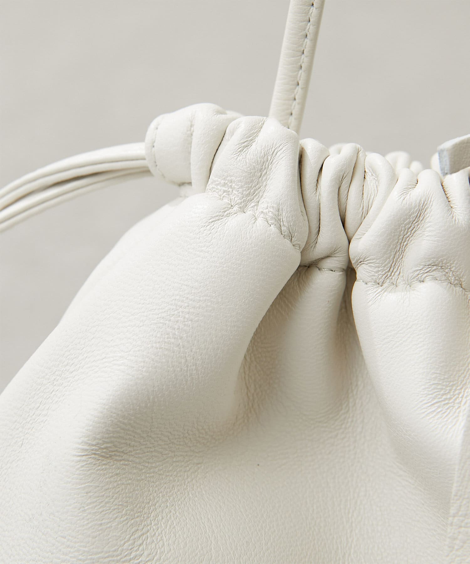 ■上質なレザーを使用したミニマルな巾着バッグ。