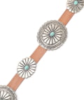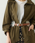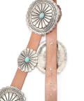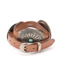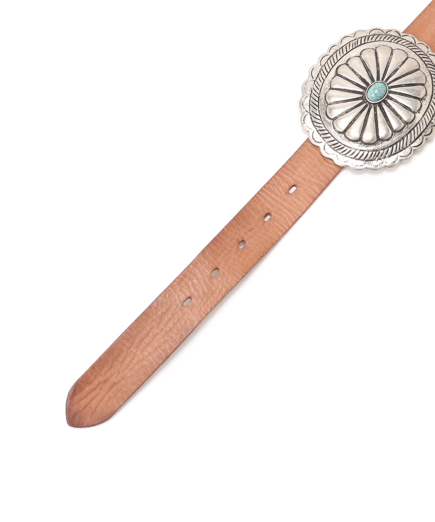 ■柔らかなレザー素材のベルトに、ターコイズがポイントのおおぶりなコンチョをあしらったデザイン。