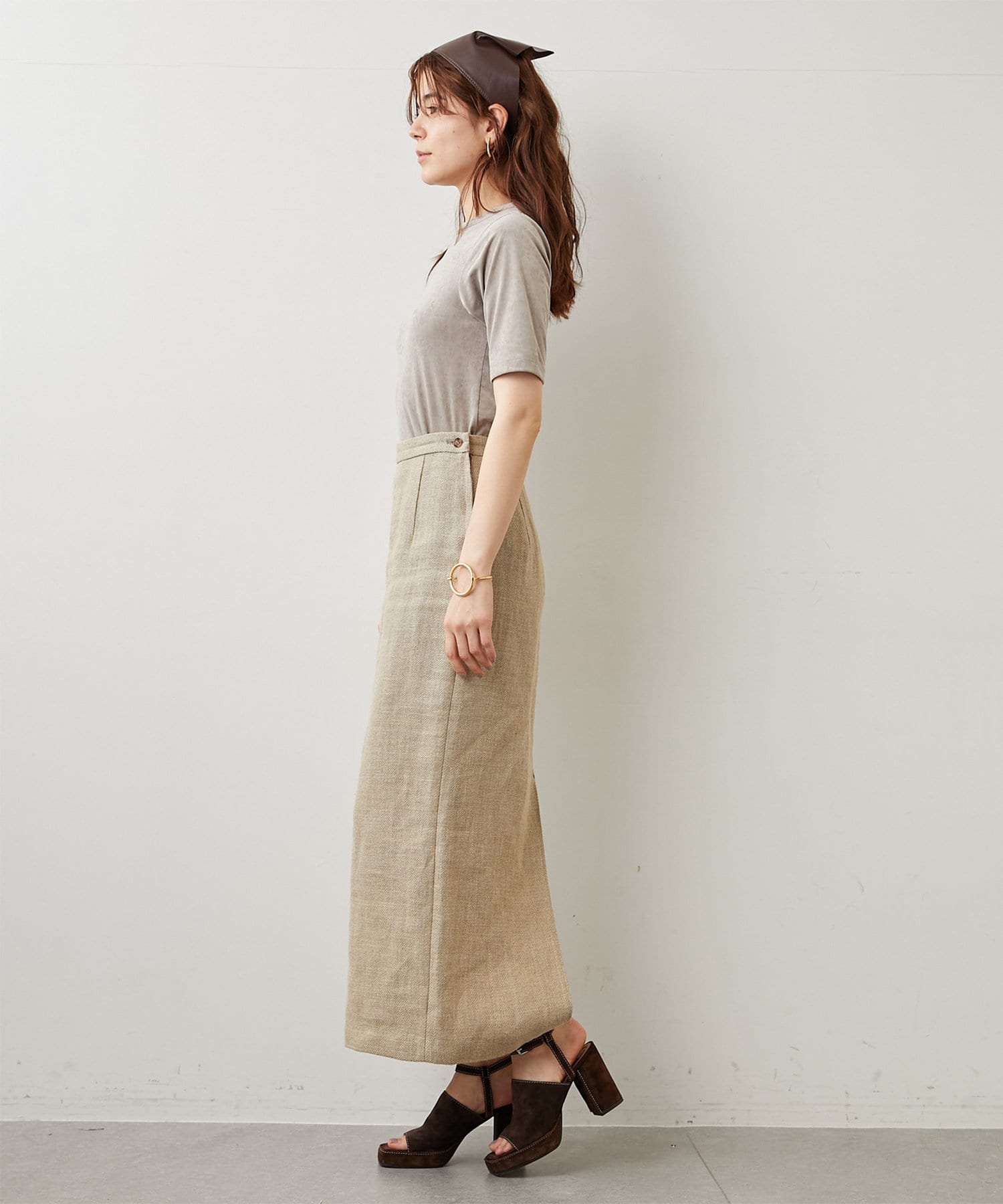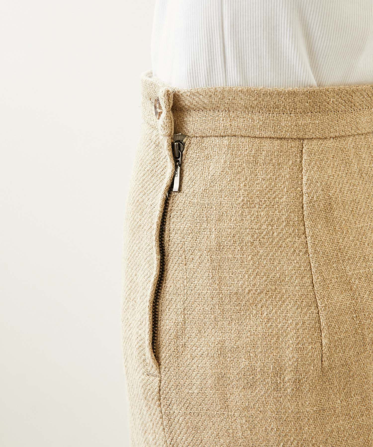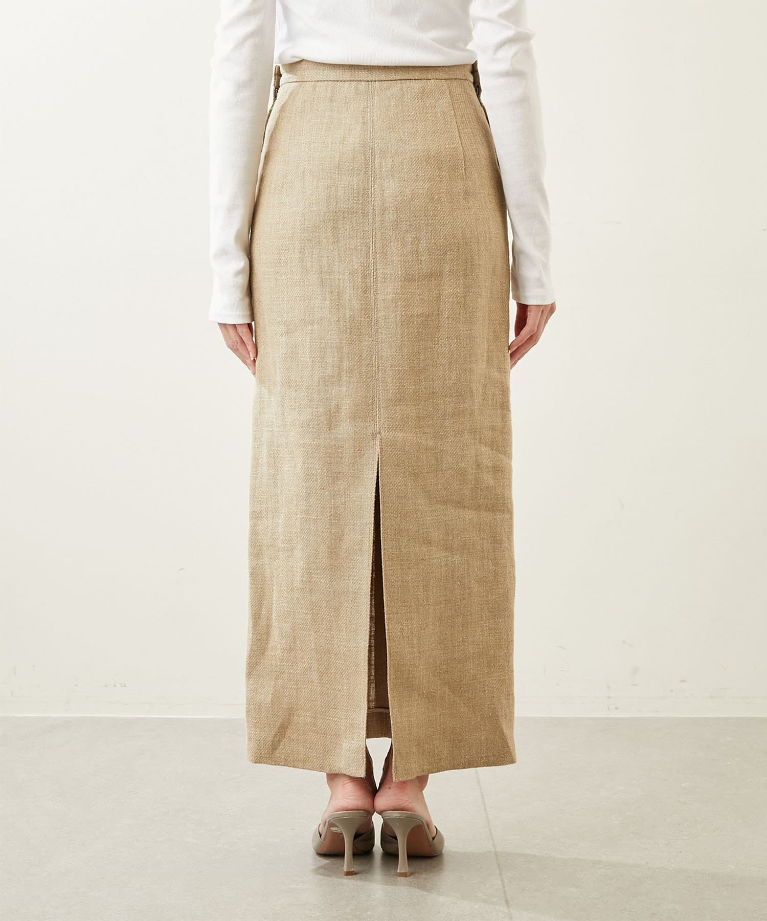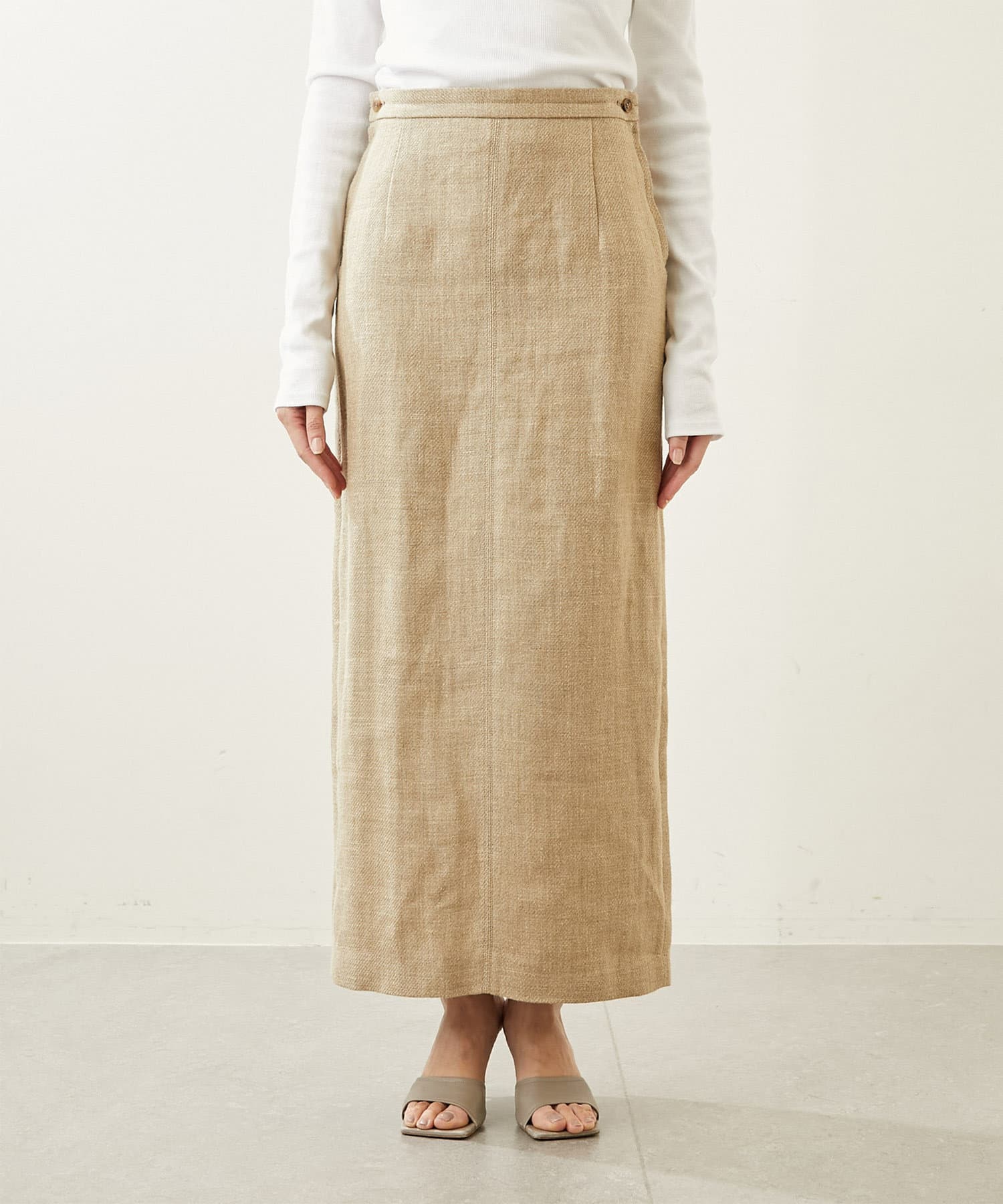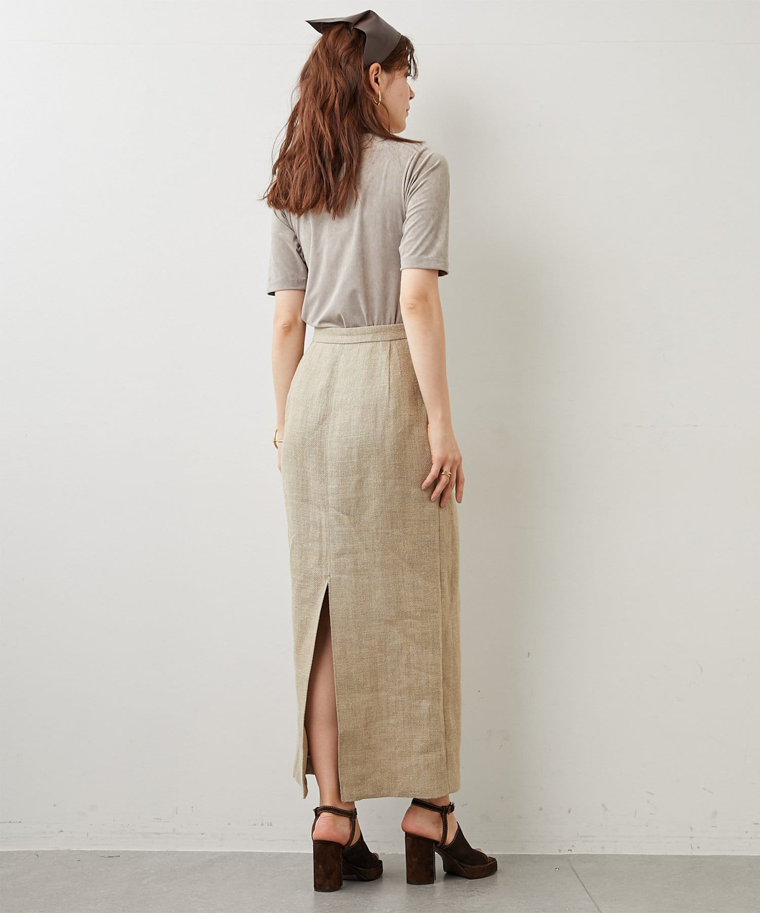 リネンならではの風合いが際立つ、ナチュラルなタイトスカート