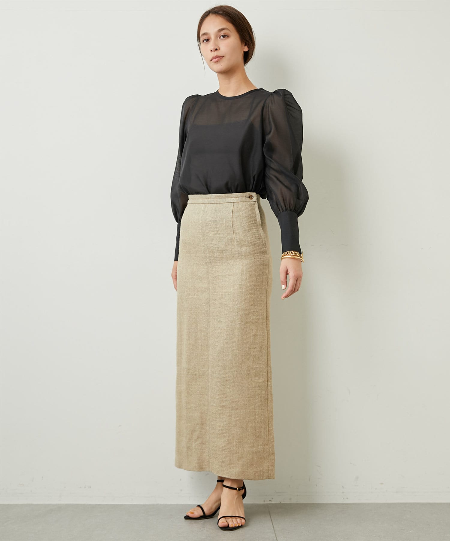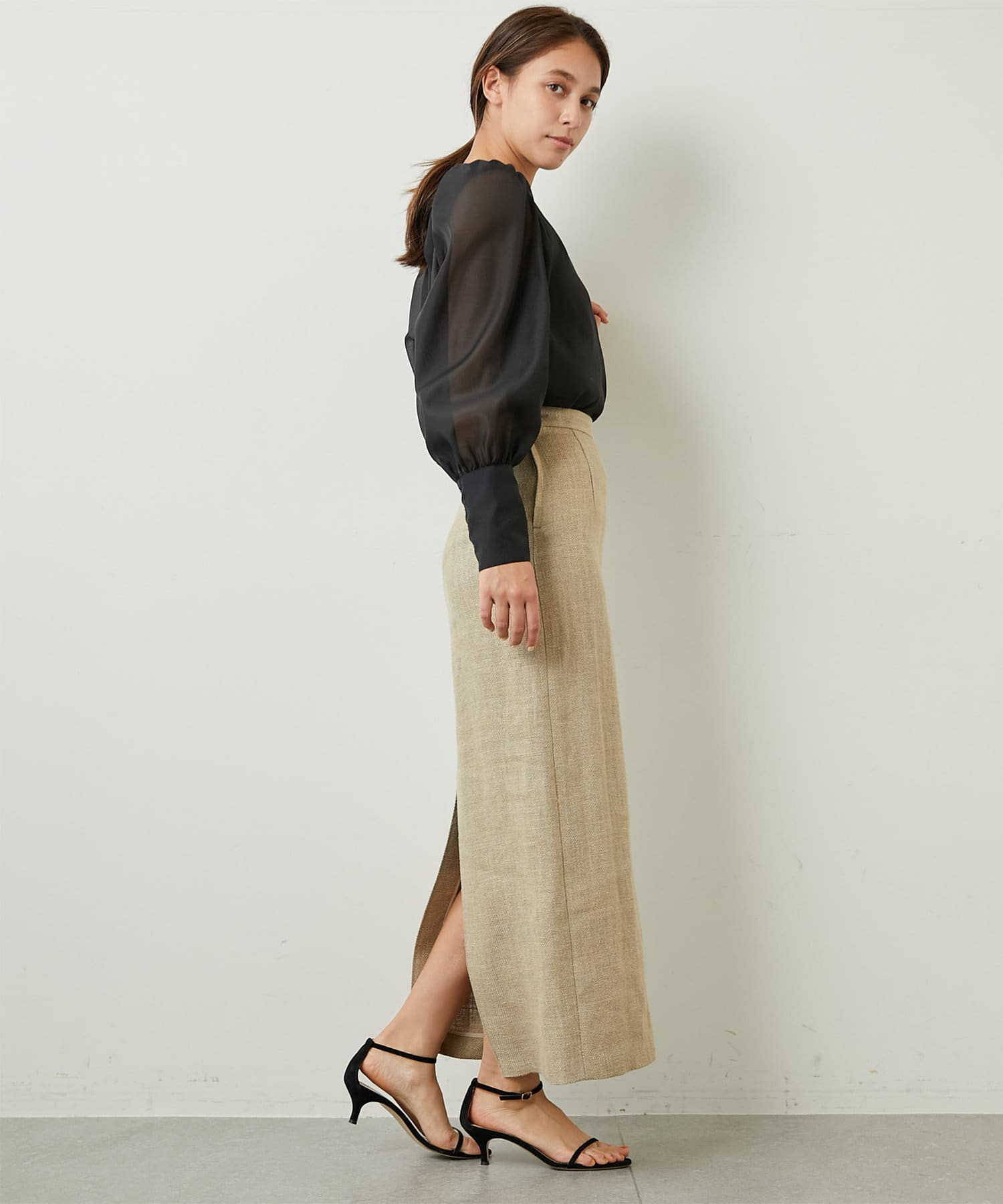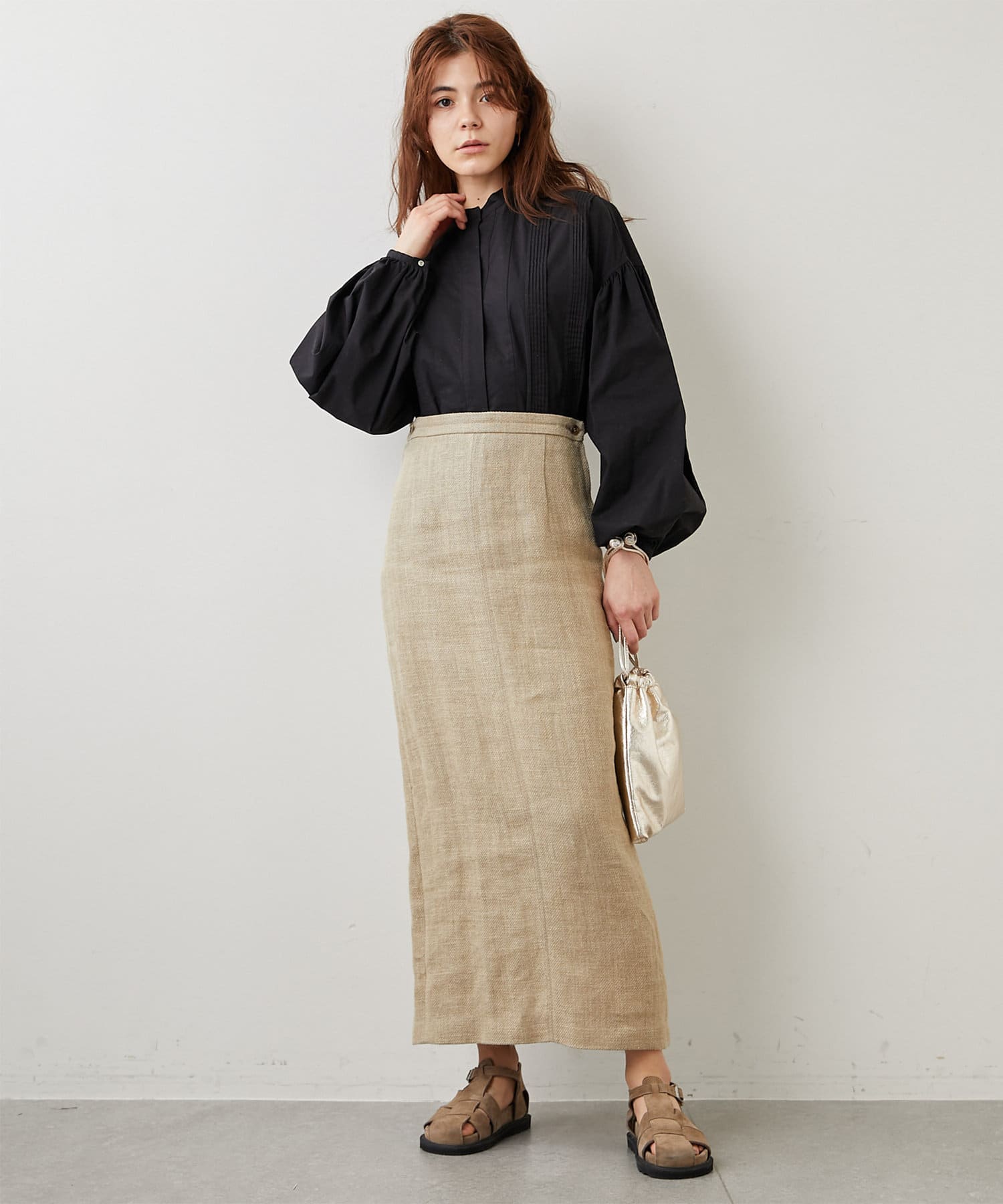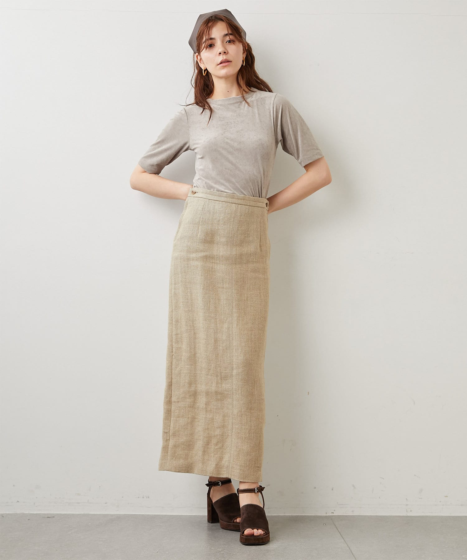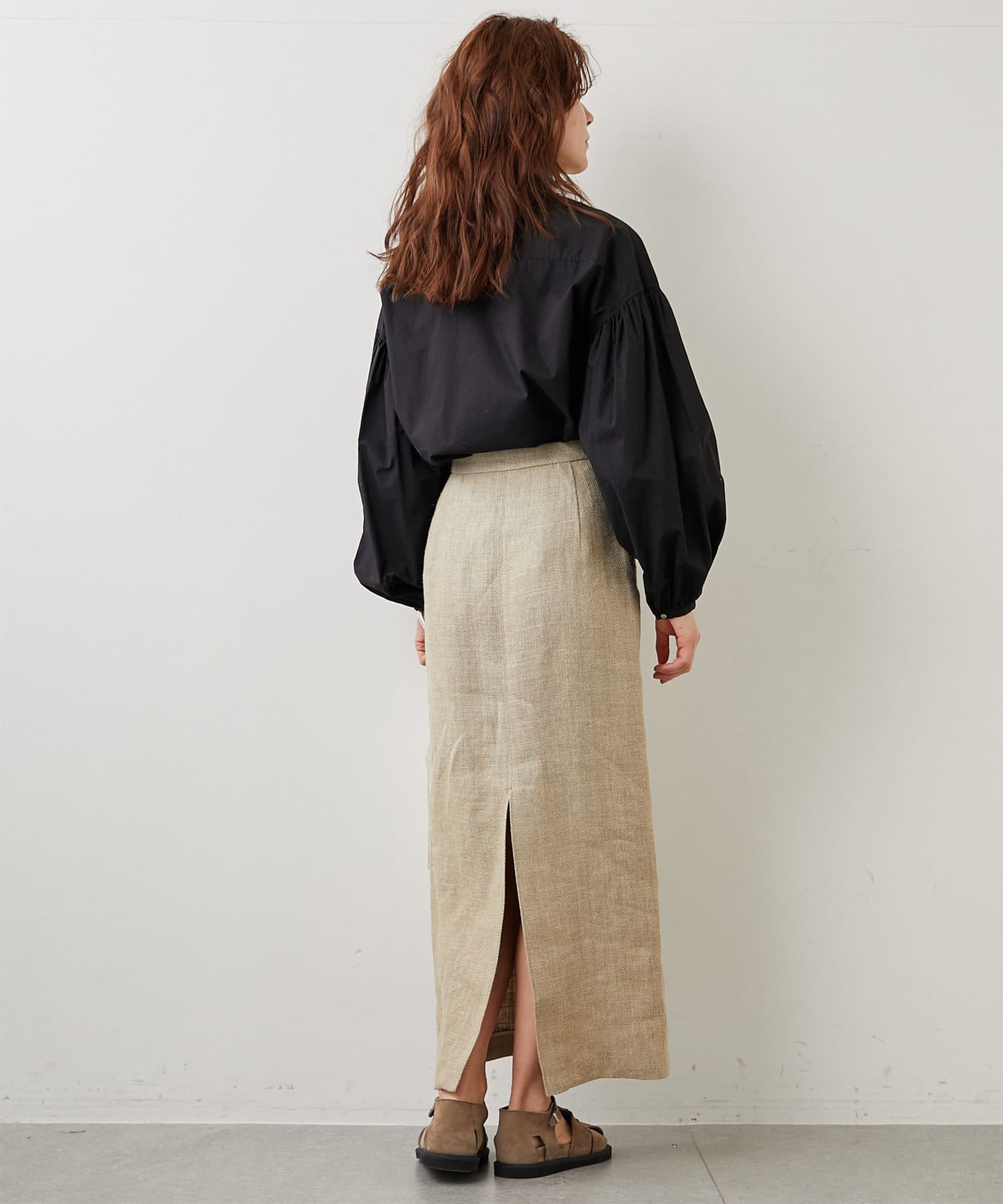 リネンならではの風合いが際立つ、ナチュラルなタイトスカート