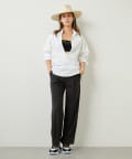 ■太すぎないストレートシルエットに、すっきりとした腰周りが女性らしい印象。