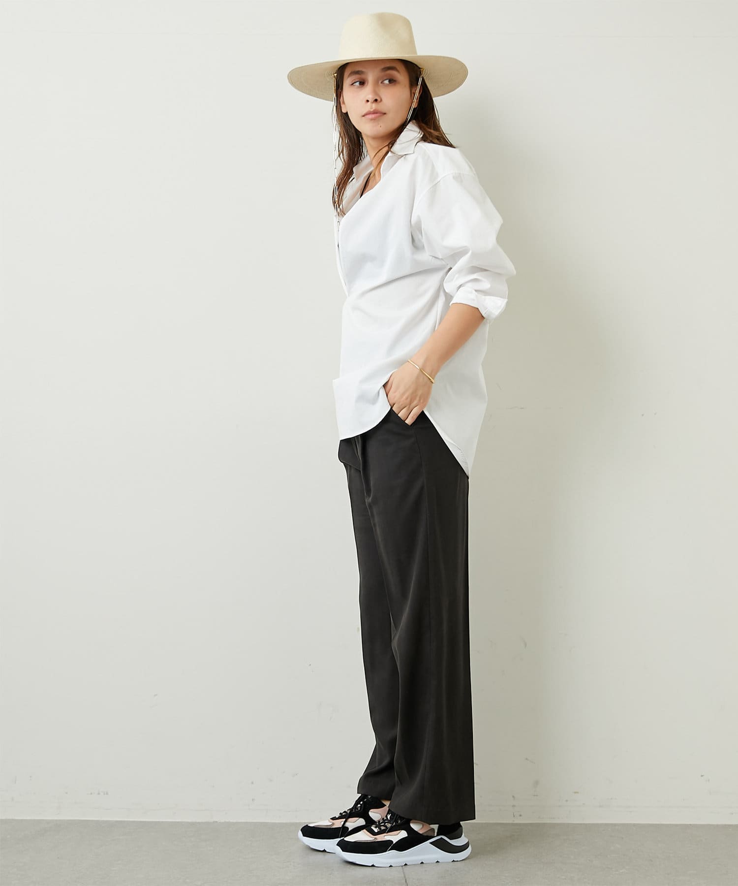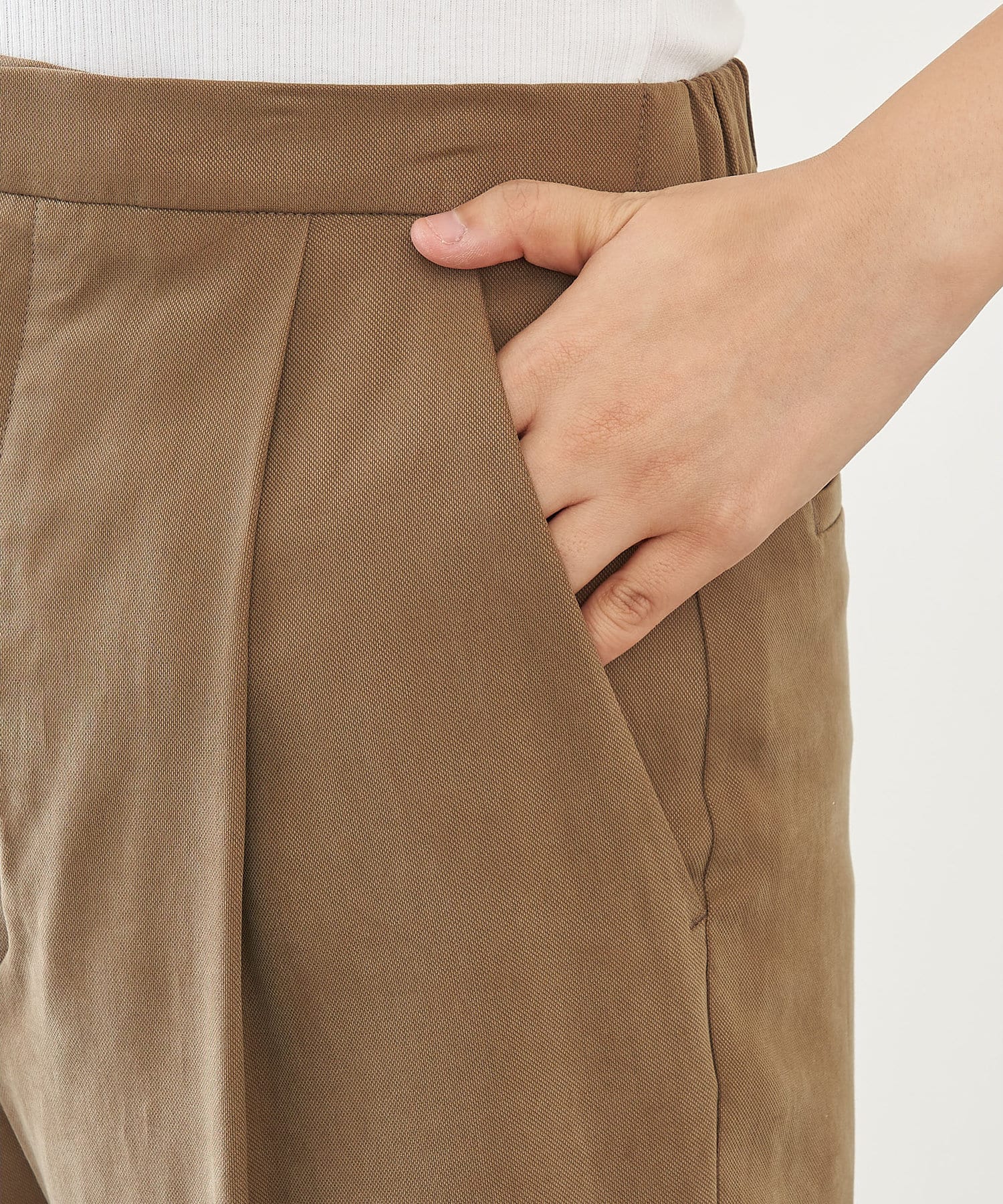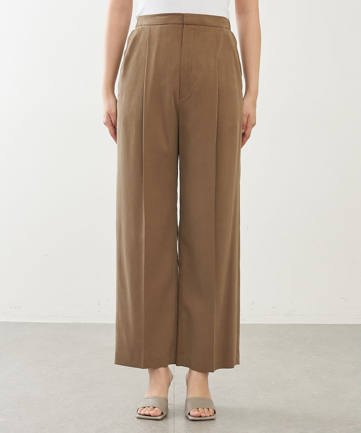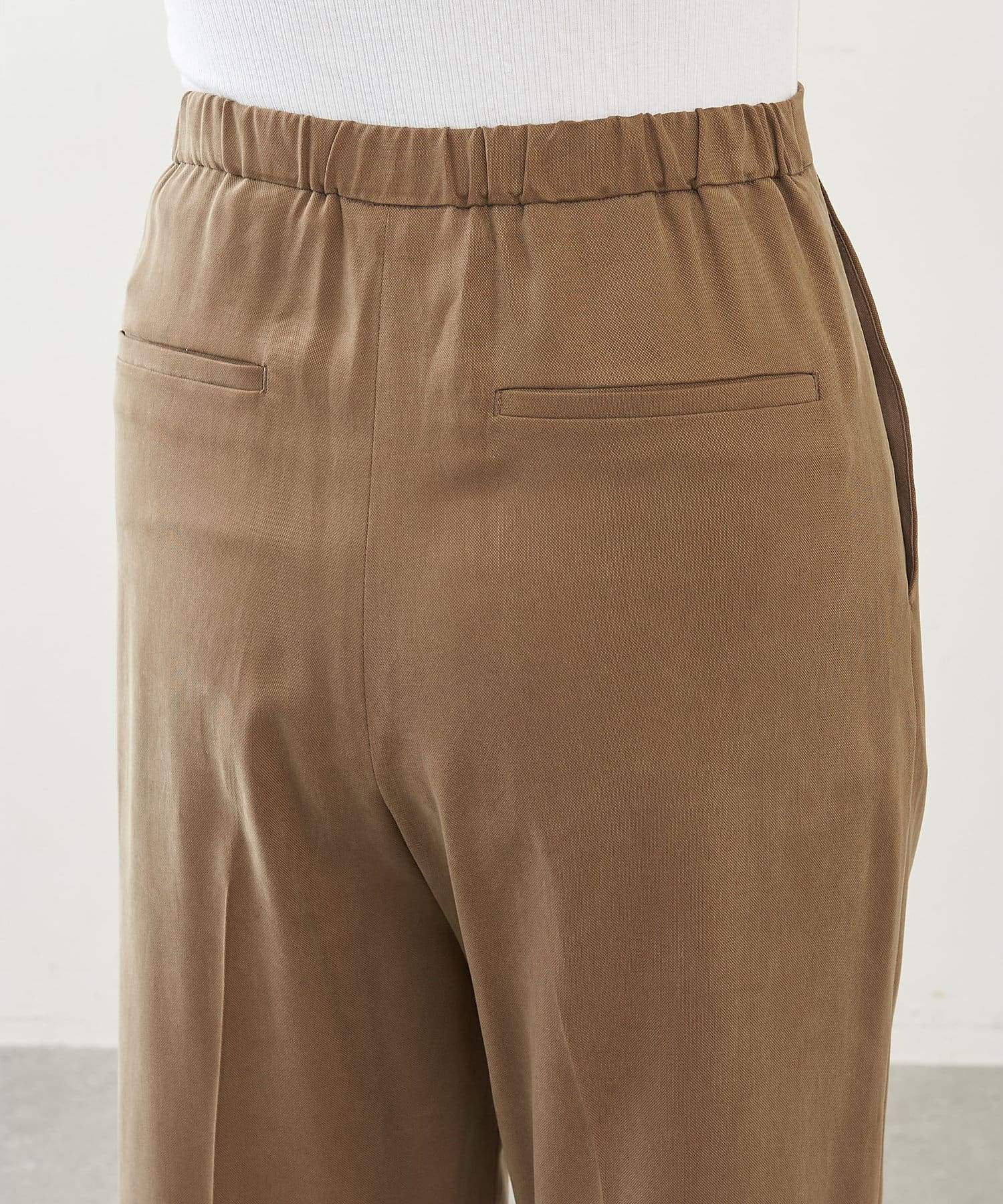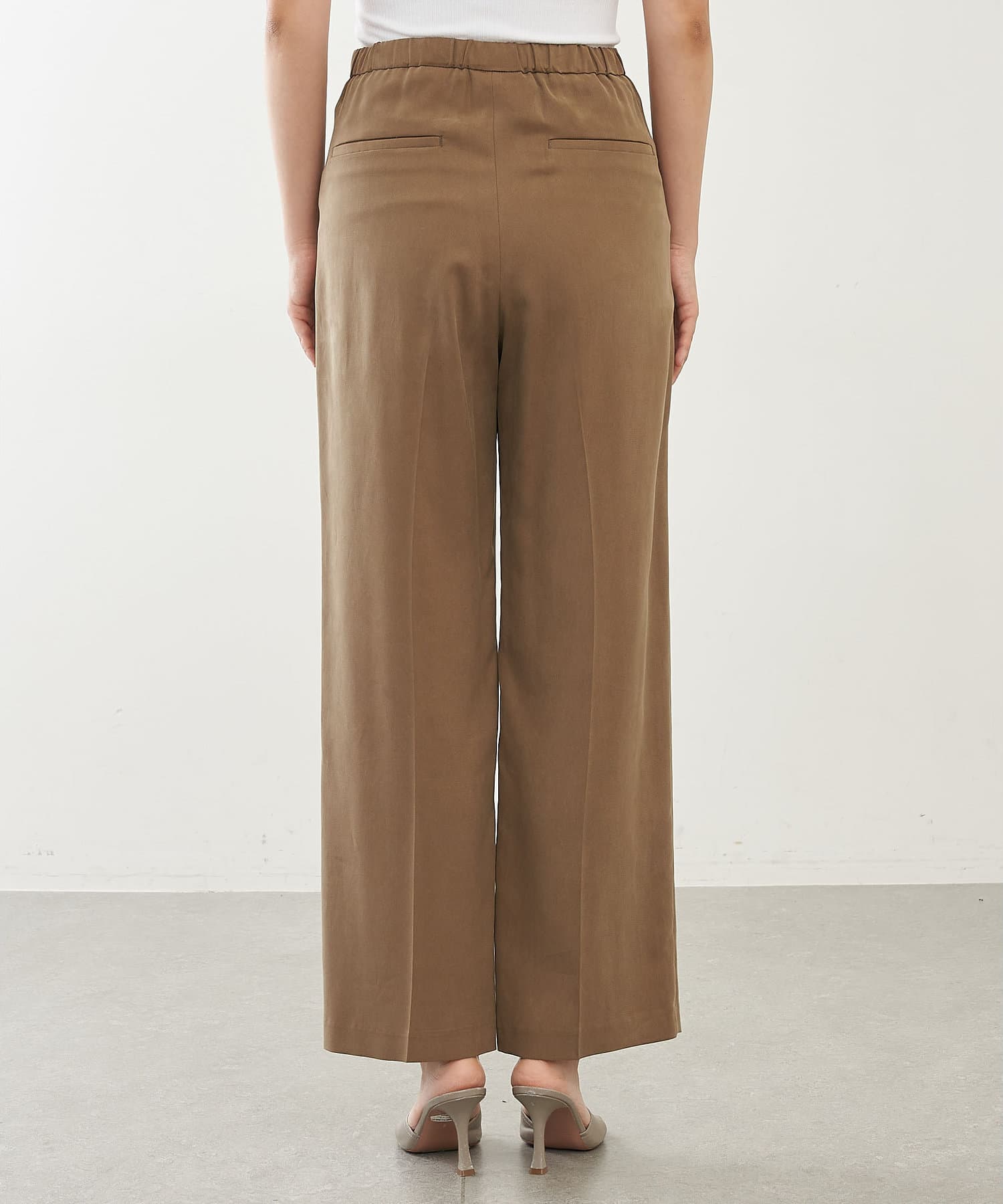 ■微光沢ととろみのある風合いが上品なセミワイドパンツ。