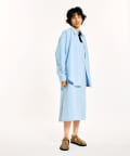 ■羽織りとして着用しても様になるハリのある生地感とドット釦仕様。
