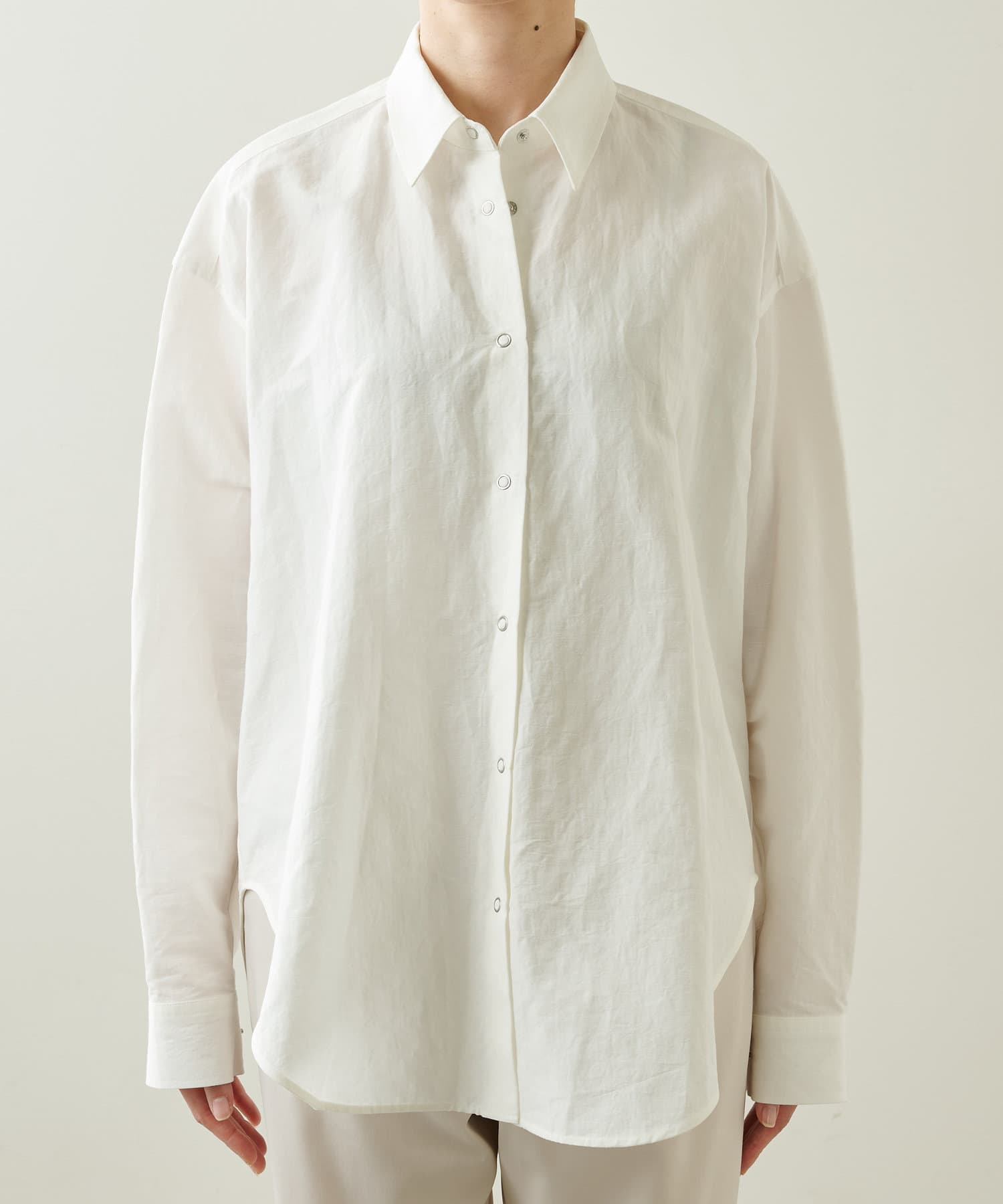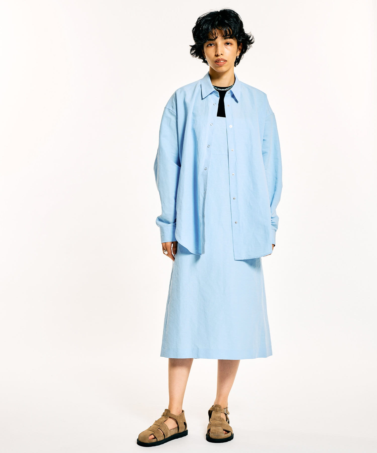 ■ベーシックシャツとは異なるテイストながら、シンプルなデザインでコーディネートに取り入れやすく、一枚あると頼もしい優秀アイテム。