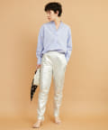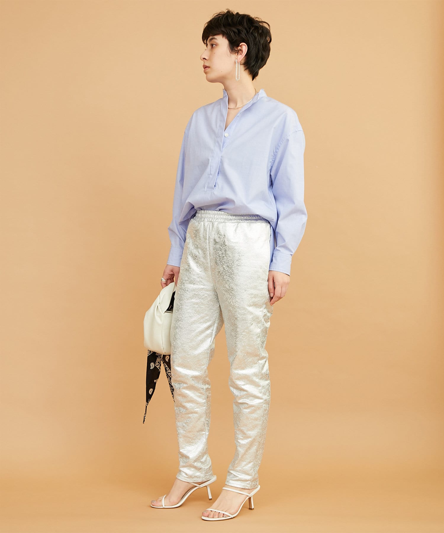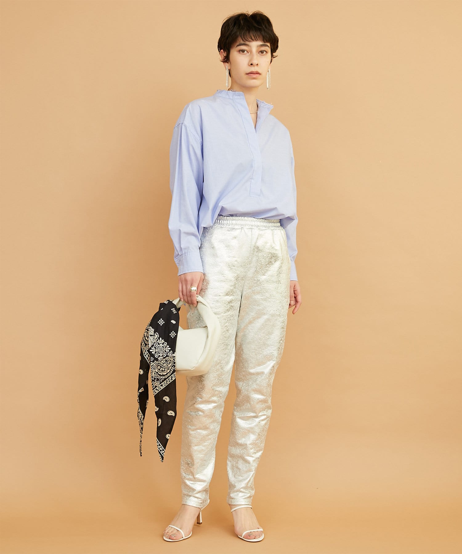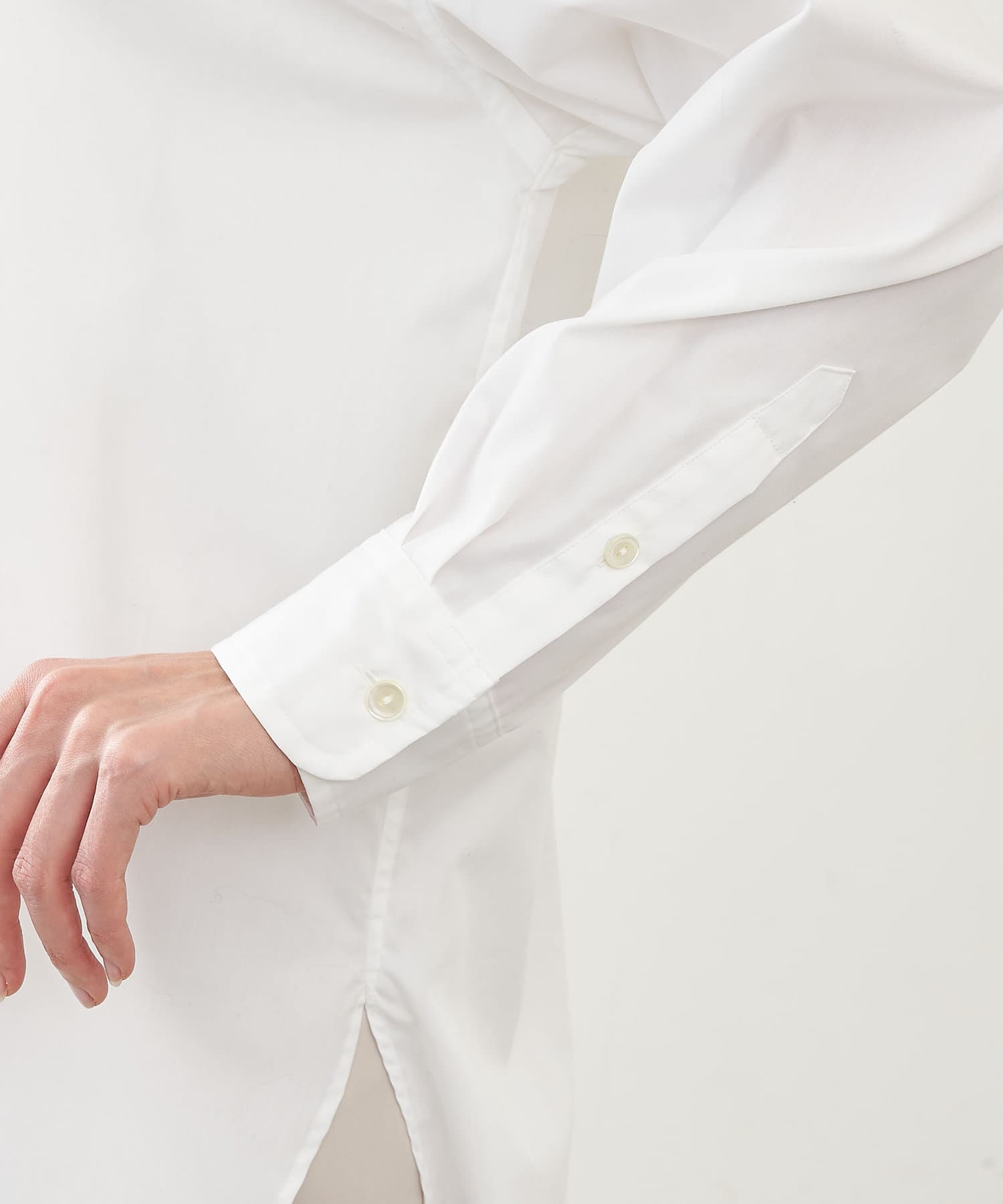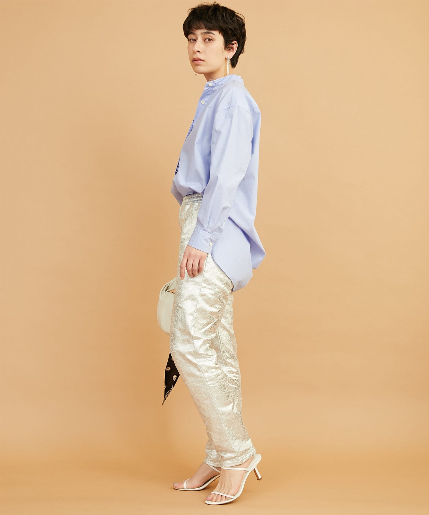 ■敢えて断ち切りに仕上げたバンドカラーが抜け感をプラス。