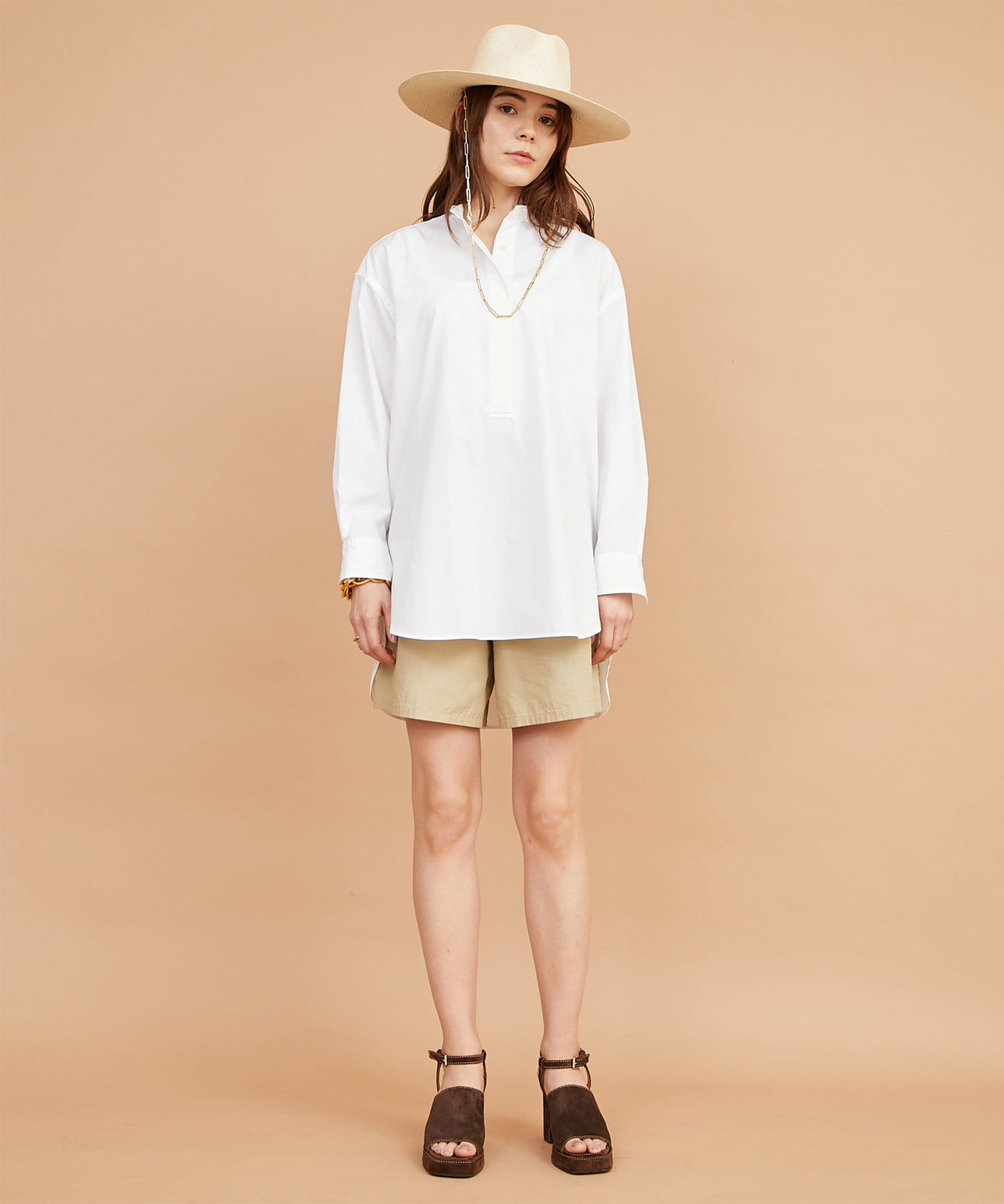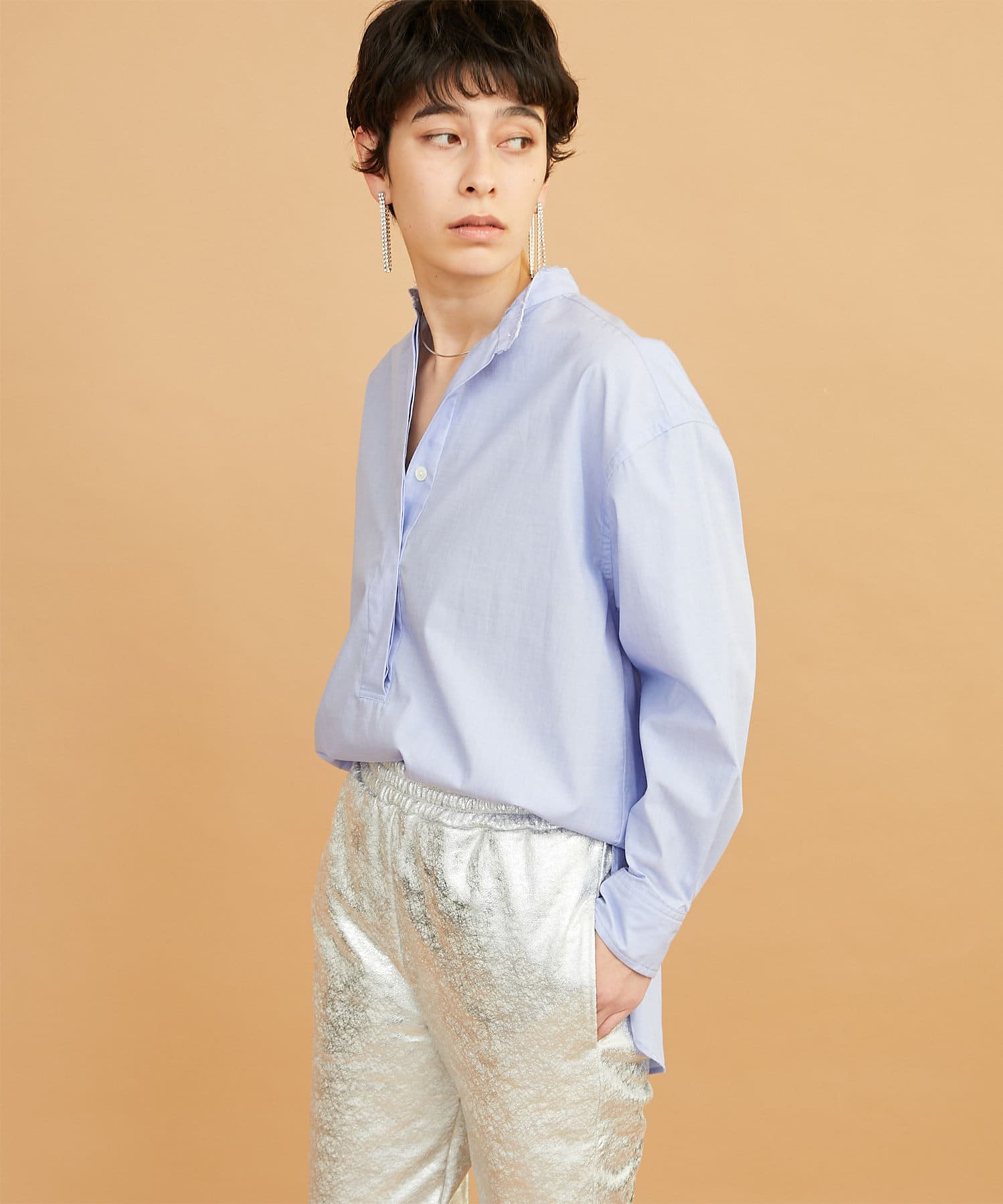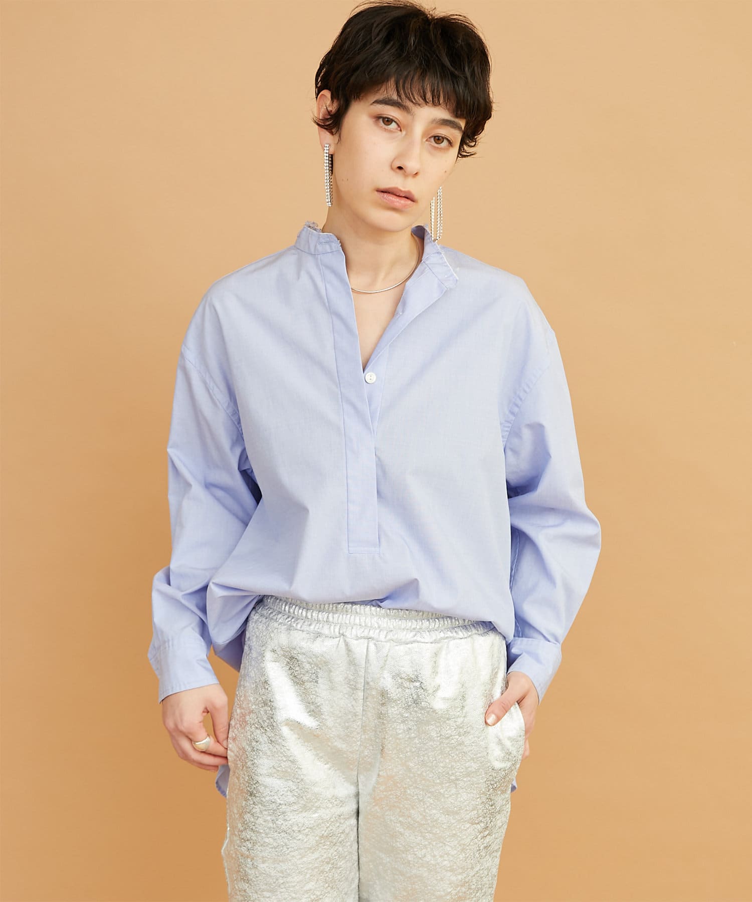 スタンドカラーオーバーシャツ