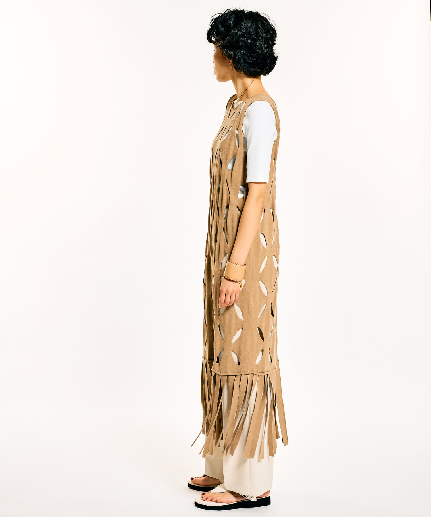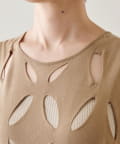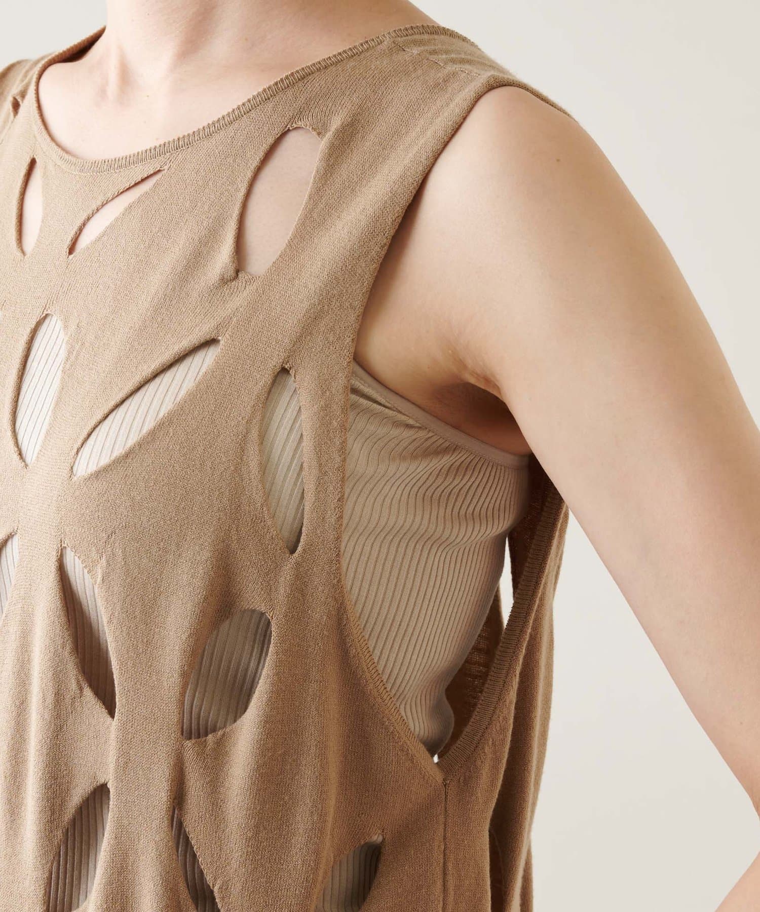 ■全面にあしらわれたスリットが目を惹き、お手持ちのアイテムにレイヤードすれば新鮮なスタイリングを楽しめる一着。