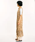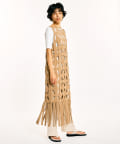 ■1本ずつ編んだ太めのフリンジを裾に施したインパクトのあるデザイン。