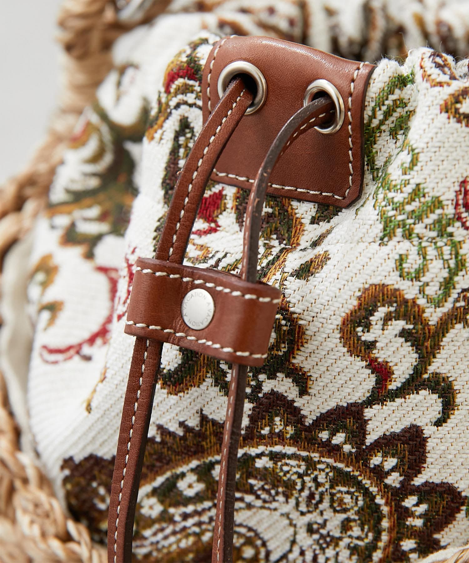 ■ブランドアイコンでもあるペイズリー柄をクラスアップしたオリジナル柄が印象的な巾着型のインバッグ。
