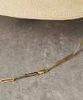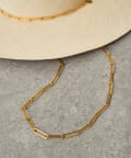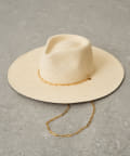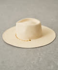 ■ゴールドのチェーンをあしらった、スタイリッシュなストローハット。