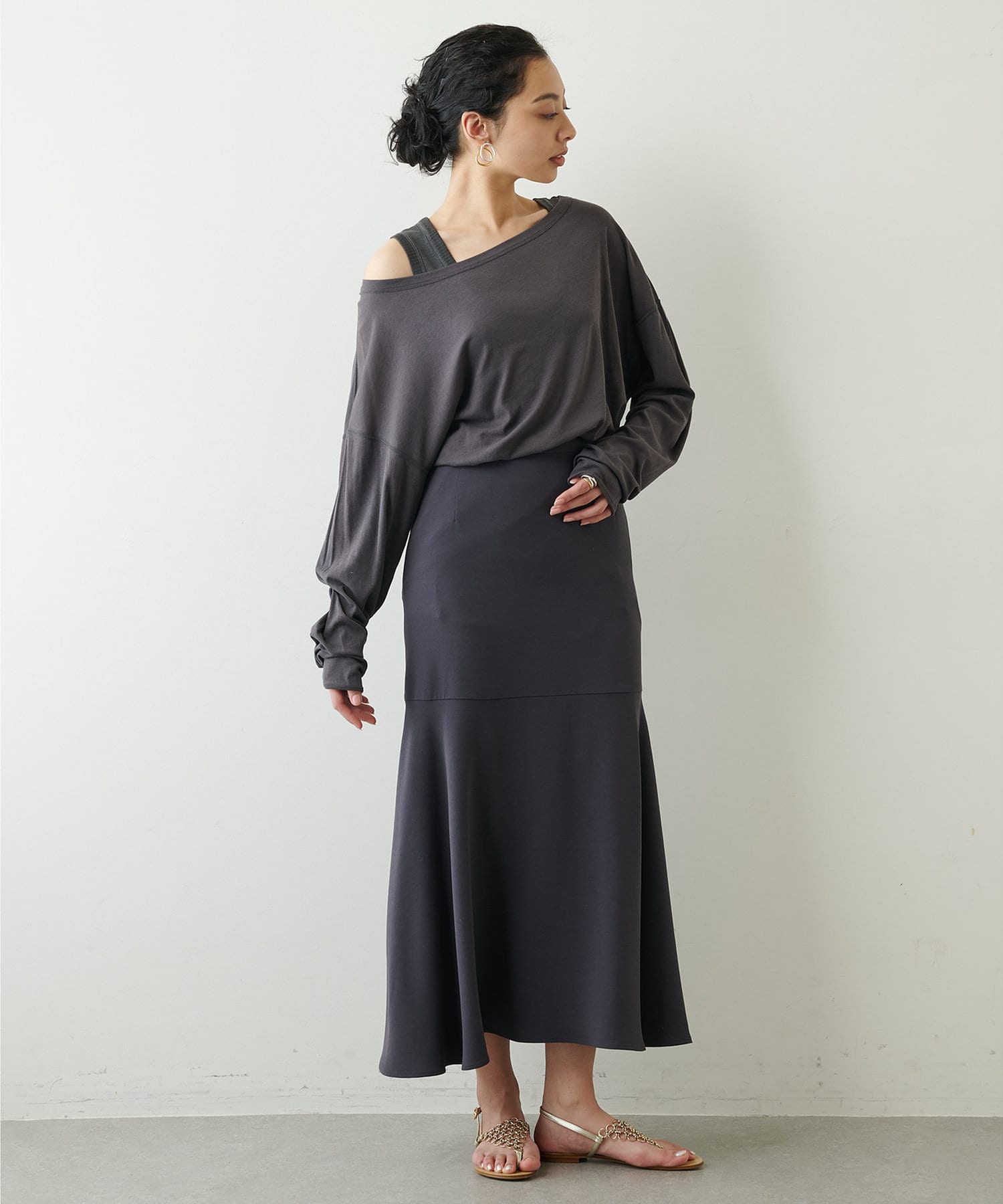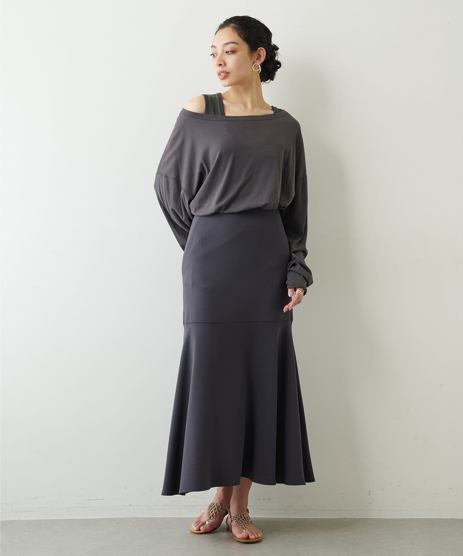■女性らしさを引き立てるマーメイドシルエットのロングスカート。