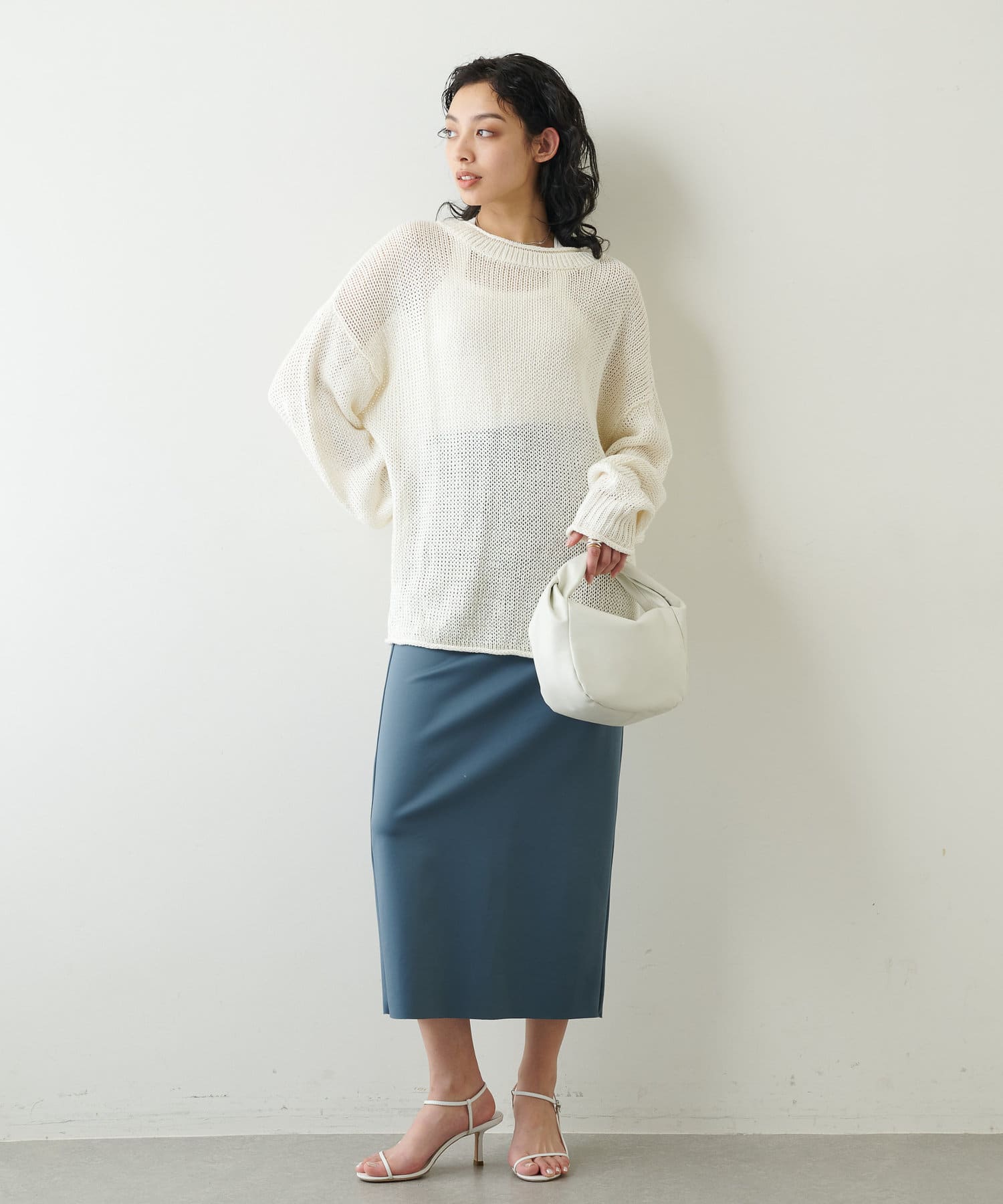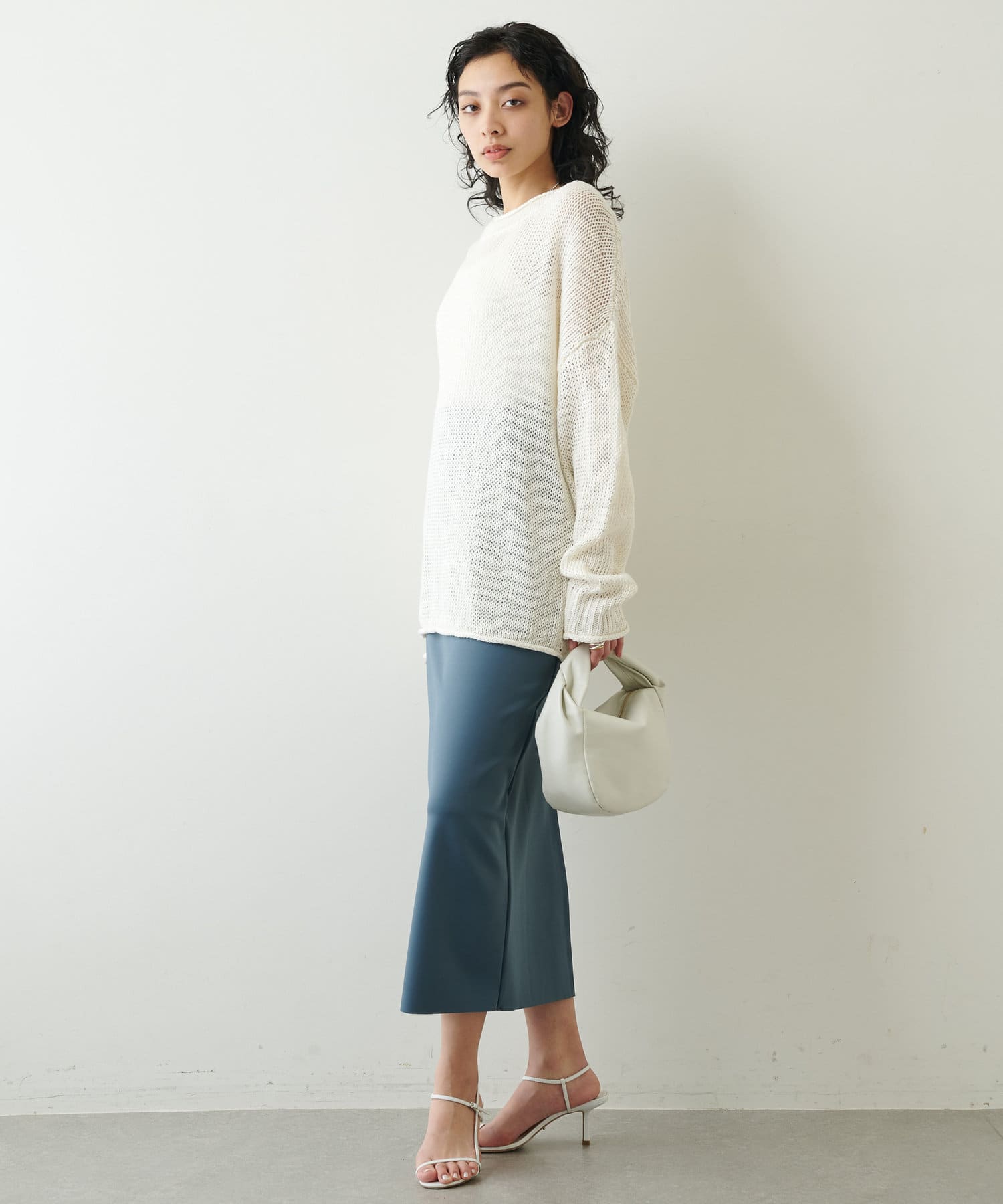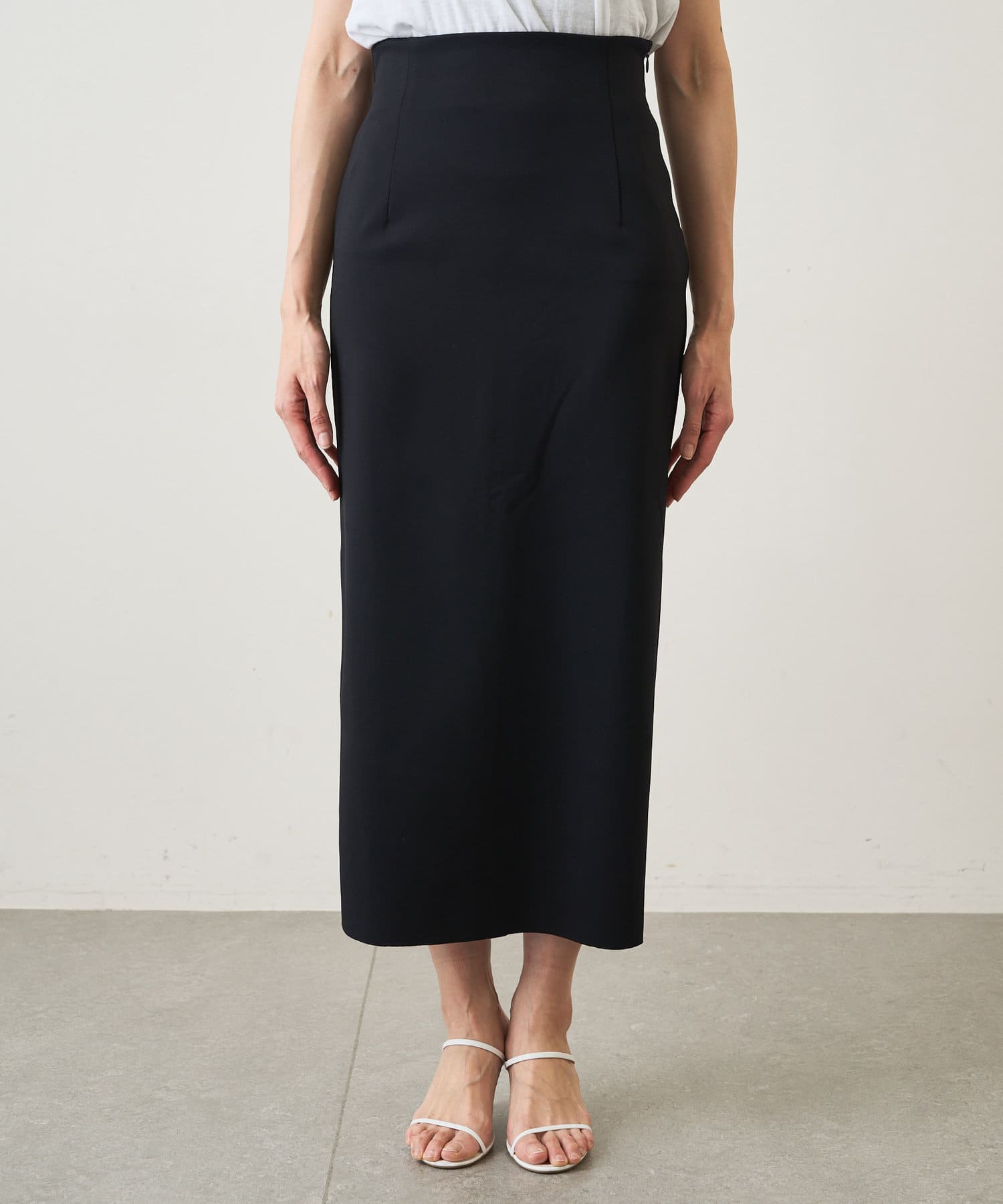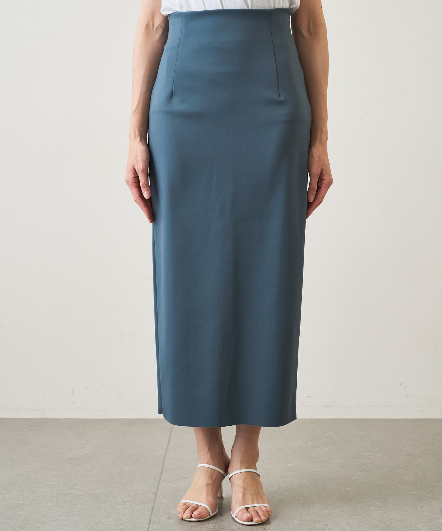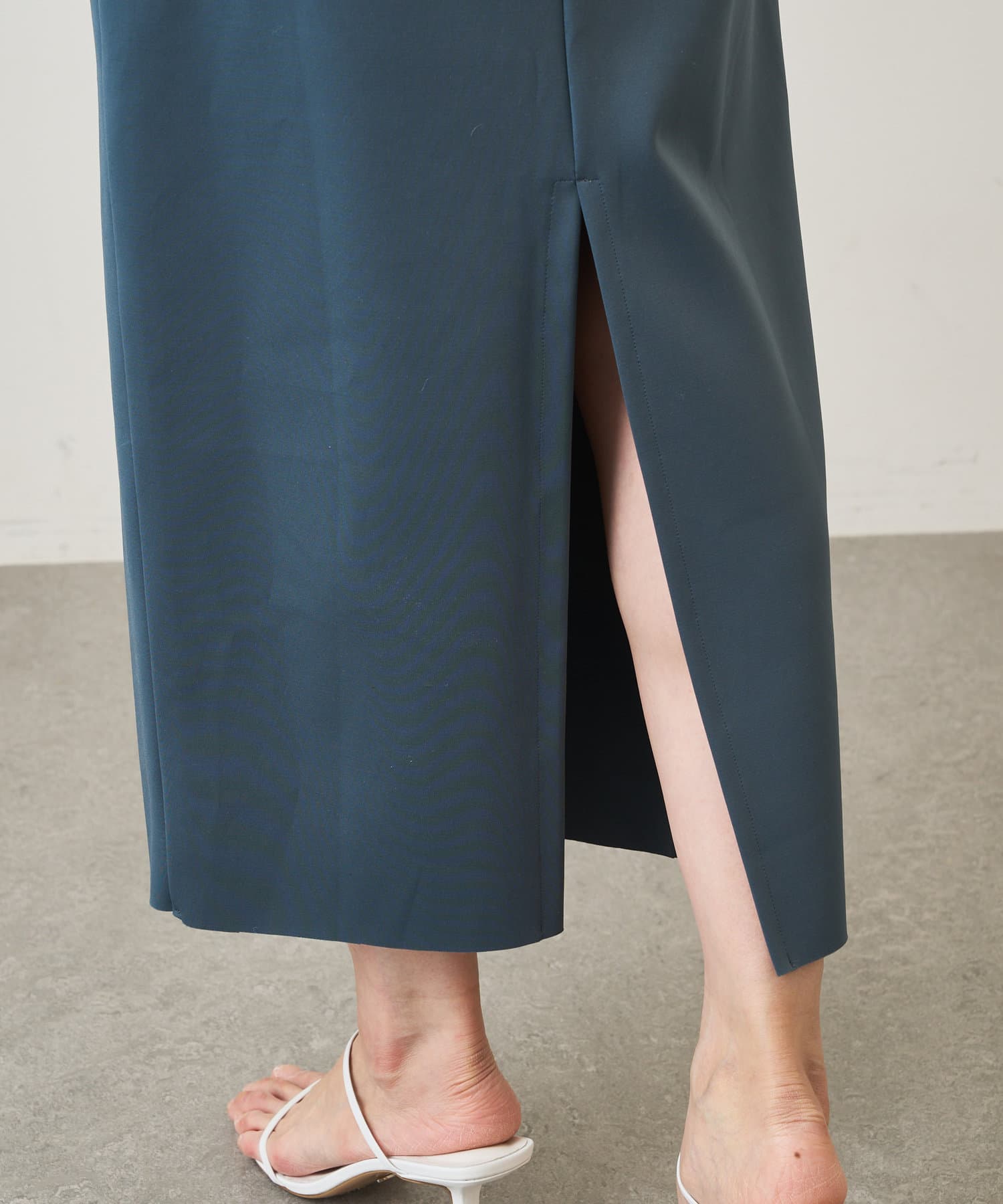 ■控えめな光沢が上品な印象を与えてくれるタイトスカート。