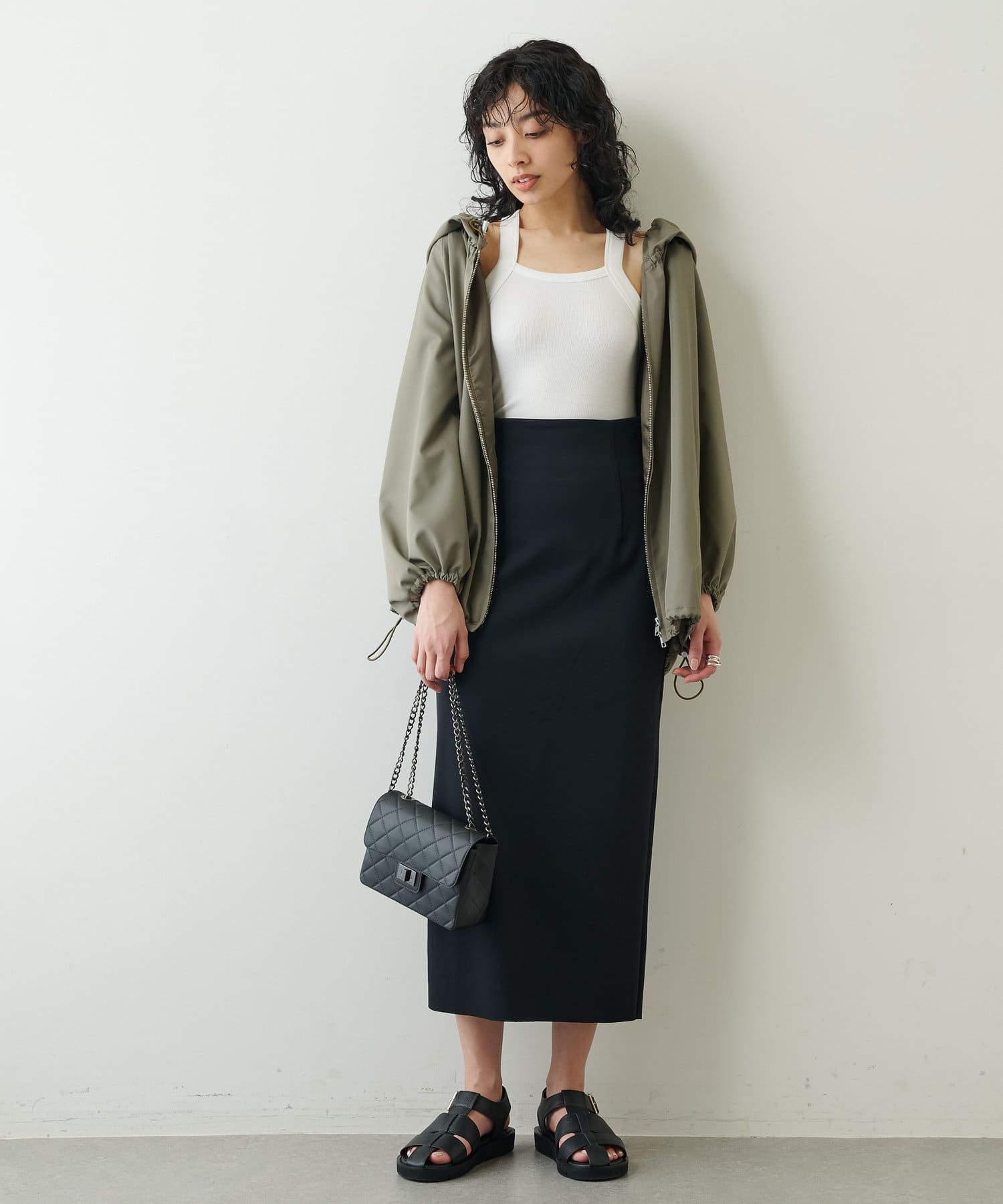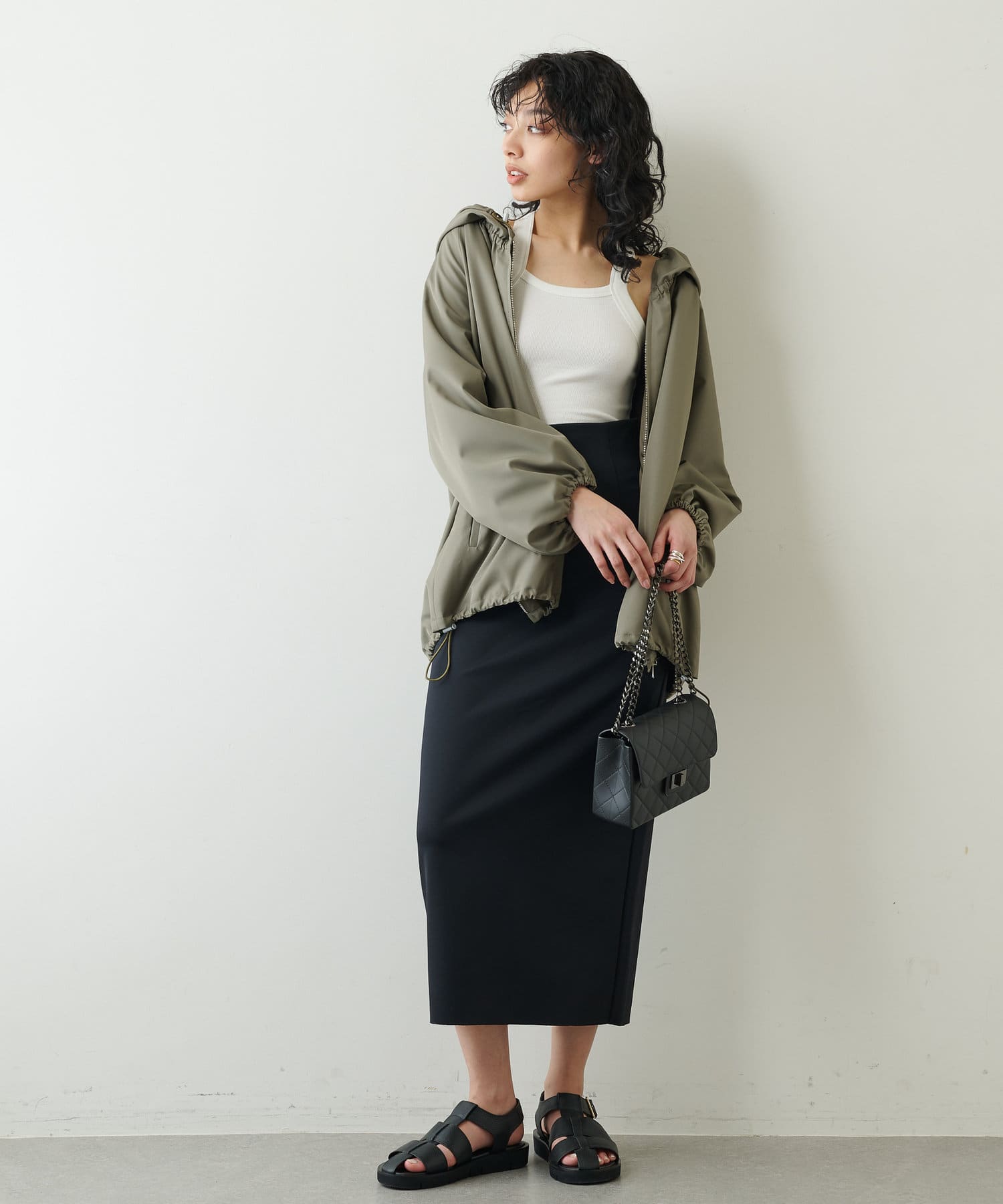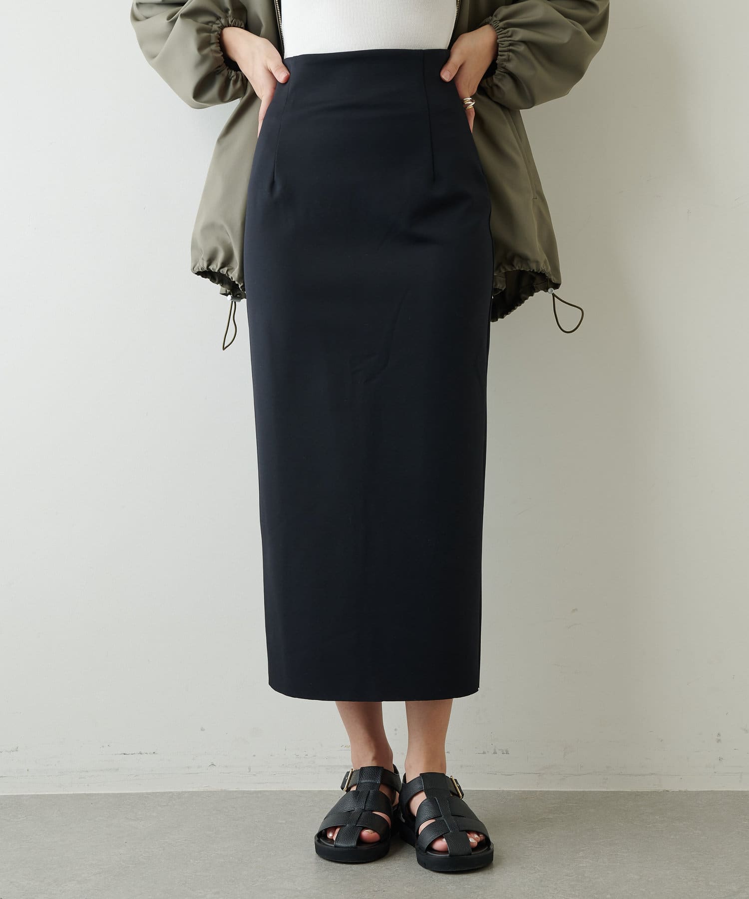 着心地の良さときちんと見えがうれしい、カット素材のタイトスカート