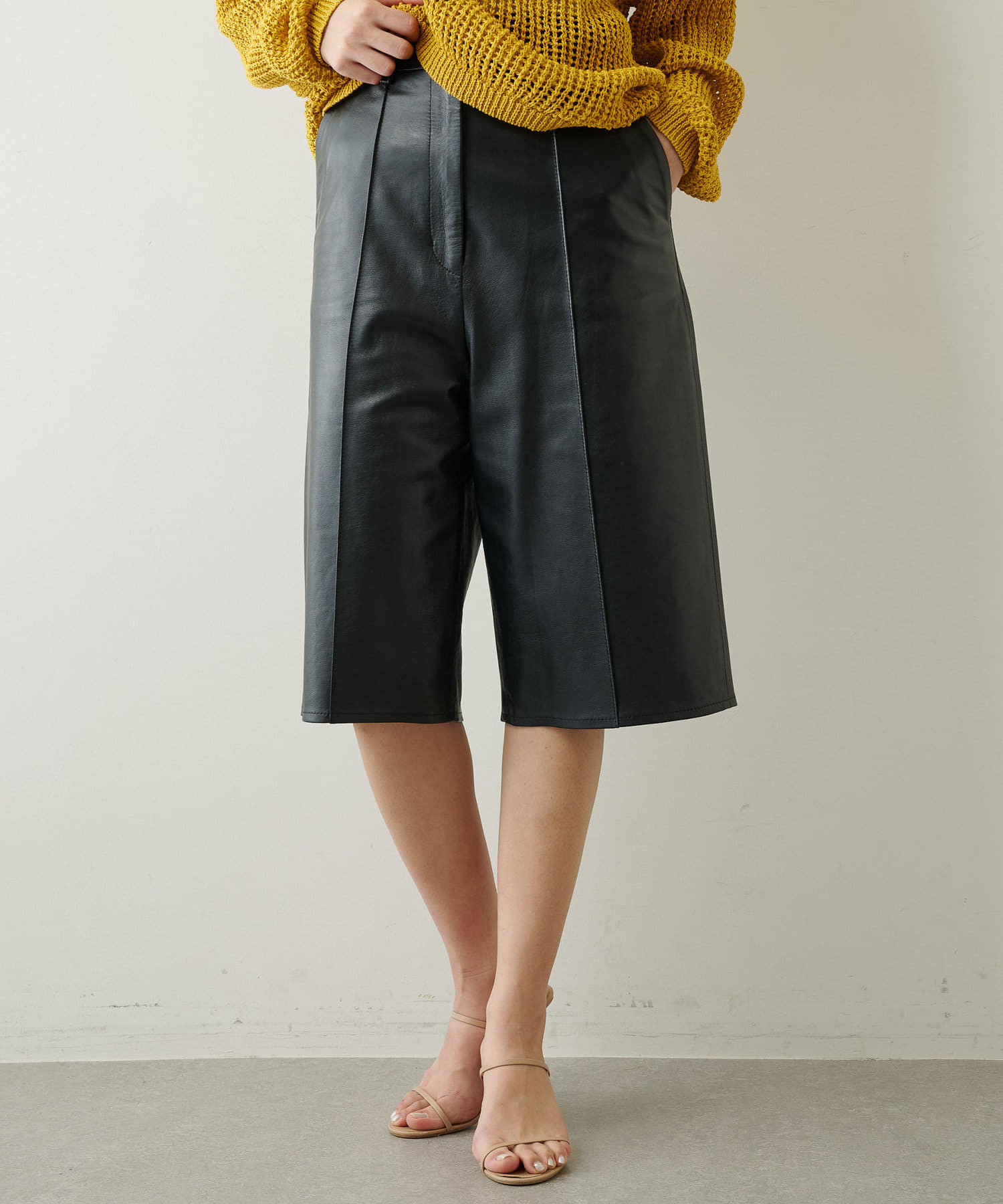 旬のムードを大人らしくリッチに仕上げる、上質レザーハーフパンツ