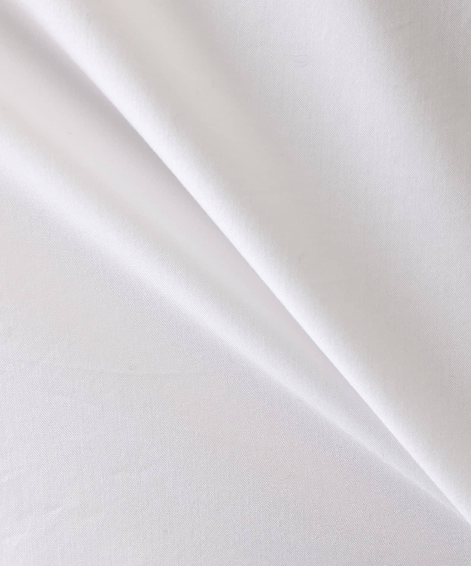 光沢のあるきれいな表面に仕上げ、薄いながらもしなやかでしっかりとした風合いで、シワになりにくく伸縮性もあるストレスの少ない綿素材。
