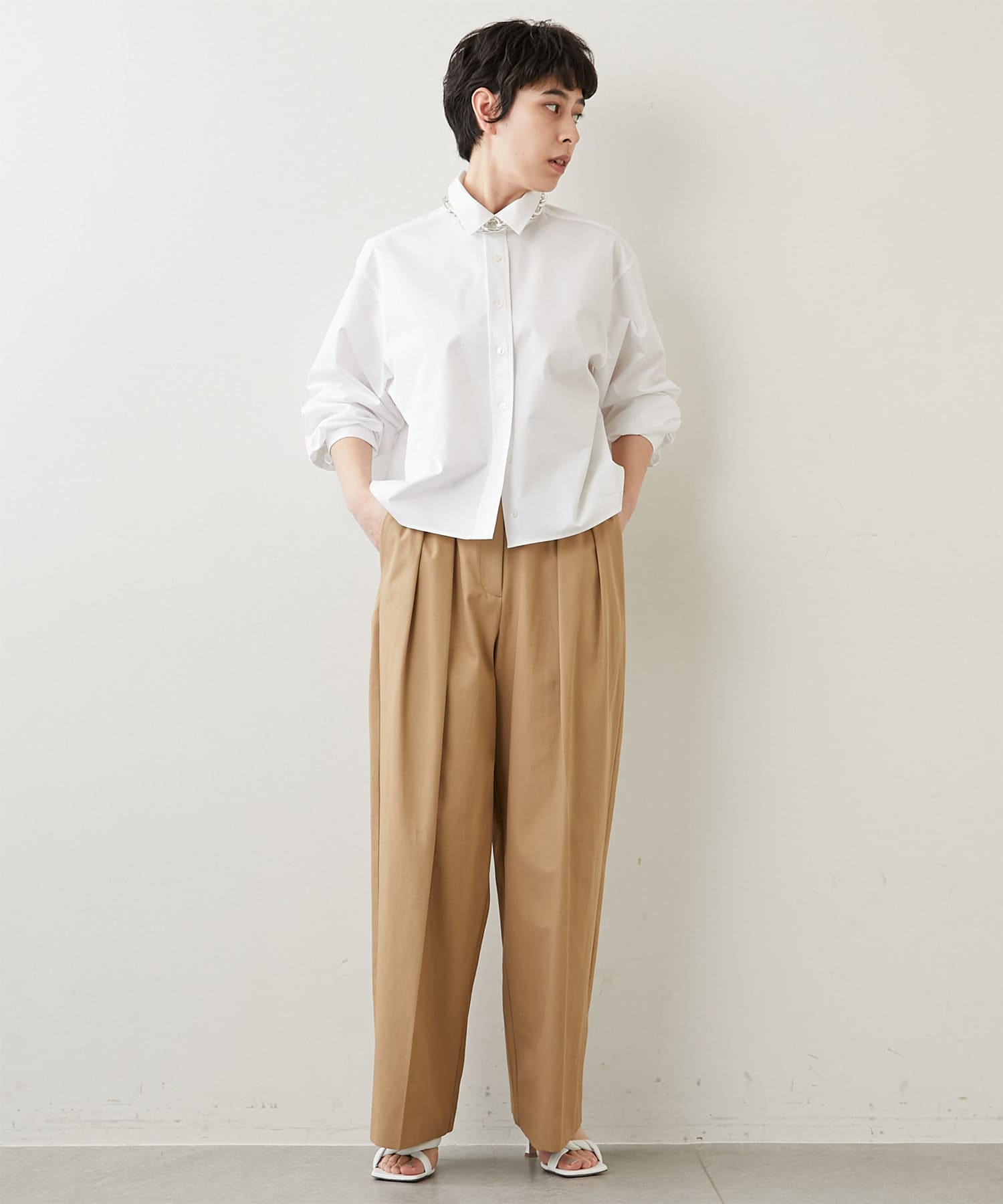 ■タイトスカートと相性良く、パンツスタイルも新鮮なバランスに仕上がりこなれた印象に。