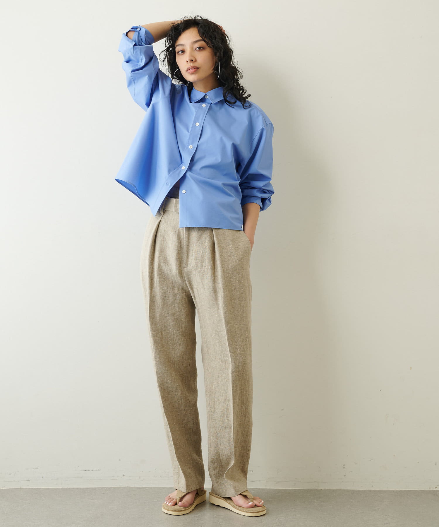 ■立体感のあるシルエットを描くクロップド丈が特徴的なシャツ。