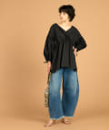 ■チュニック丈で腰回りのラインをカバーできるので、すっきりとした細身のパンツとのコーディネートもトライしていただきやすい一枚。