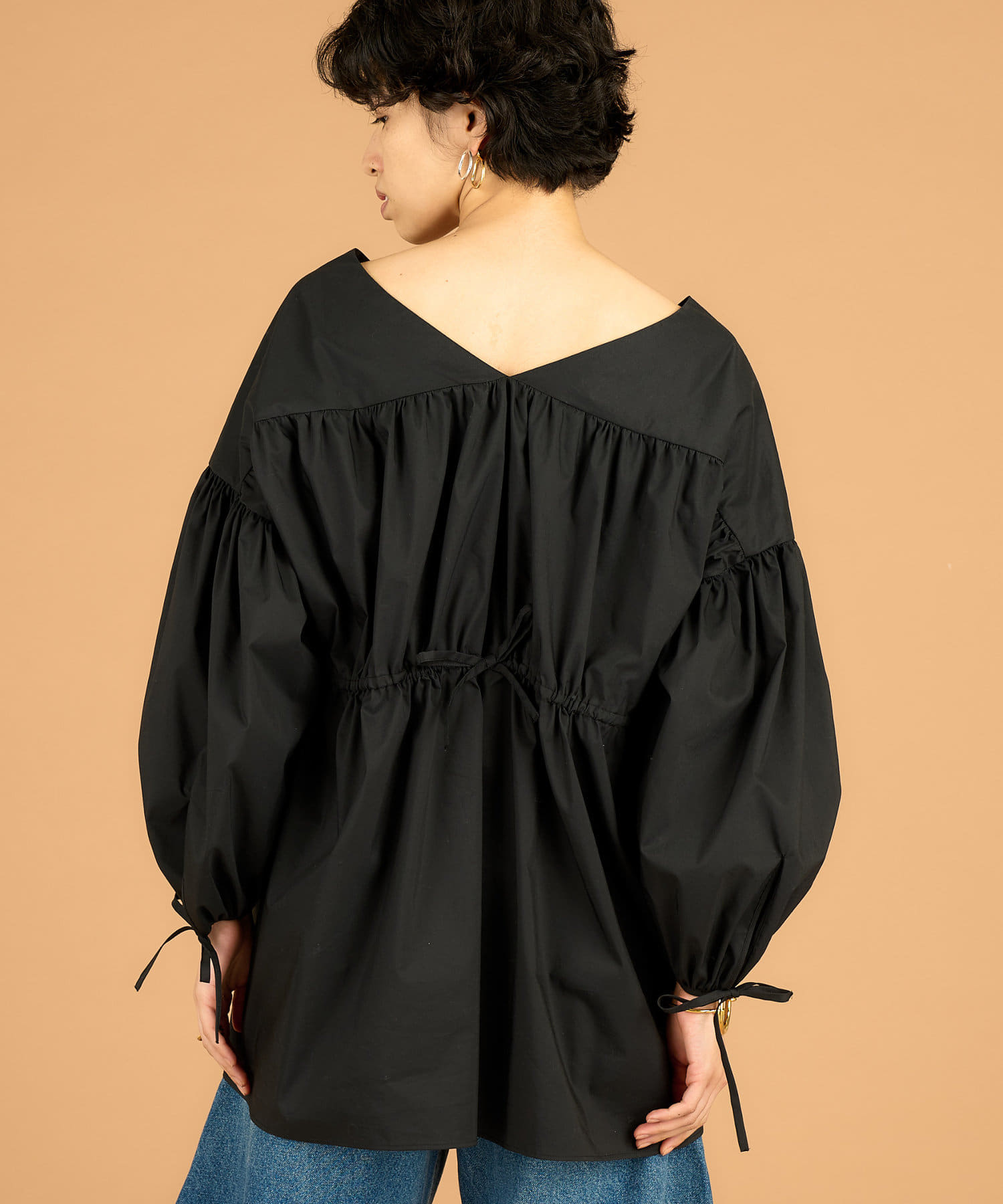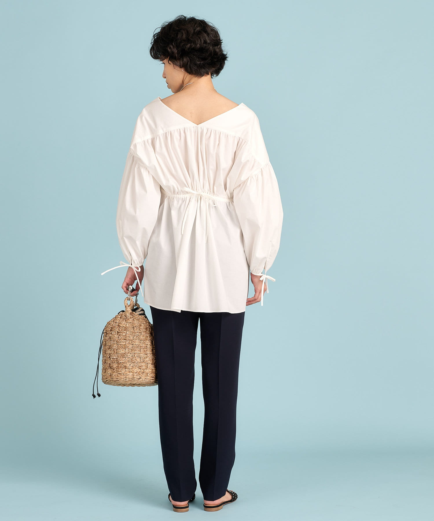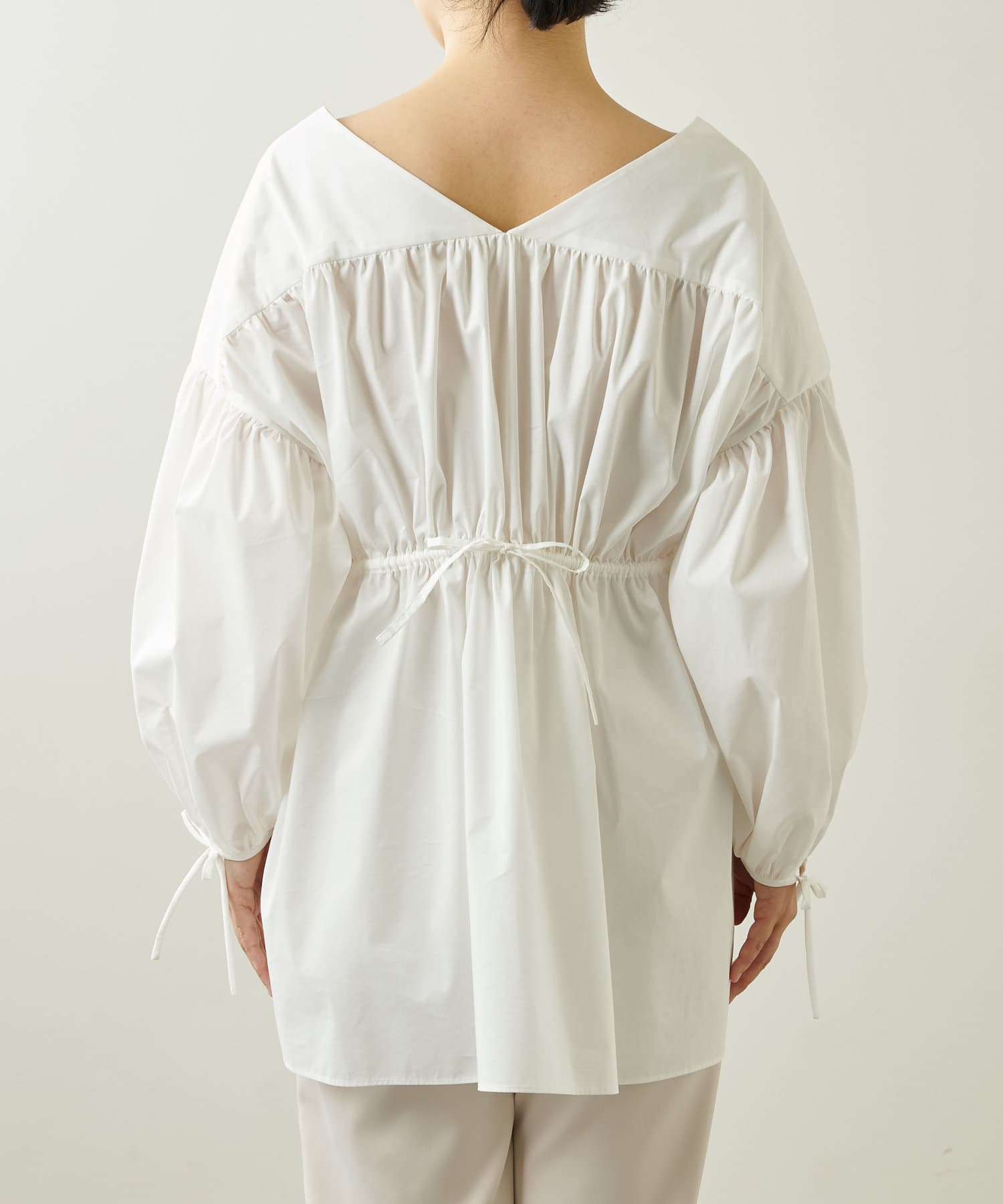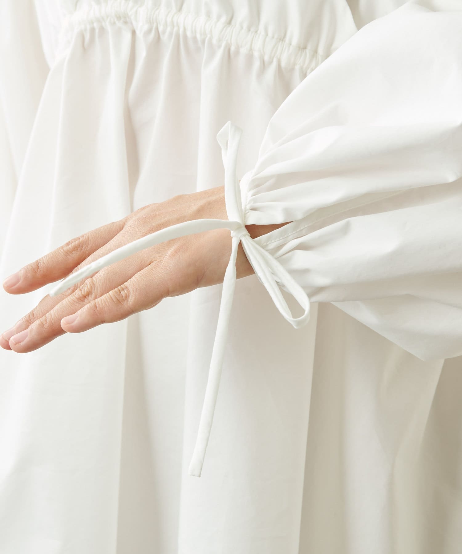 ■袖口とバックスタイルの華奢なリボンディテールがさりげないポイント。