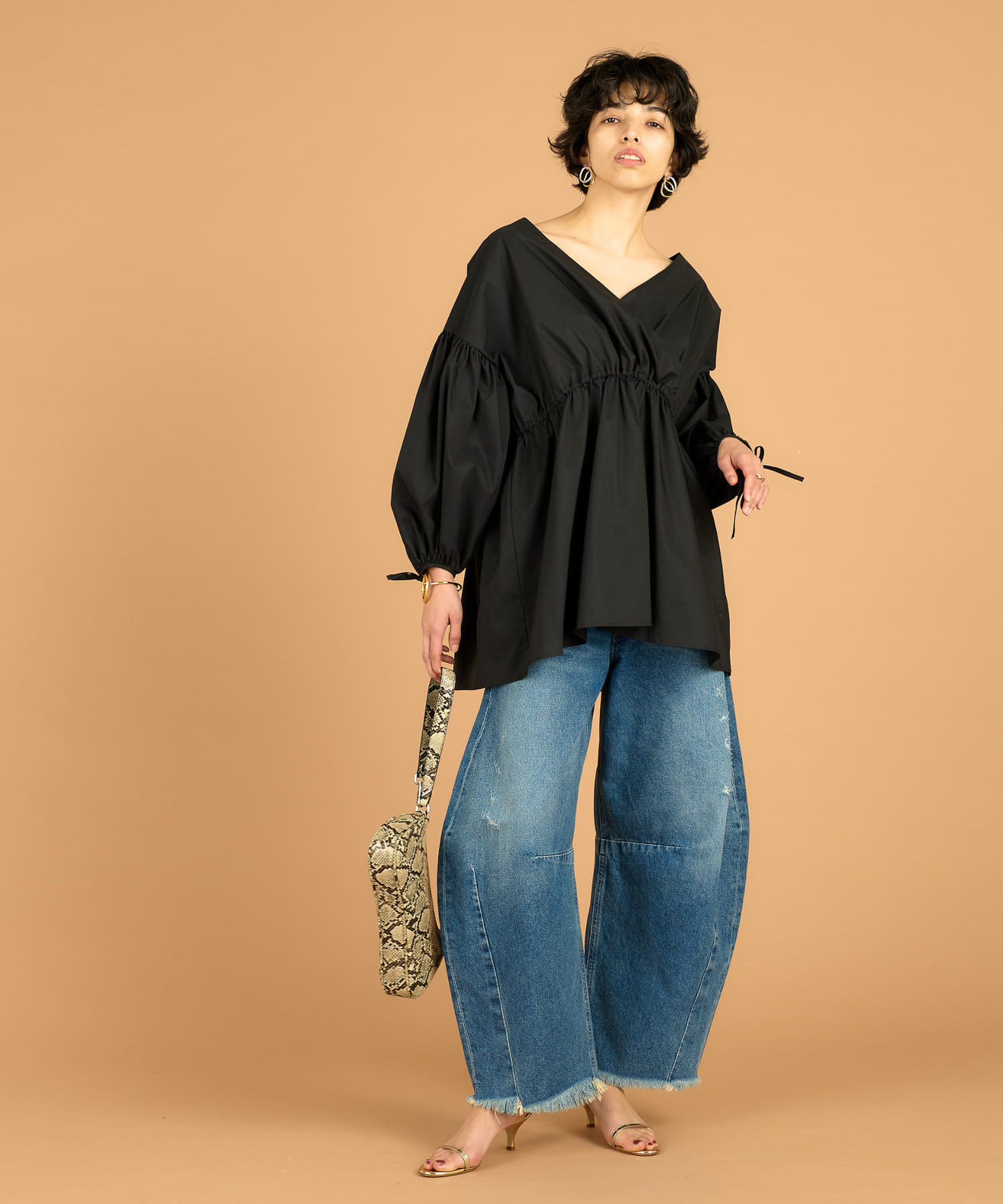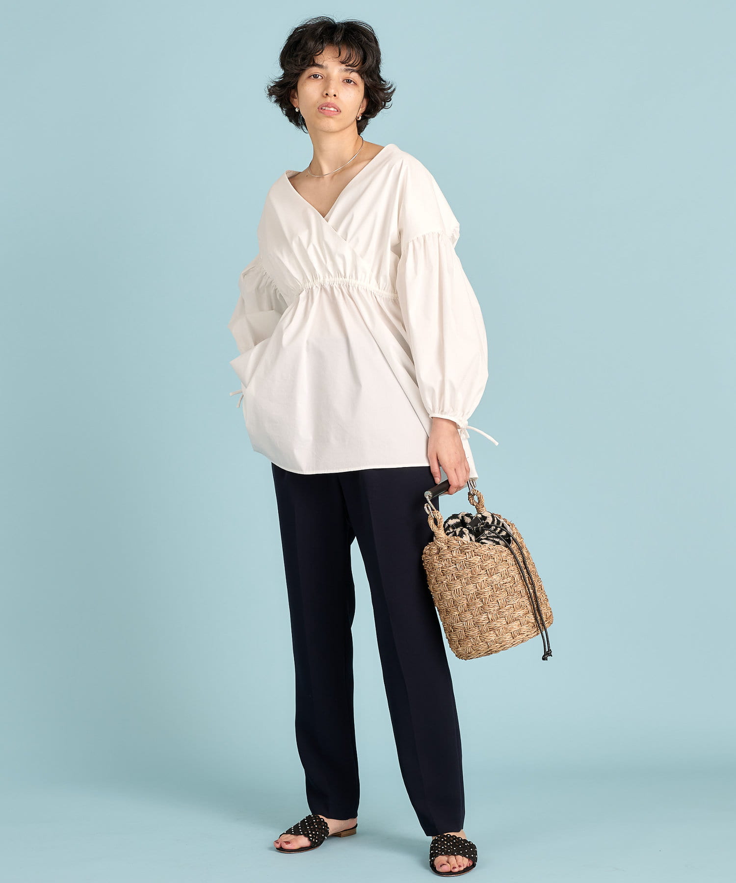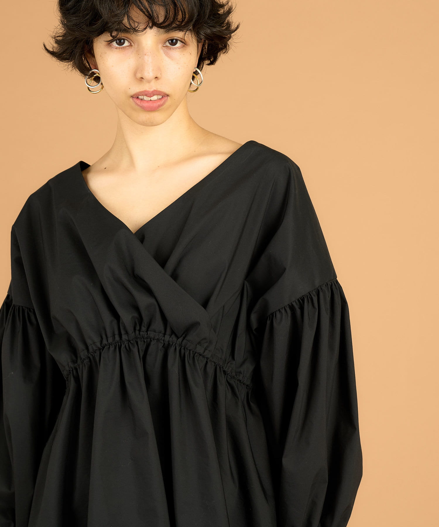 ■贅沢なギャザーの分量とハリのある素材で表現したボリュームシルエット。