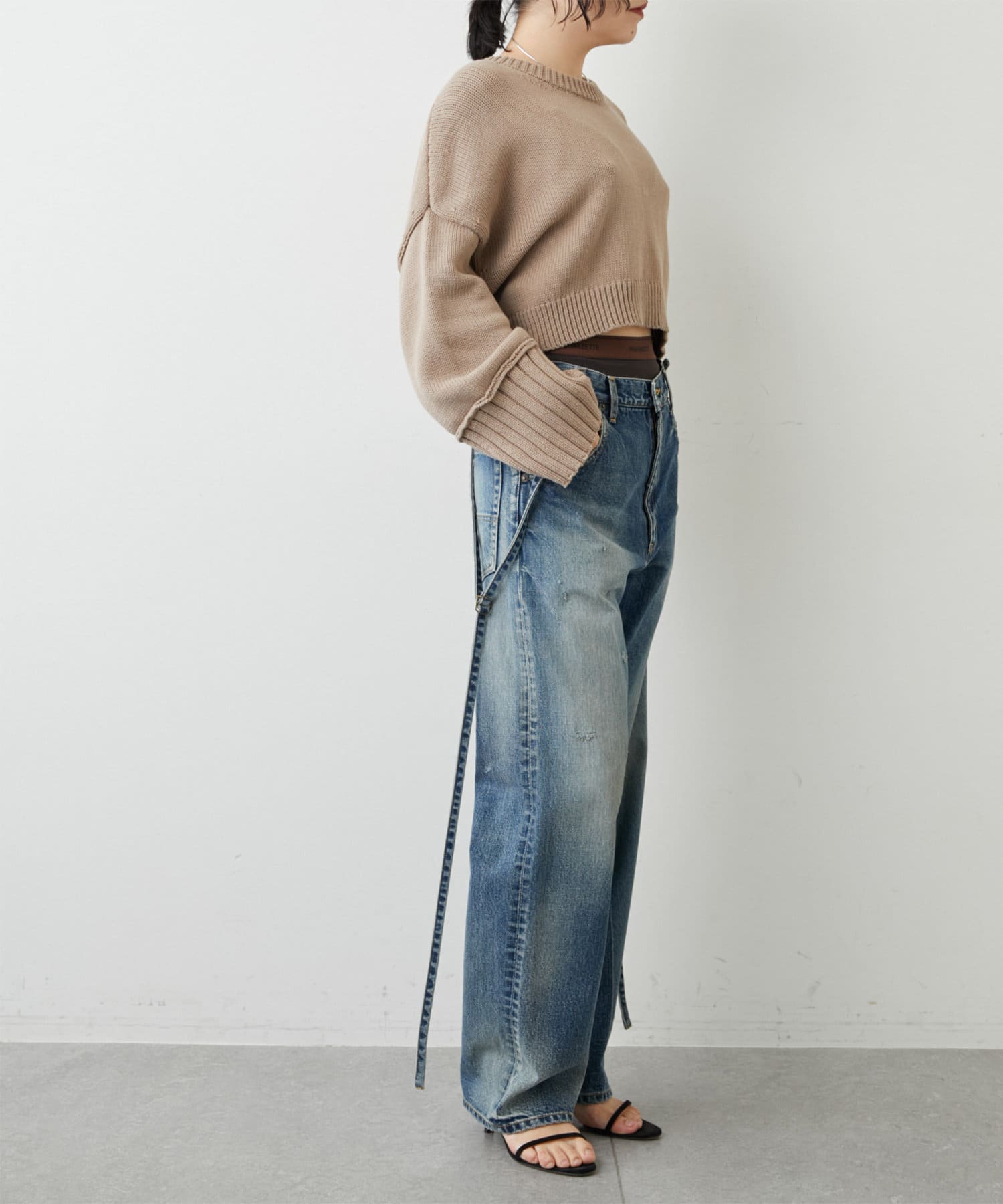 ■ハイウエストボトムと好相性なのはもちろん、トレンドのローライズボトムと合わせてチラリと肌をのぞかせるヘルシーな着こなしもおすすめ。