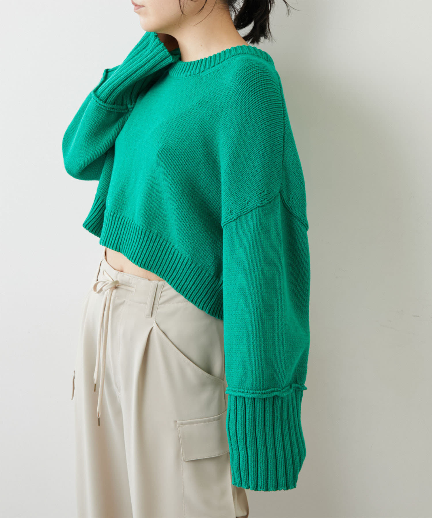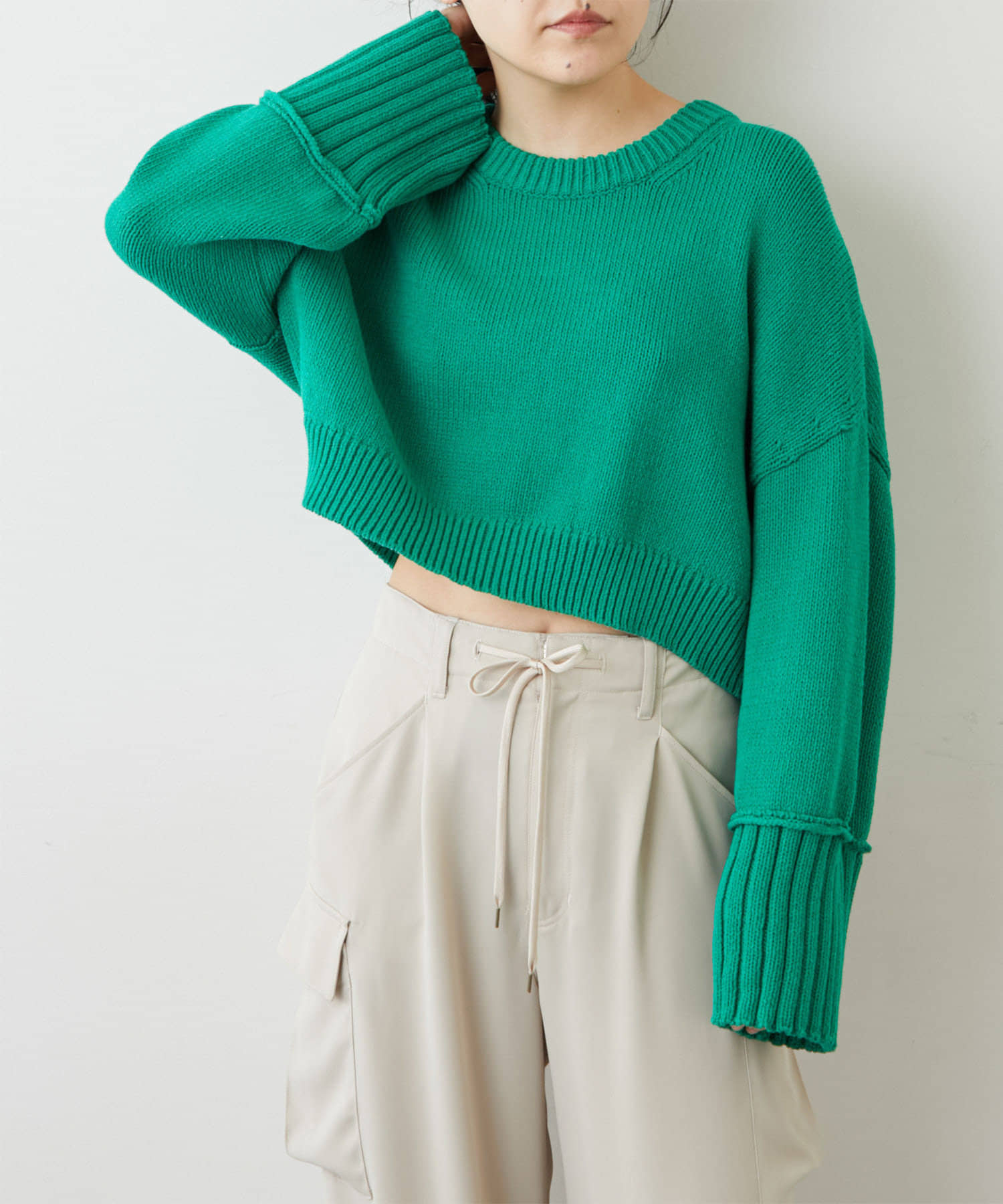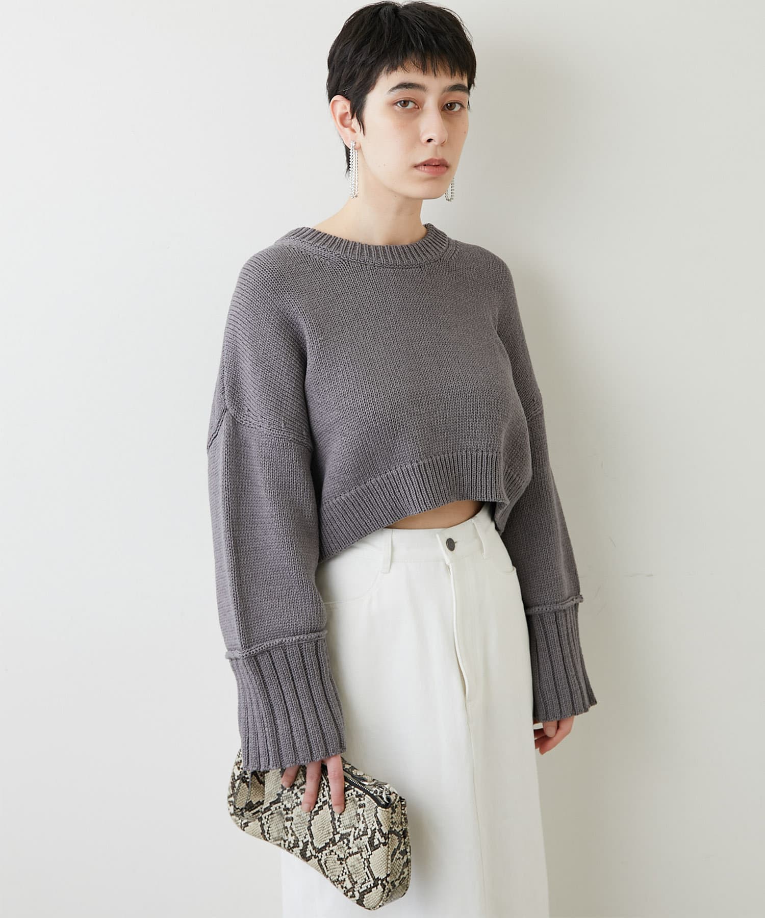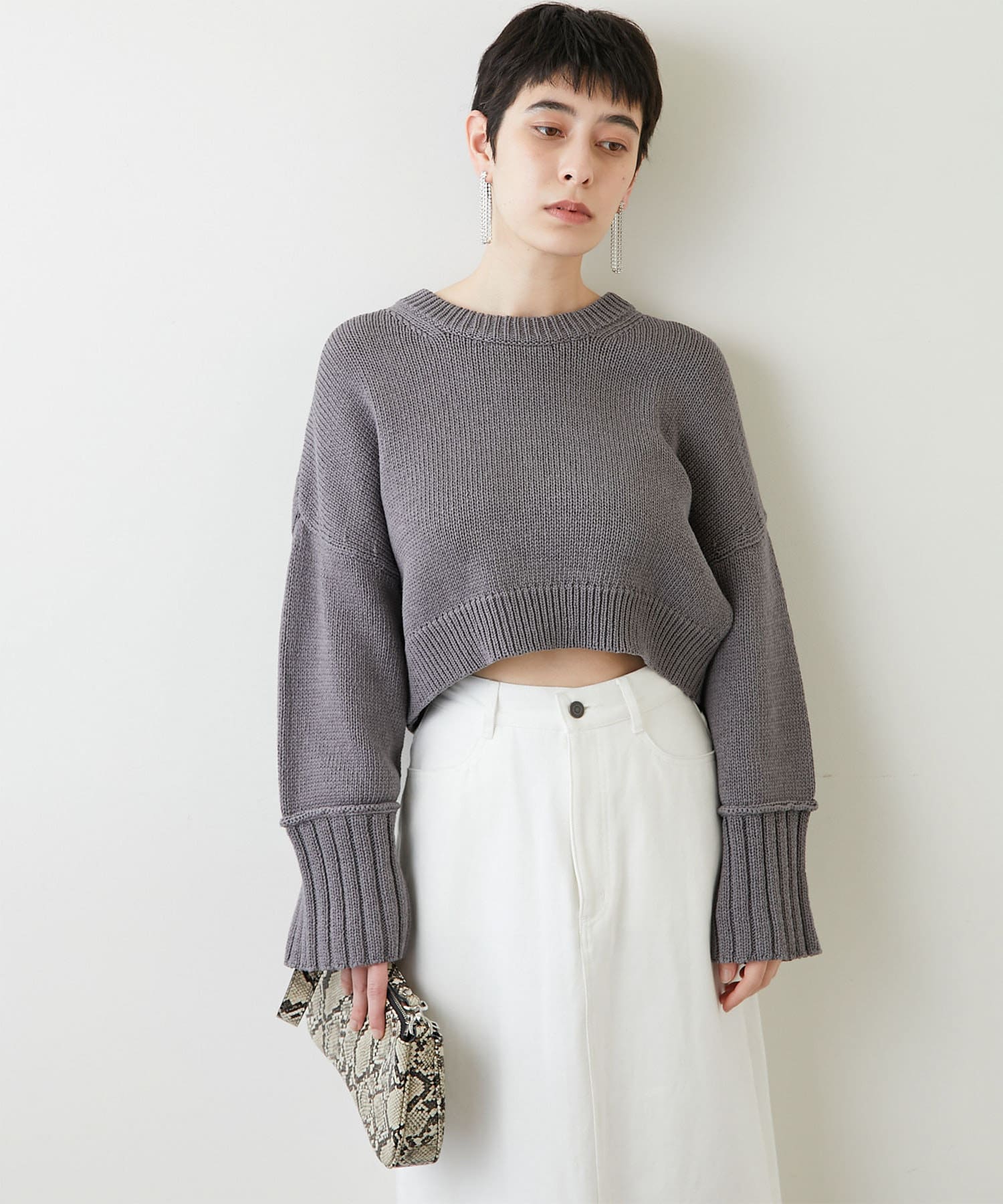 ■クロップドシルエットがトレンドライクなニットプルオーバー。