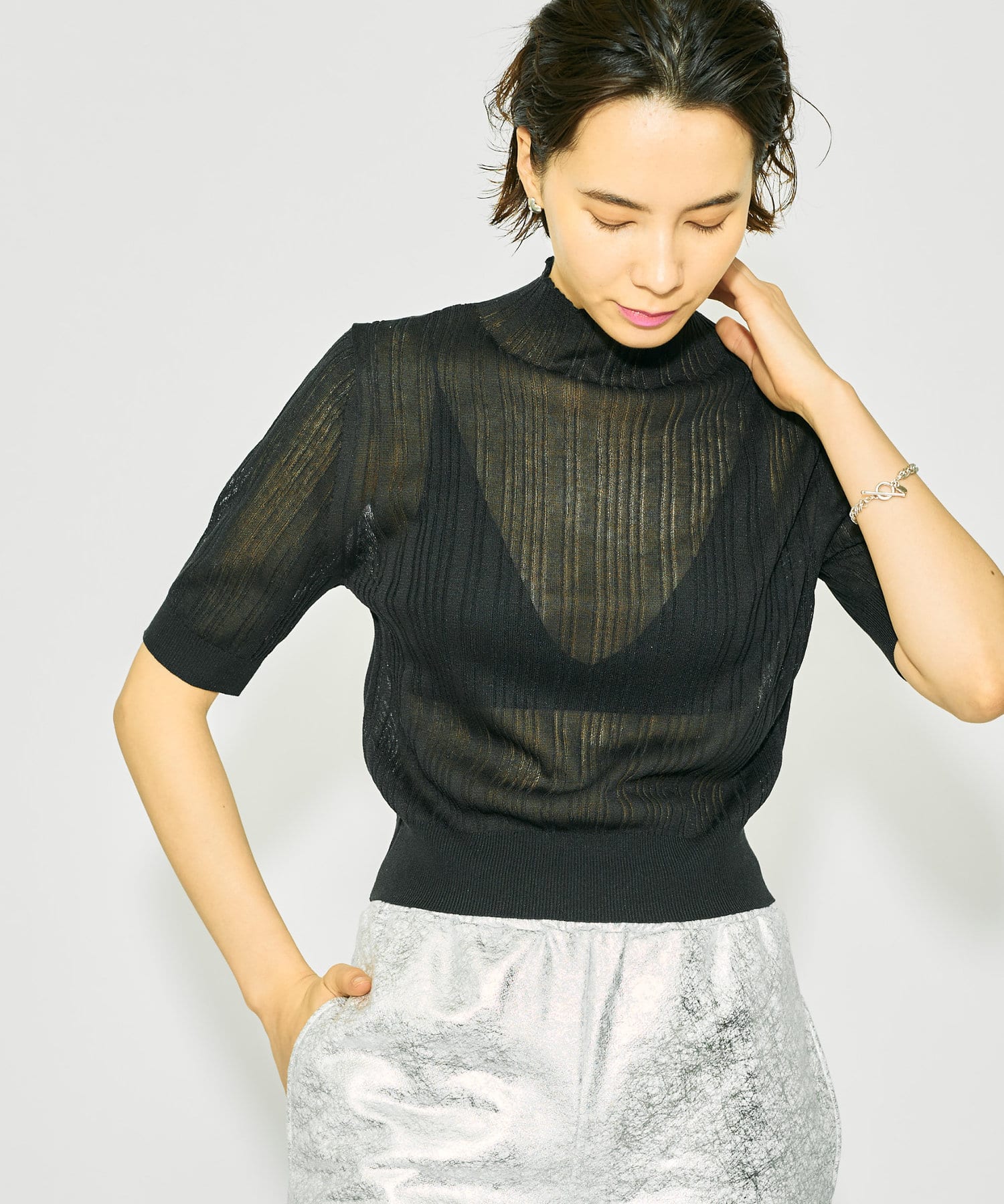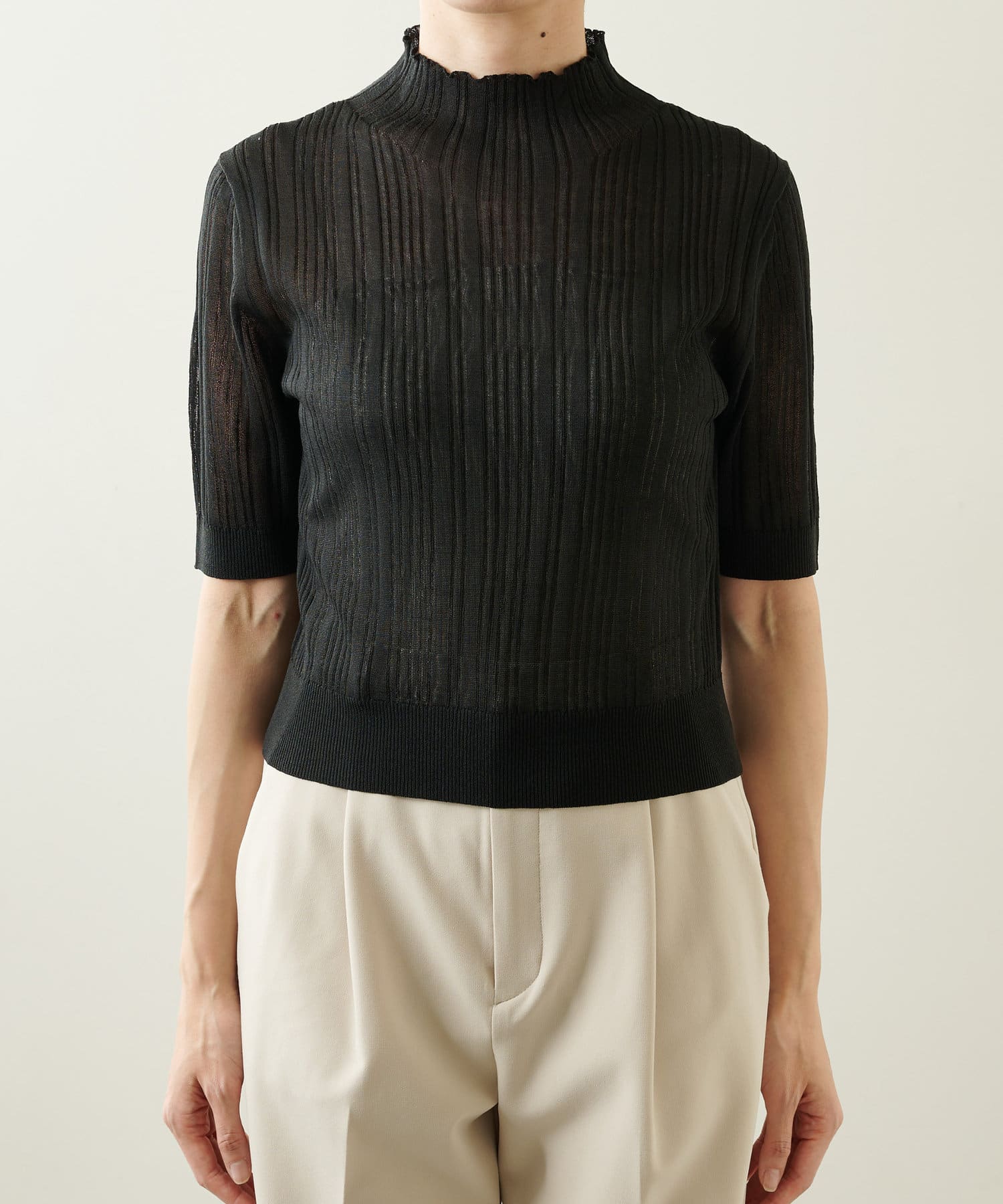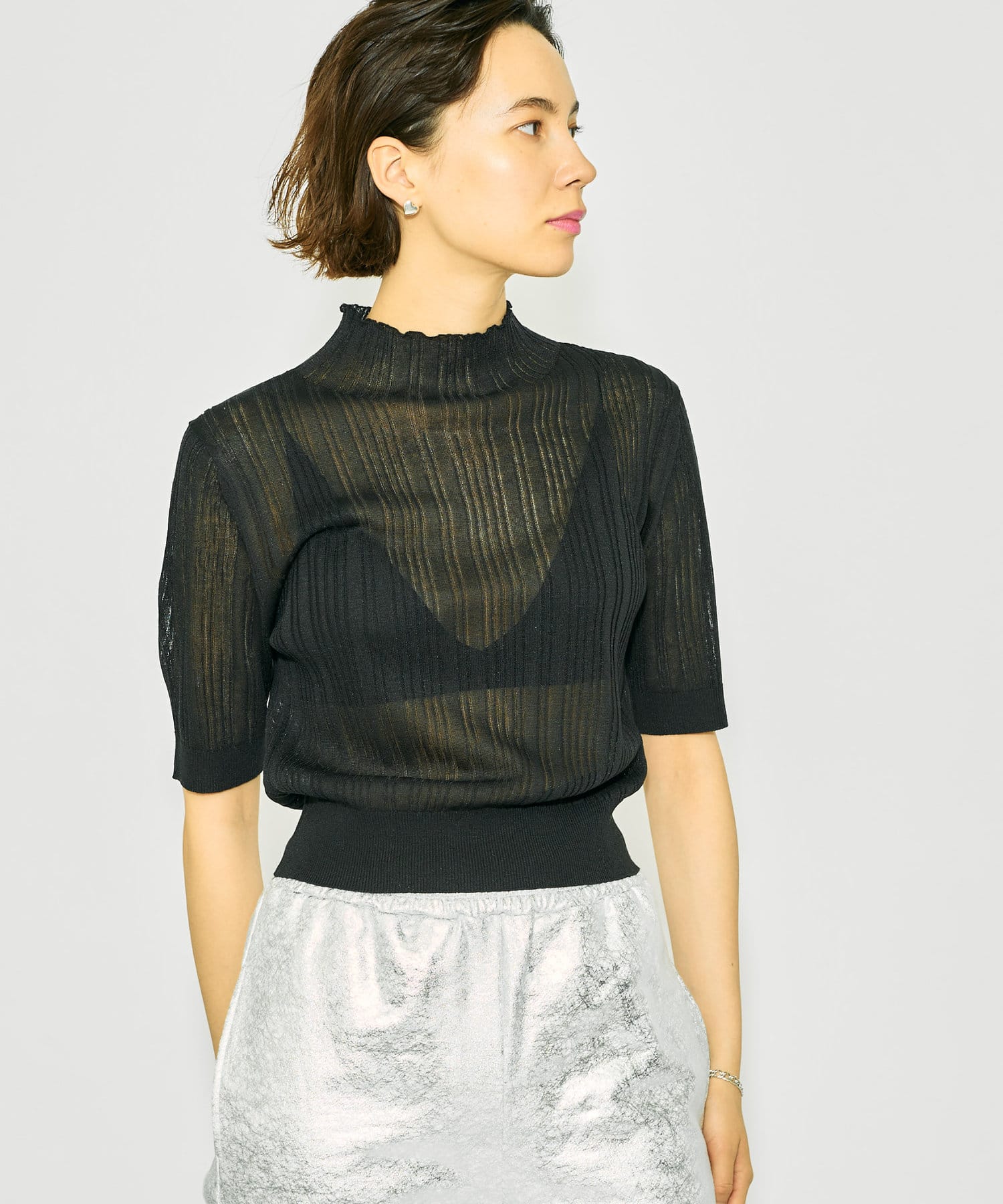 【THE PAUSE】シアーリブハーフスリーブプルオーバー