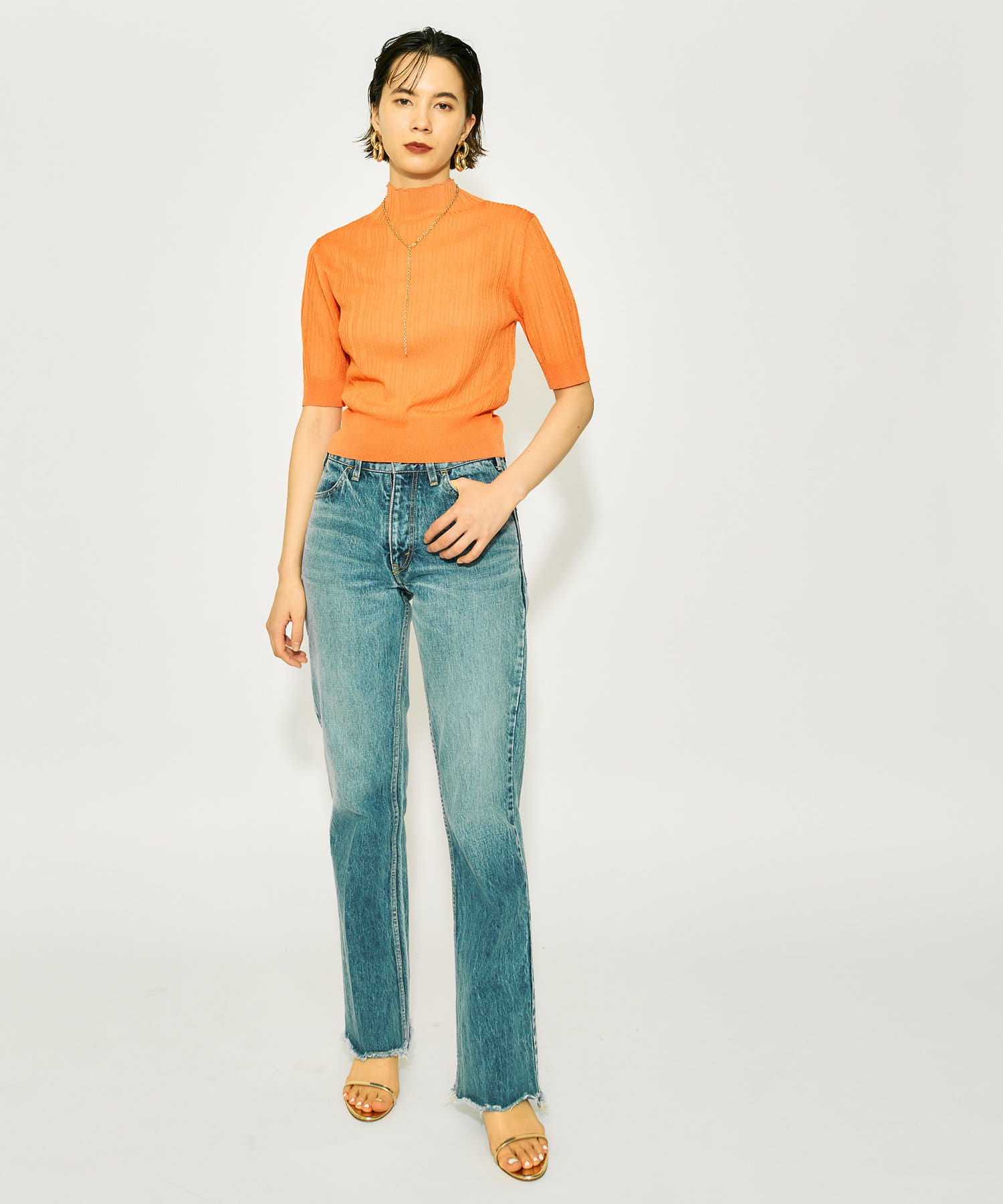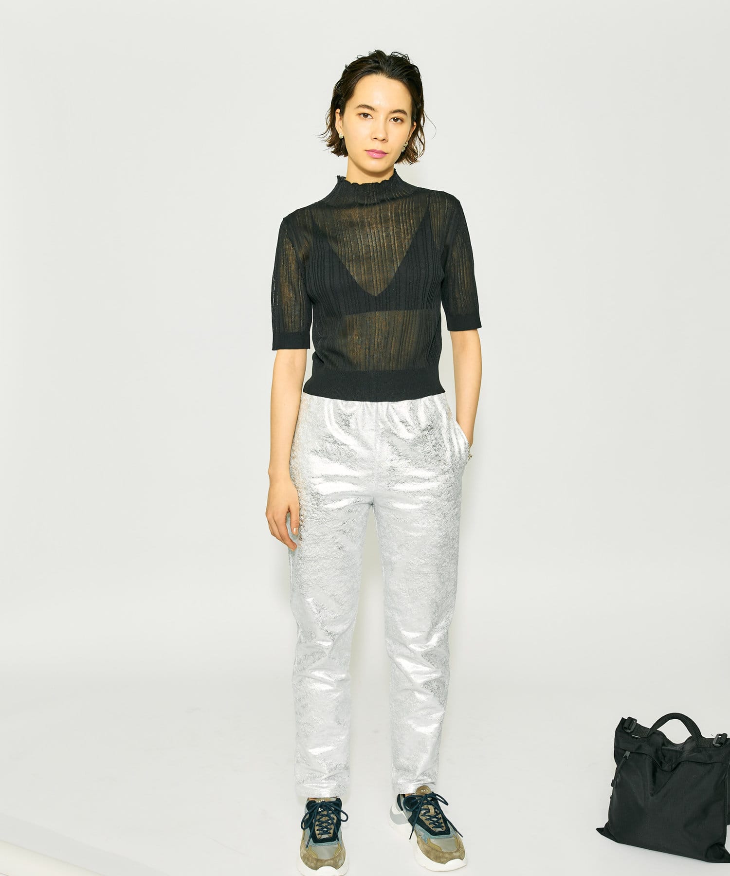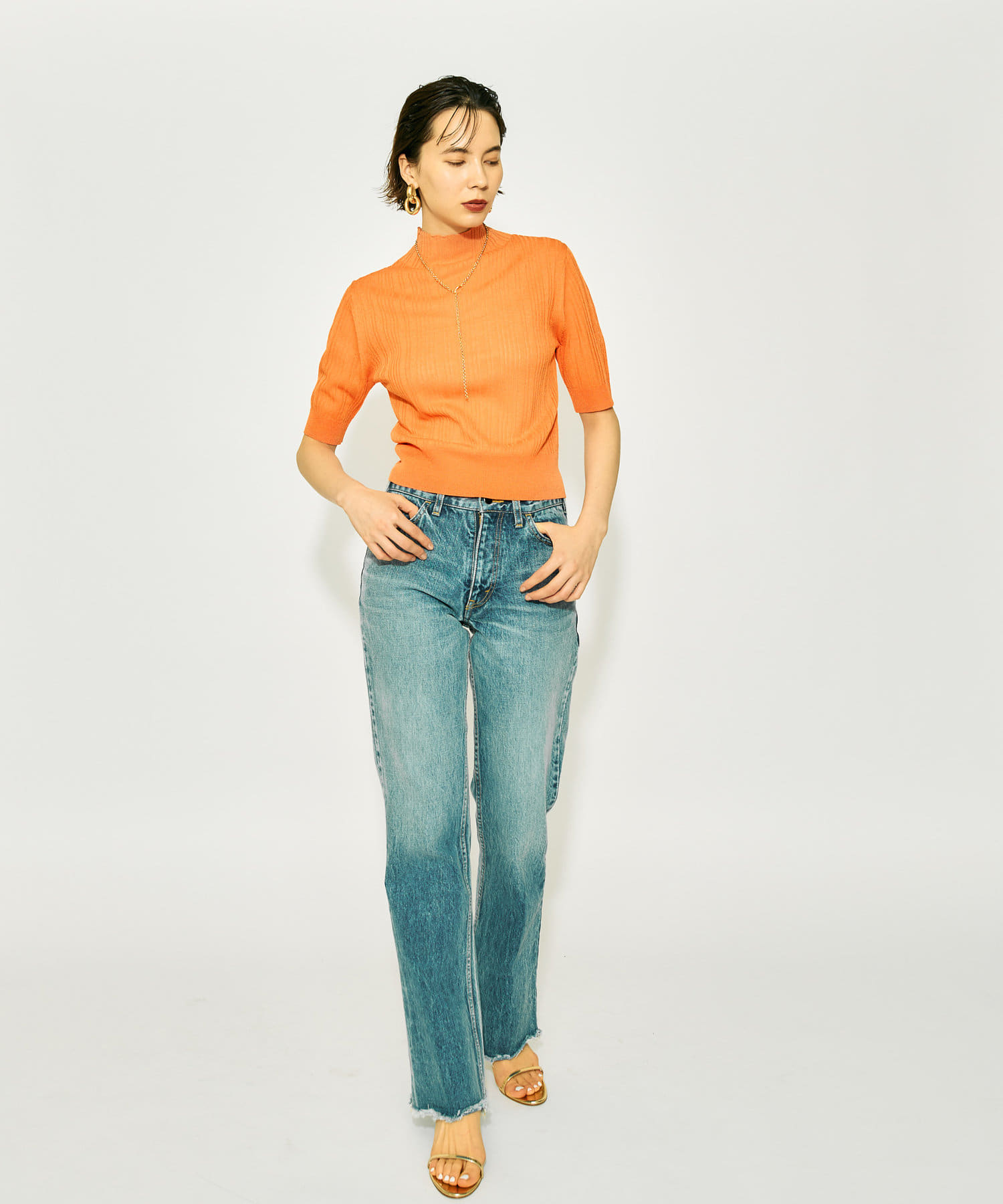 【THE PAUSE】シアーリブハーフスリーブプルオーバー