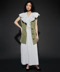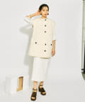 ■前開きでさらりと羽織ったり、配色ボタンのアクセントを活かしてボタンを留めて着ていただくのもおすすめ。