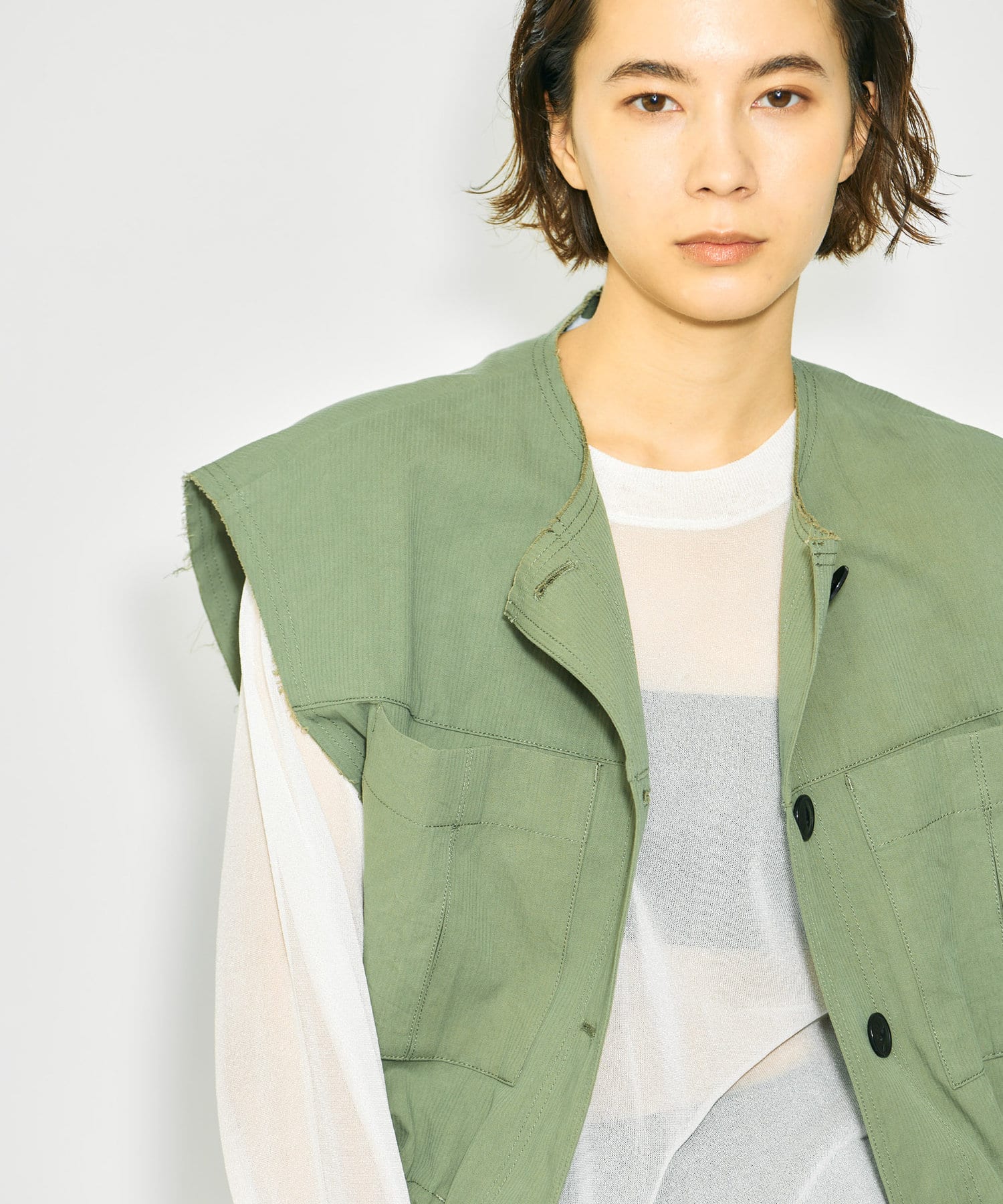 ■ヴィンテージのミリタリーウェアをモチーフにしたベスト。