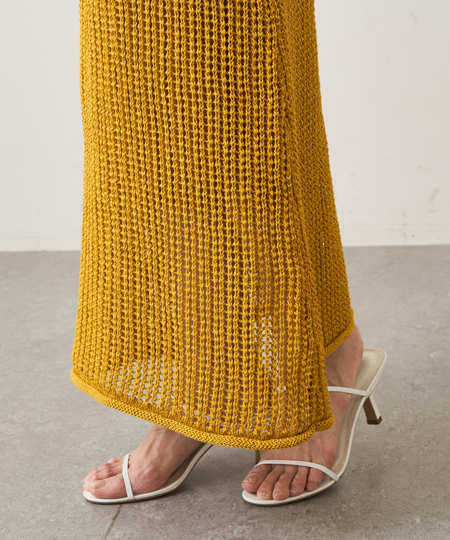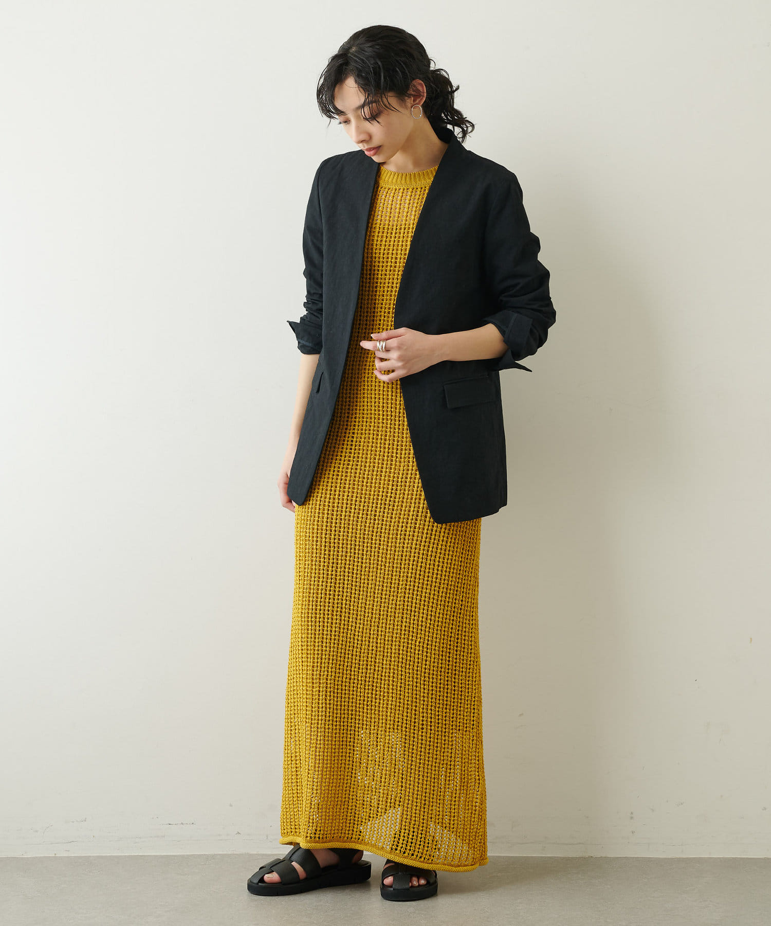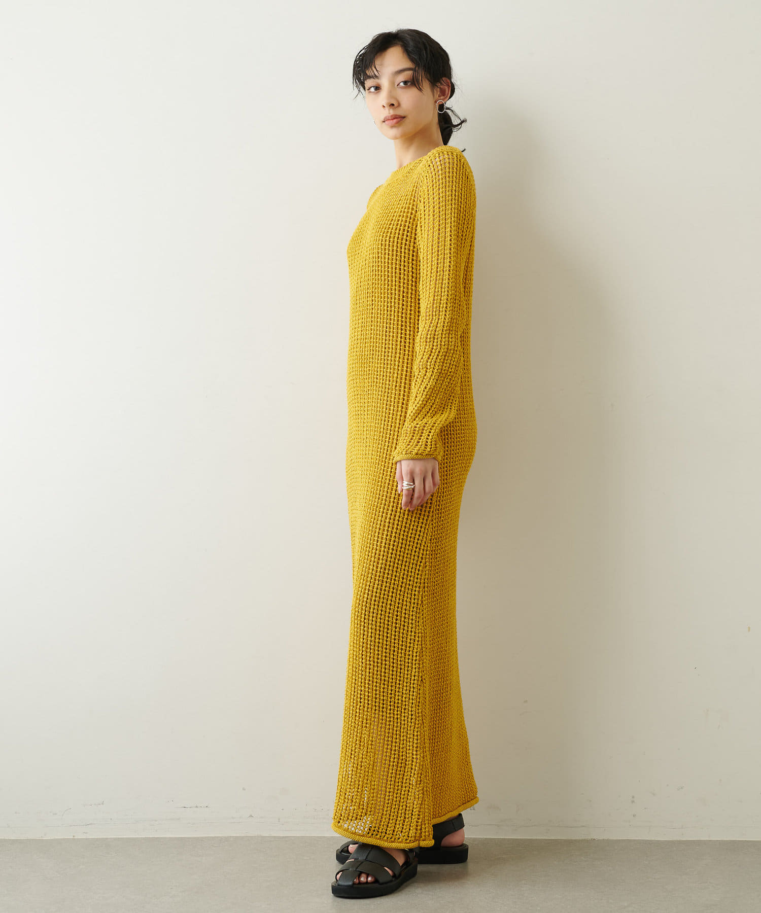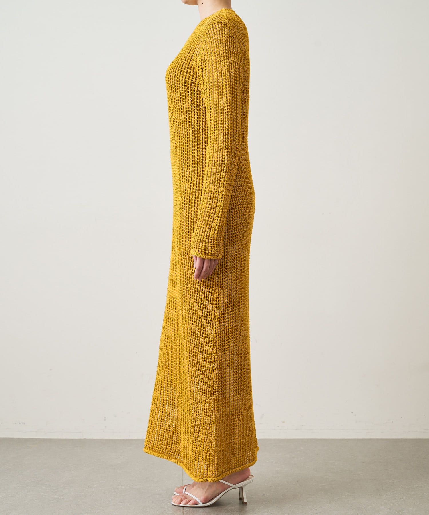 ■麻のような風合いで涼やかに仕上げたロングニットワンピース。