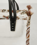 トリミングのペイズリー柄や、ブラックのレザーハンドルが映える爽やかなホワイト。