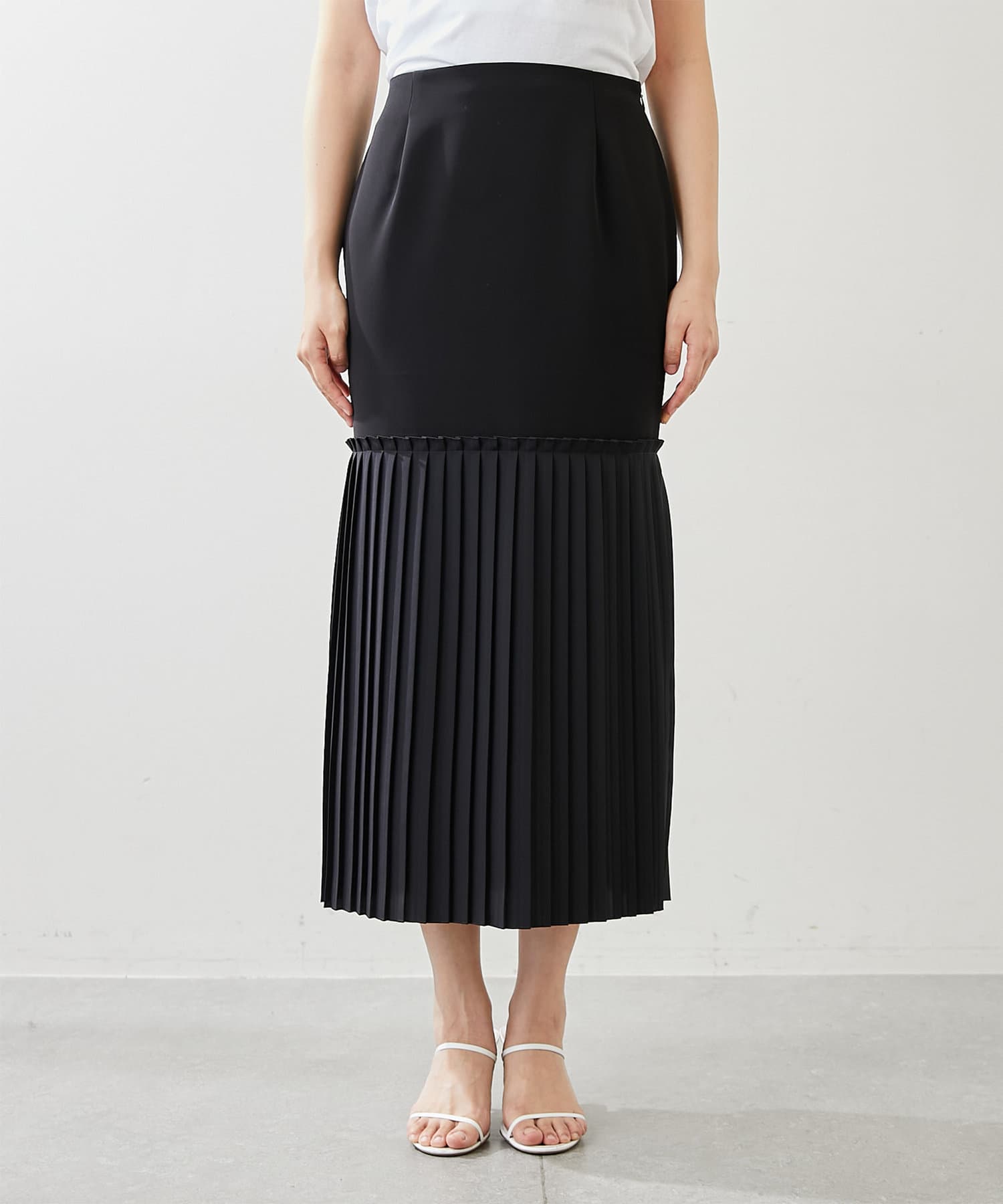 ■タイトスカートの裾をプリーツに切り替えたロングスカート。