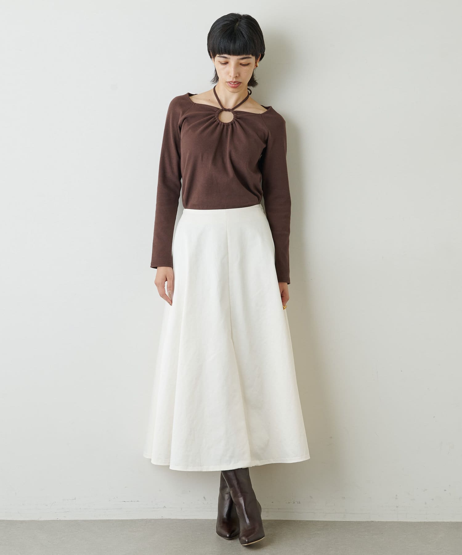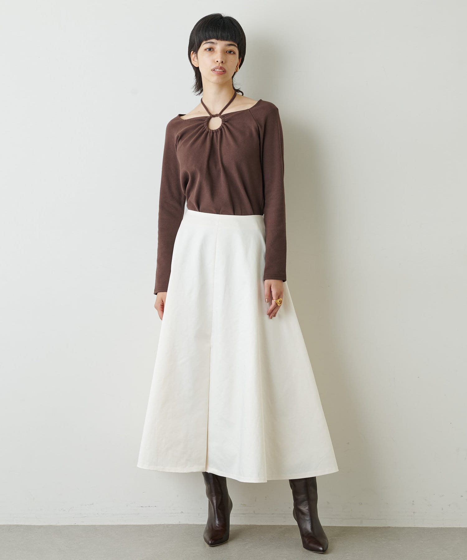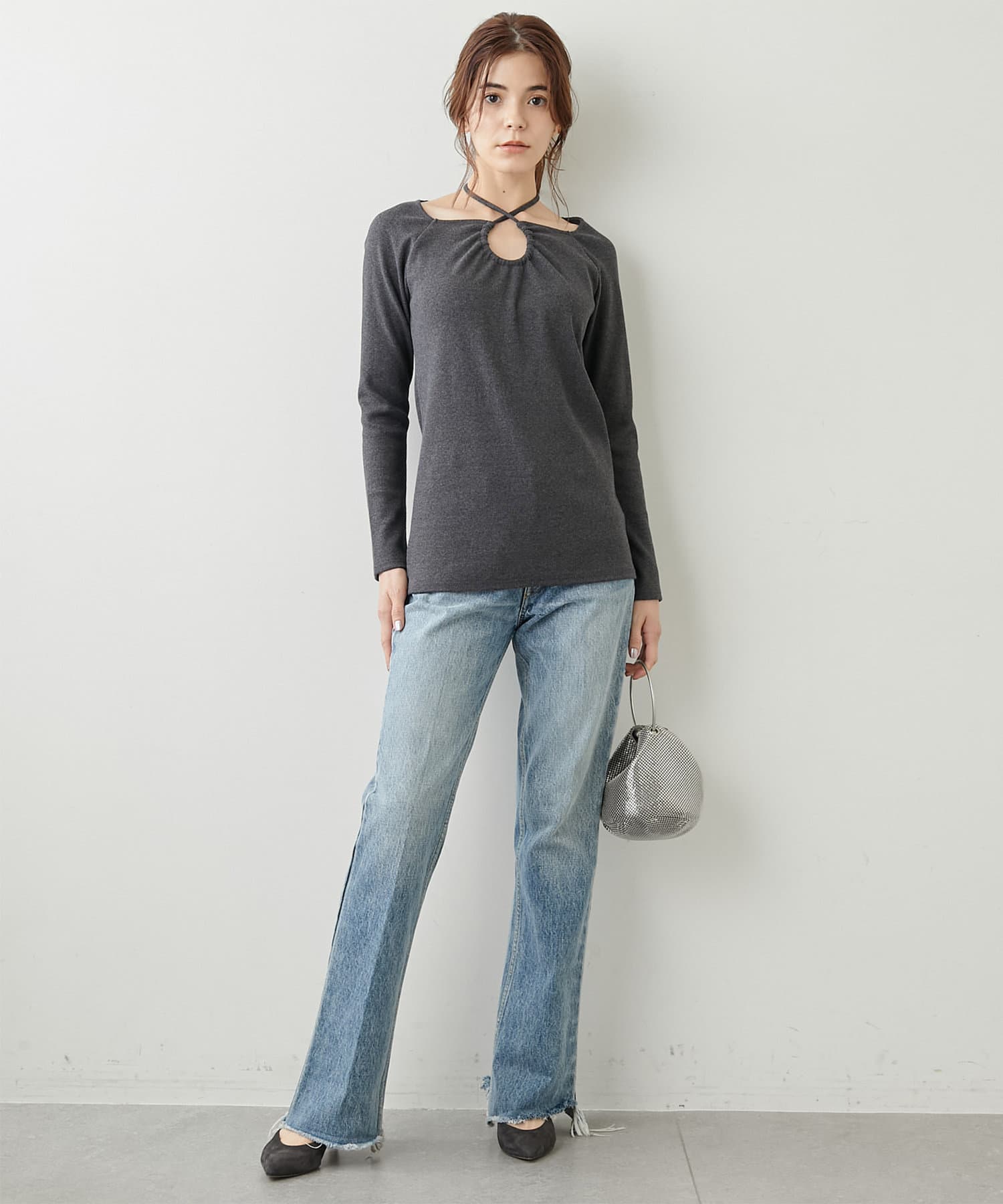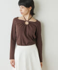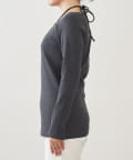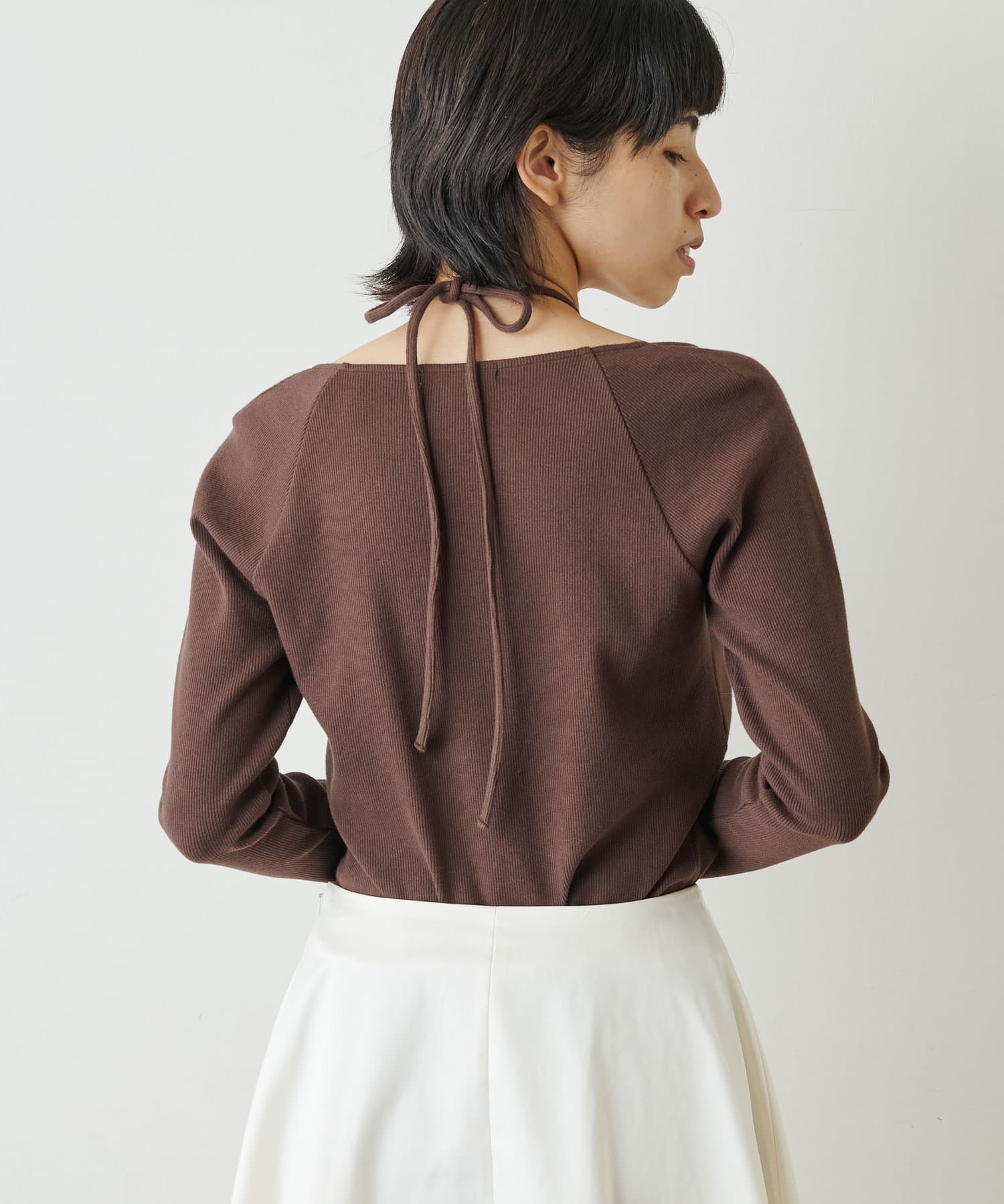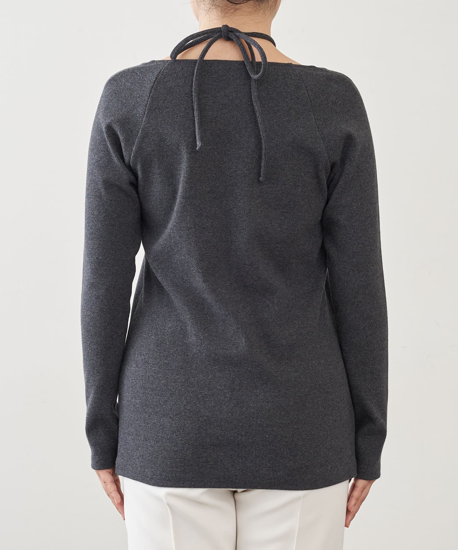 ■ホルターネックを楽しめる紐の付いたデザインカットソー。