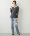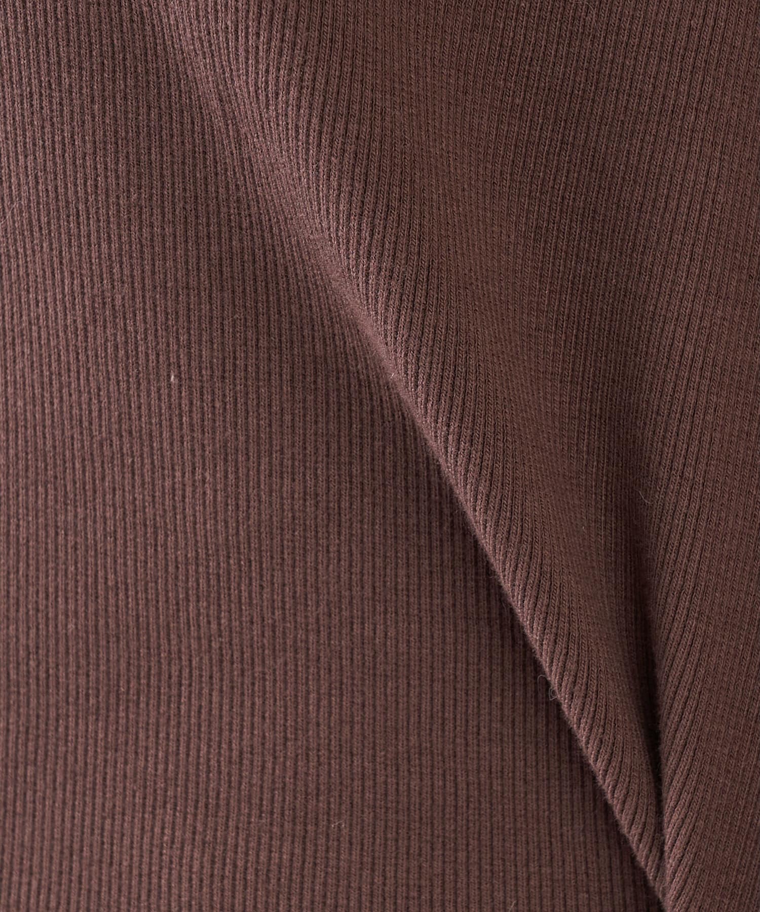 ■着心地の良いカットソー素材がフェミニンな印象になりすぎず、リブの表情がアクセントに。