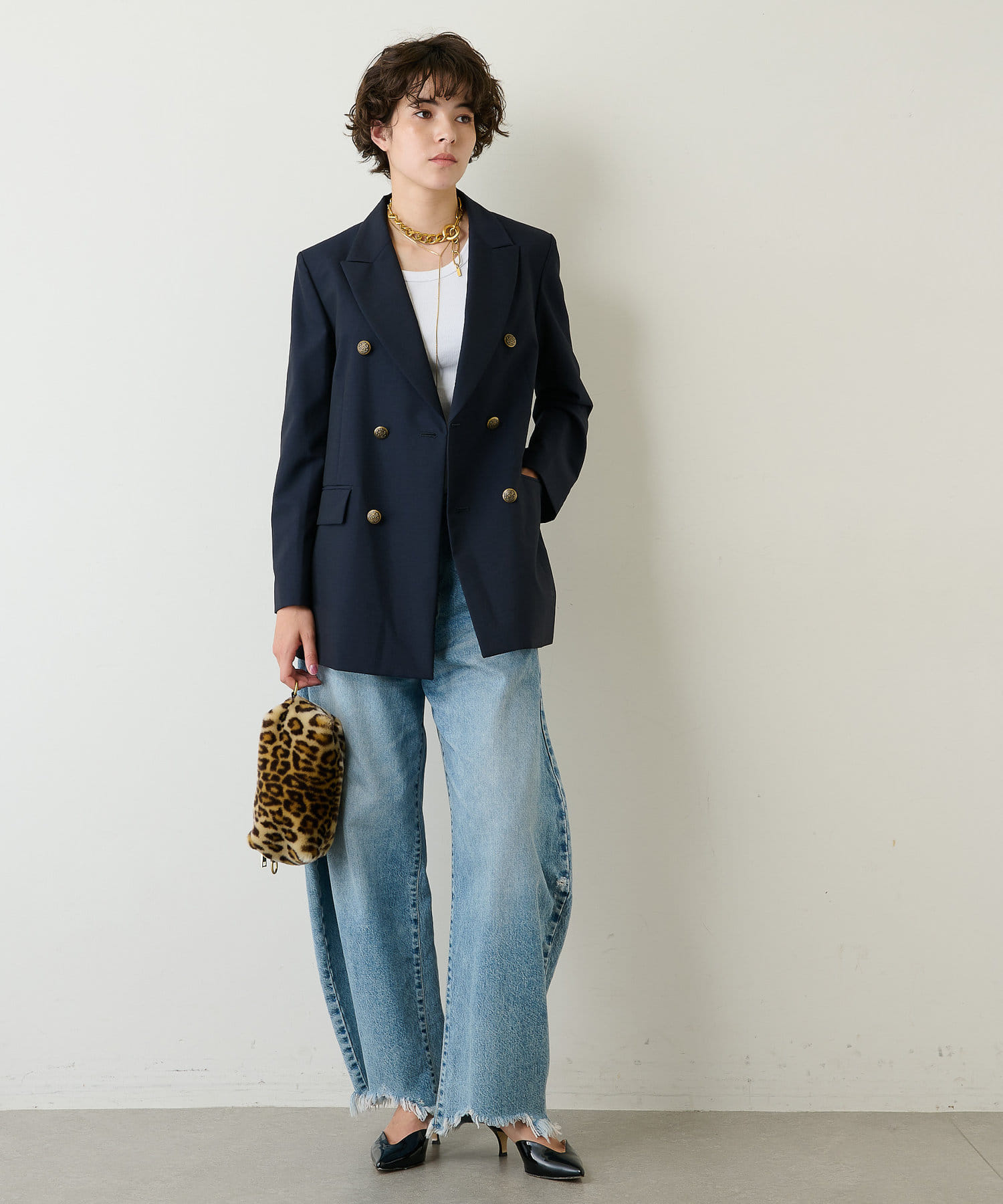 ■薄く入った肩パッドやウエスト位置、長めの着丈と程よいゆとりのあるシルエットがスタイリングの幅を広げてくれる優秀ジャケット。