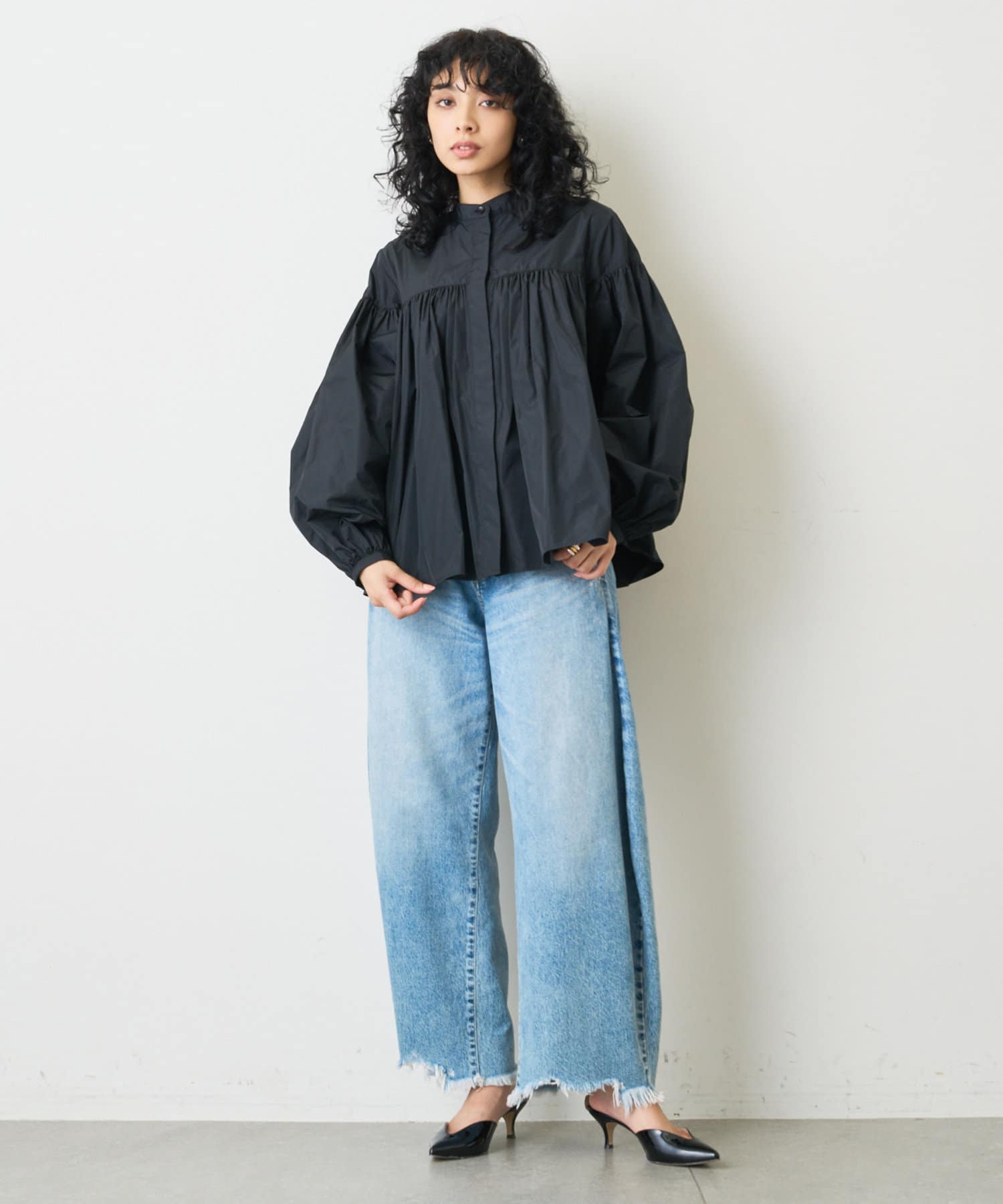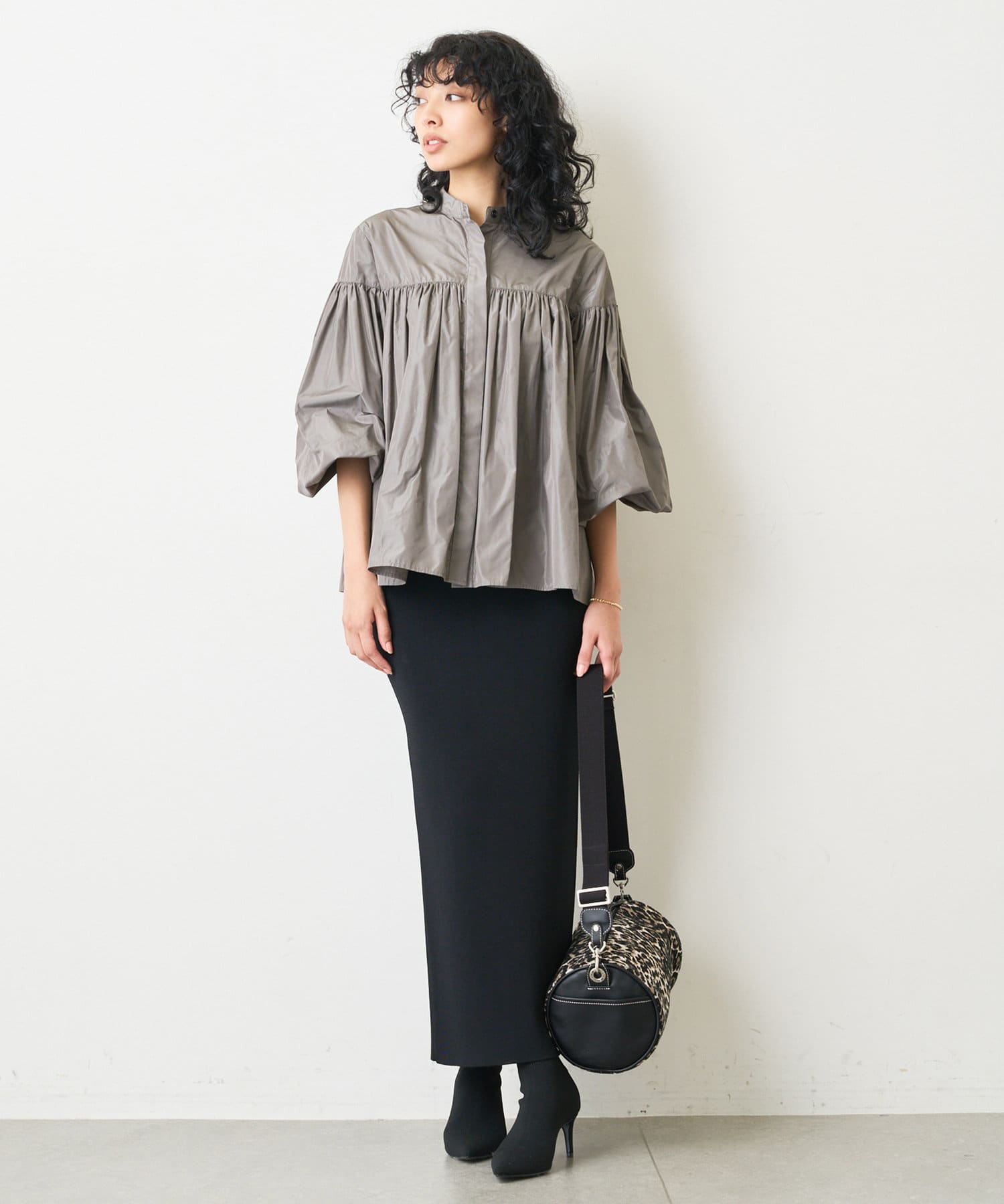 贅沢なギャザーシルエットが目を惹くボリュームブラウス