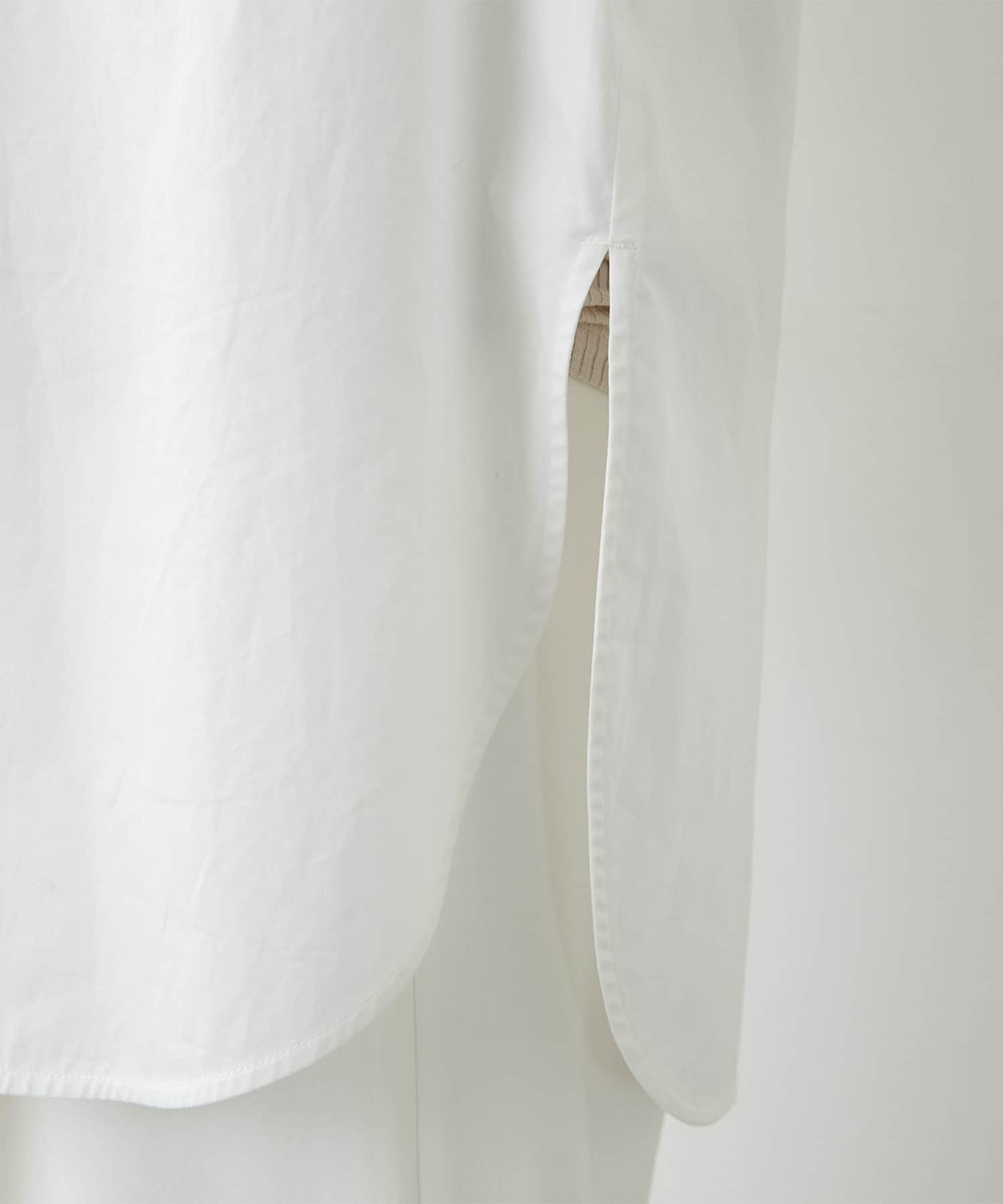 ■ヒップの隠れる着丈やラウンドヘムディテールで、タックアウトして一枚でも着ても様になるデザイン。