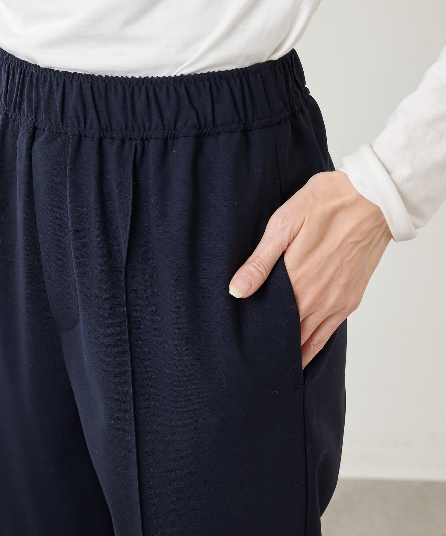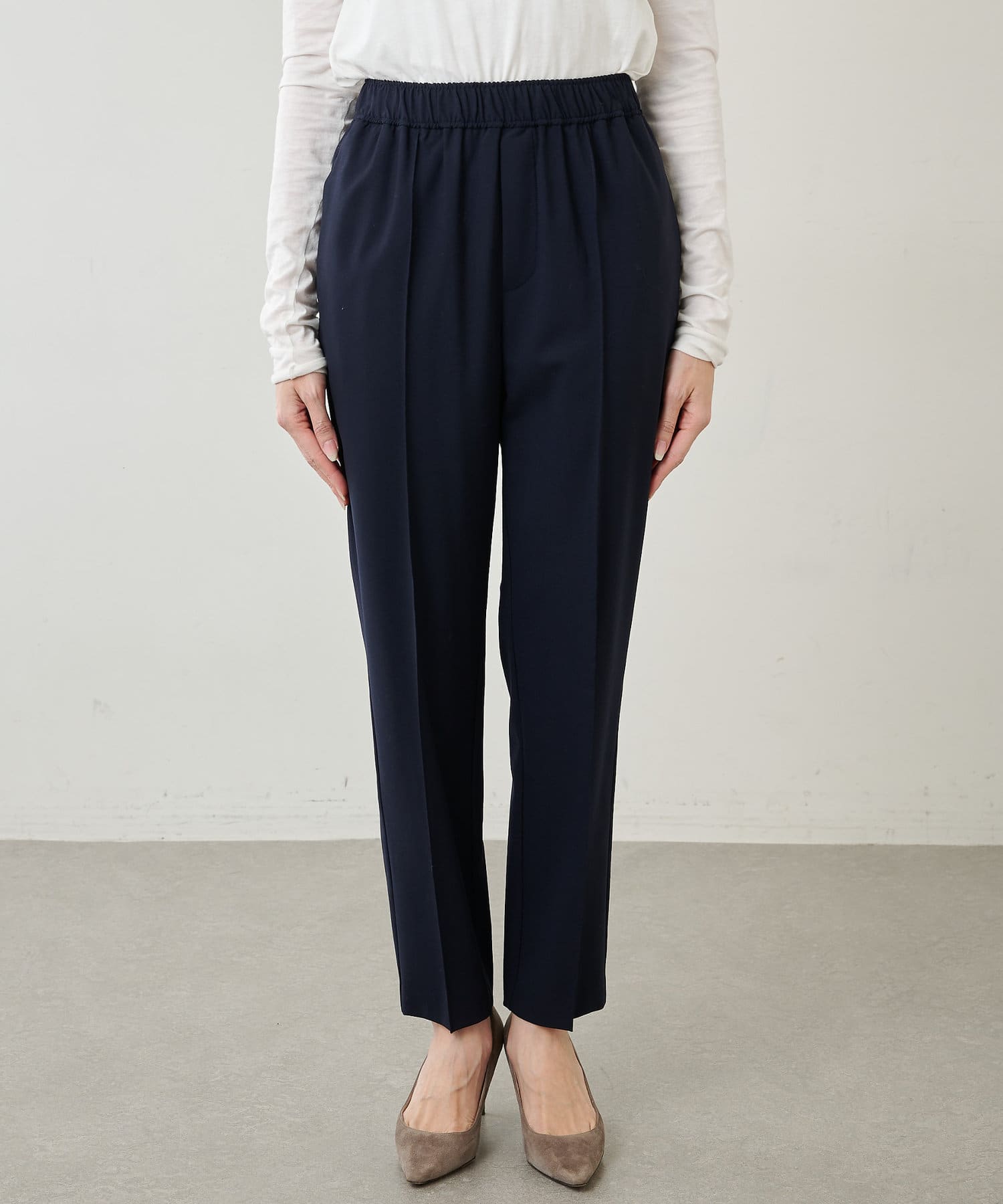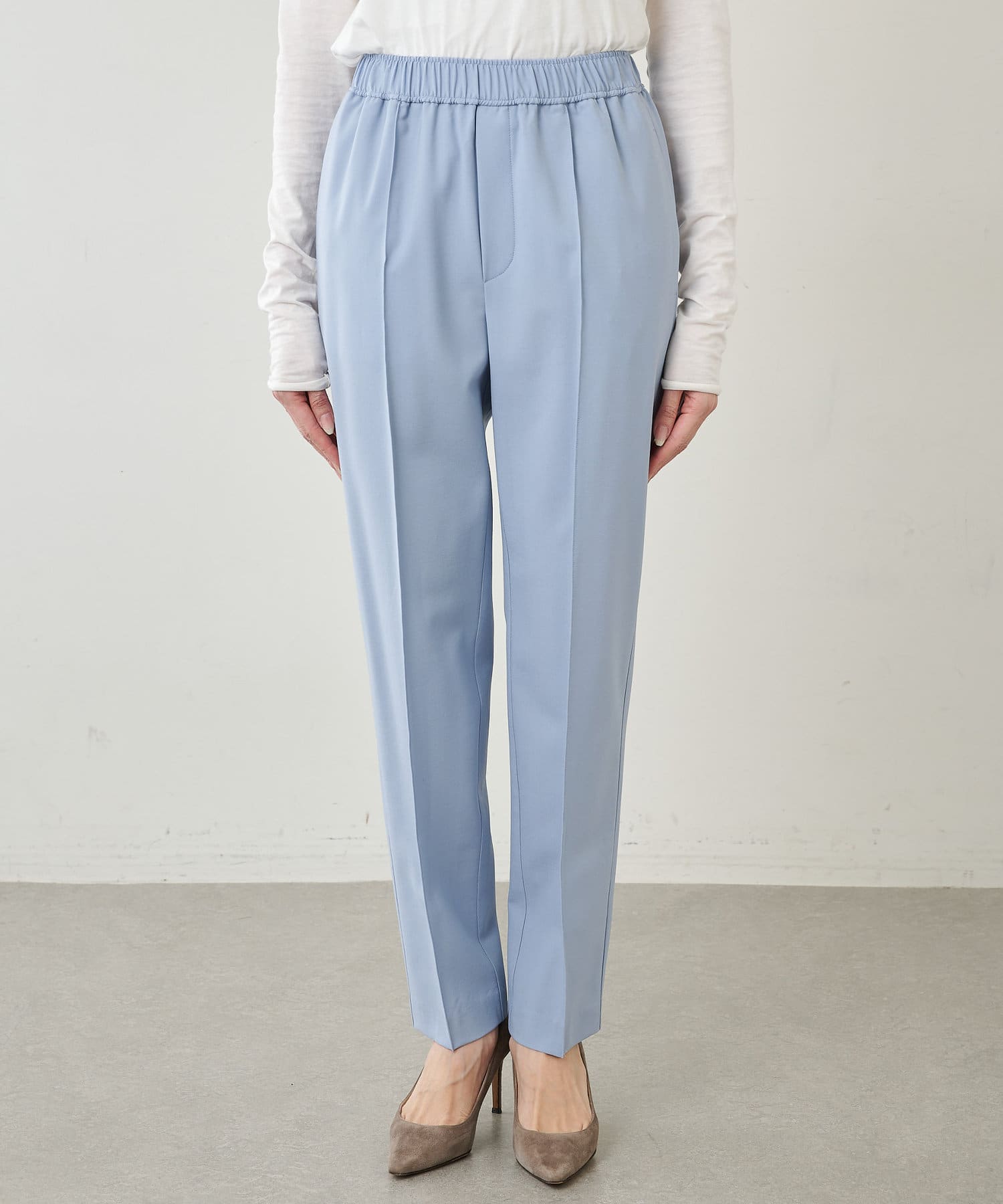 ■ウエストゴム仕様のイージーな履き心地ながら、センタープレスがきれいめな印象をキープ。